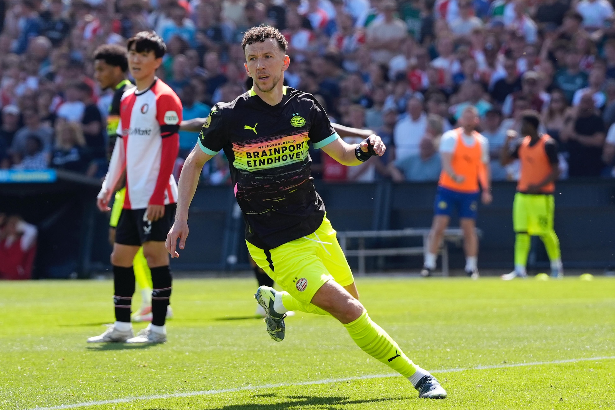 PSV doet vlak na rust iets terug via Perišić! De Kroaat scoort in de vierde opeenvolgende wedstrijd die hij speelt en brengt PSV terug in de wedstrijd: 2-1.