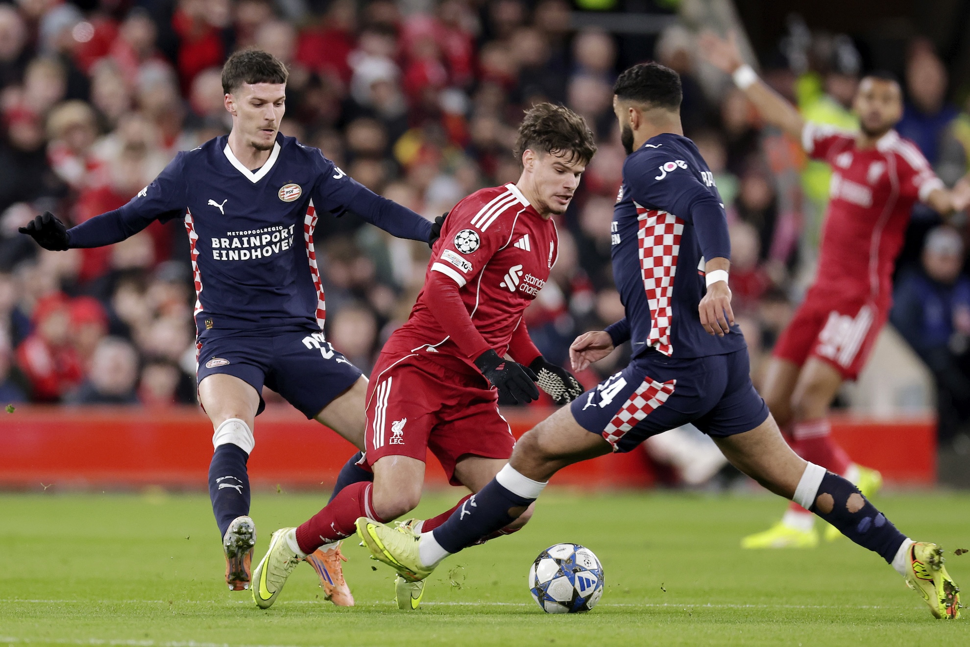 PSV moet nog maar een paar minuten standhouden, maar toont in deze tweede helft een totaal ander gezicht. In de omschakeling gevaarlijk en achterin georganiseerd. Dát is vasthouden aan je eigen spelprincipes, zelfs op Anfield.