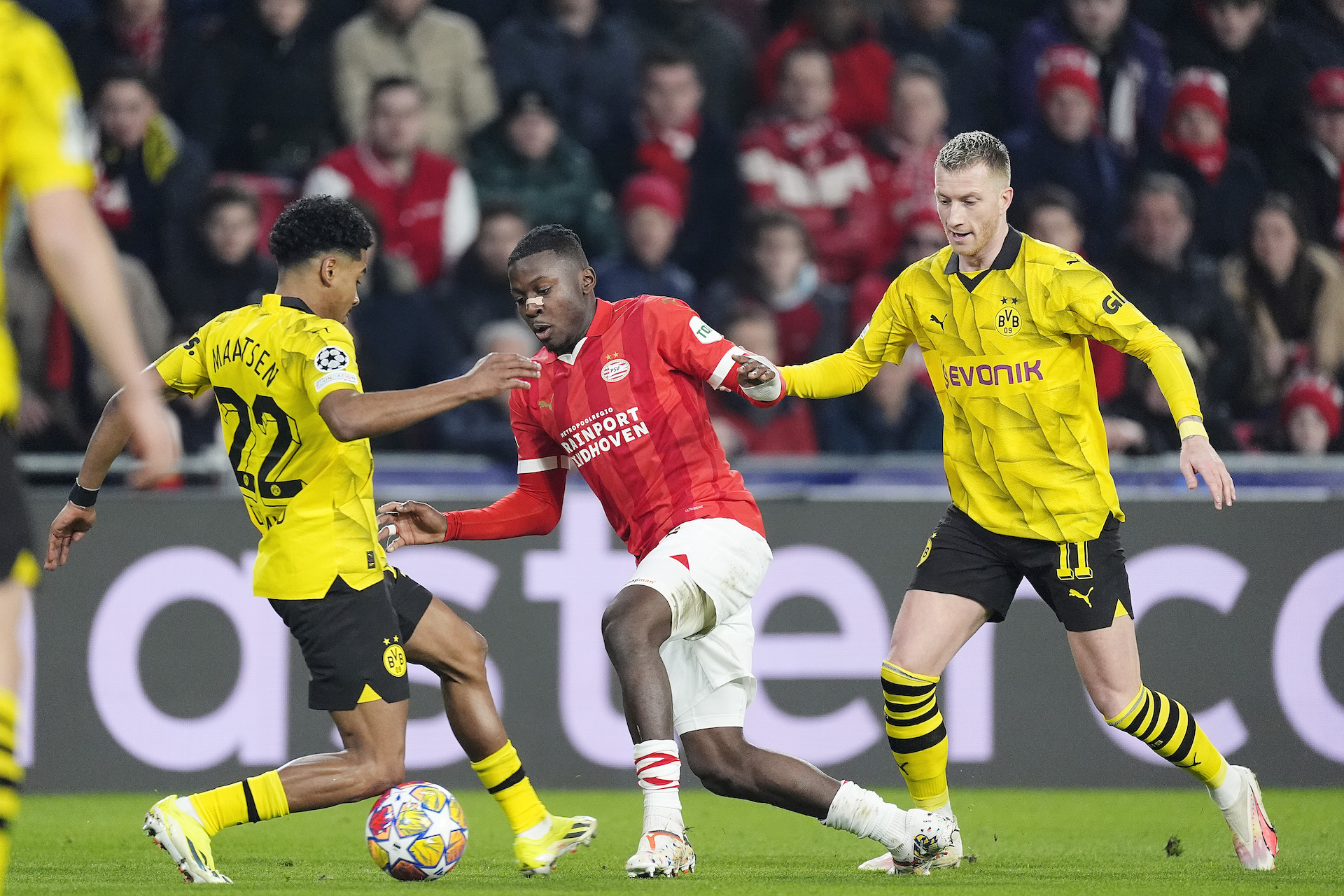 Het tempo lag bijna de hele wedstrijd op Champions League-niveau, met kansen over en weer. Inmiddels trekt Borussia Dortmund zich vrijwel volledig terug tot in de eigen zestien. PSV heeft de bal, maar open kansen creëren is onder die omstandigheden lastig.