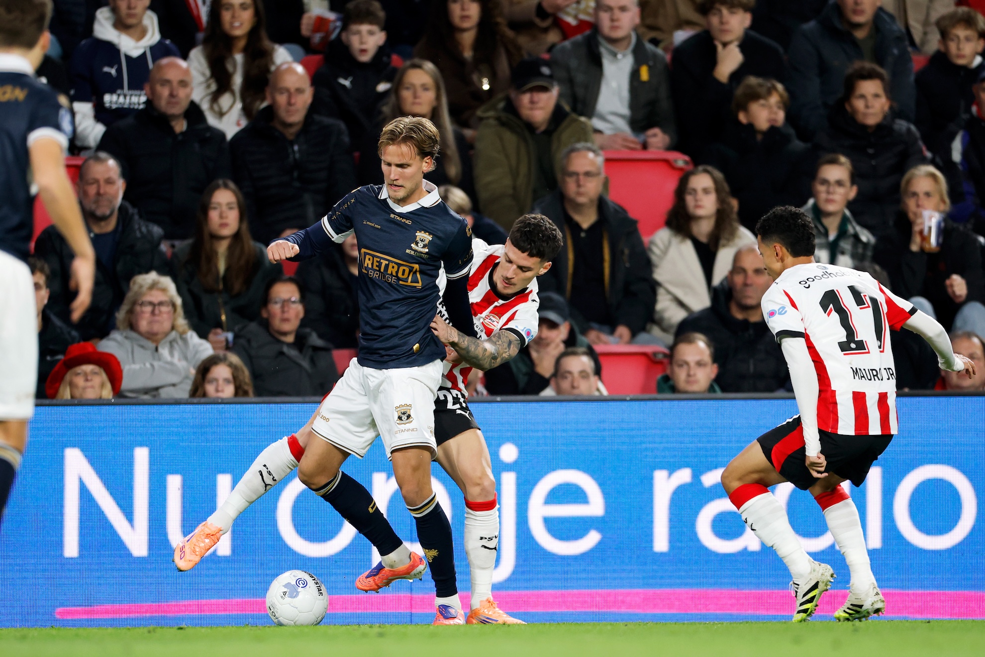 Er is afgetrapt in Eindhoven, na een eervol afscheid van De Jong. Vlak voor de aftrap kreeg hij op de middenstip een vergulde aanvoerdersband overhandigd. Nu gaat alle focus op het duel met de Deventenaren.