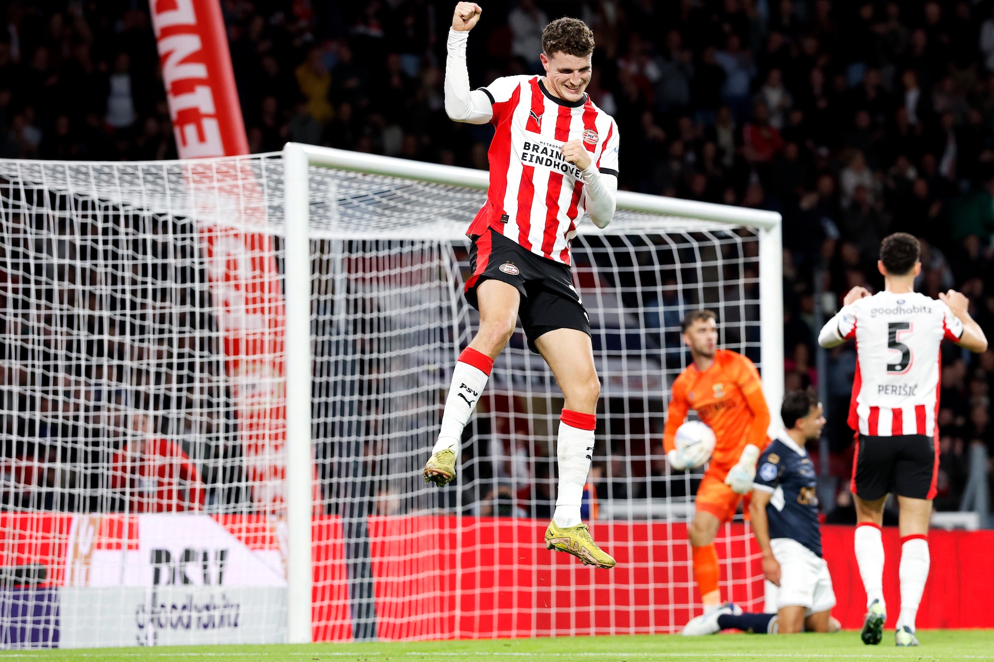 Guus Til zet PSV op voorsprong na goed voorbereidend werk van Sergiño Dest. De rechtsback gaf een perfecte voorzet, waarna Til beheerst afrondde en zo zijn derde doelpunt van het seizoen maakte.