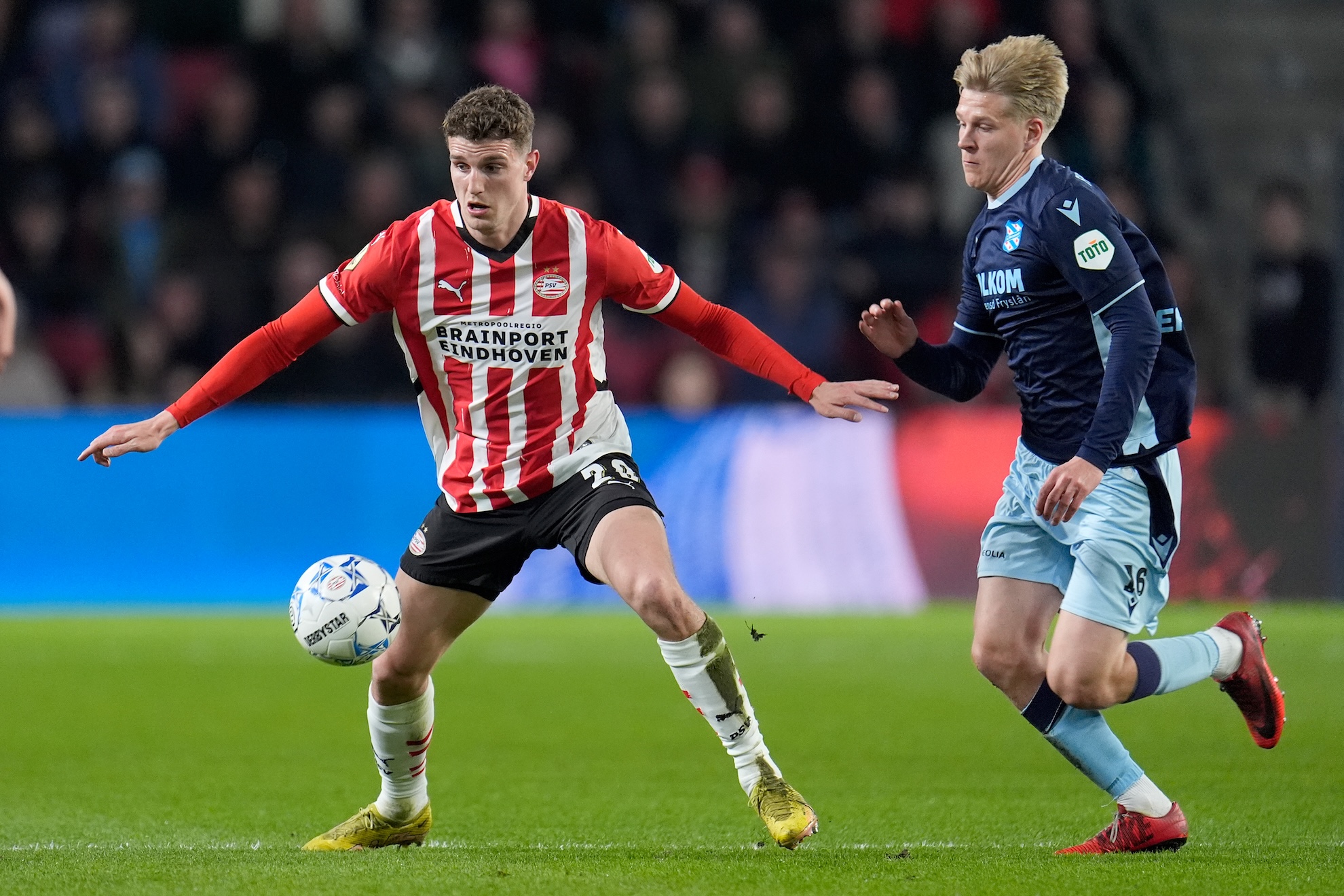 PSV domineert en blijft dreigend op de zijde van de Friezen, maar weet dat tot dusver niet in een doelpunt om te zetten.