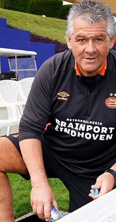 De begeleidende staf van voetbalclubs is de laatste jaren in omvang toegenomen. PSV vormt daarin geen uitzondering. Waarom eigenlijk? En wie zijn de mensen die de spelers helpen om dagelijks het maximale uit zichzelf en het team te halen? In ‘Achter het team’ Adri van Dooren (56), materiaalverzorger bij PSV en al jarenlang een gewaardeerde kracht op De Herdgang.
