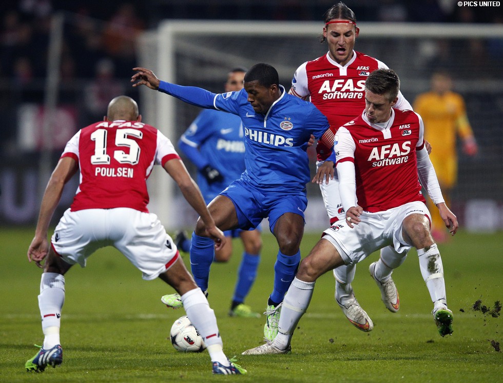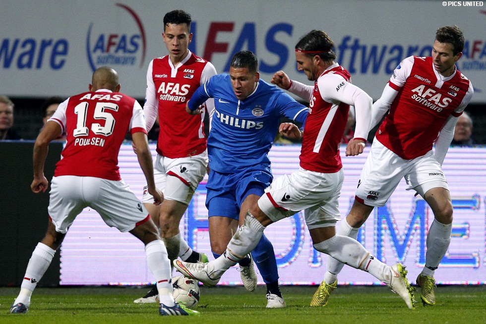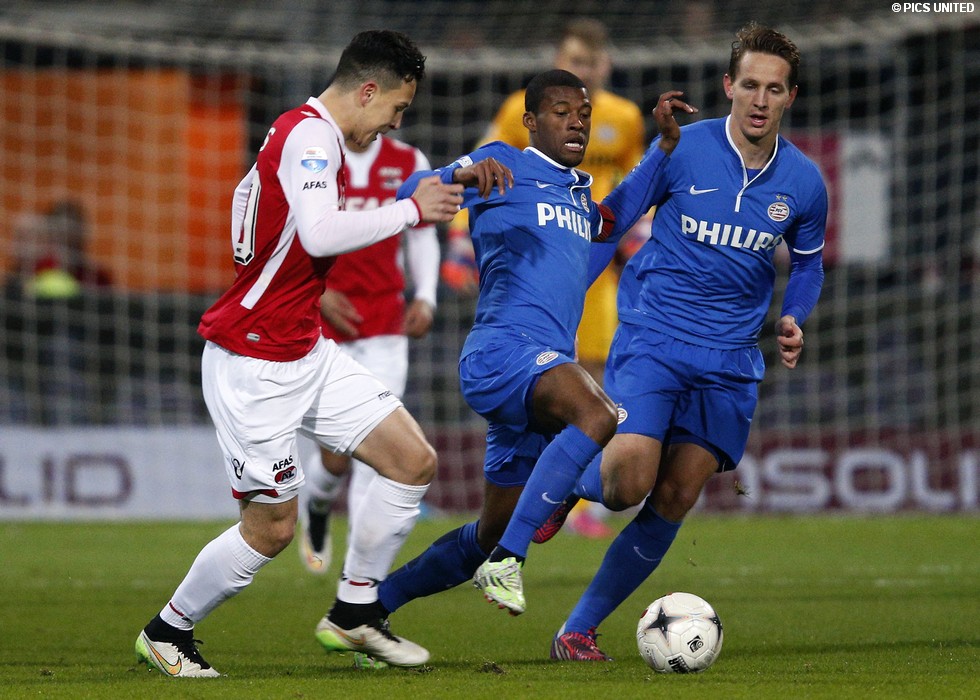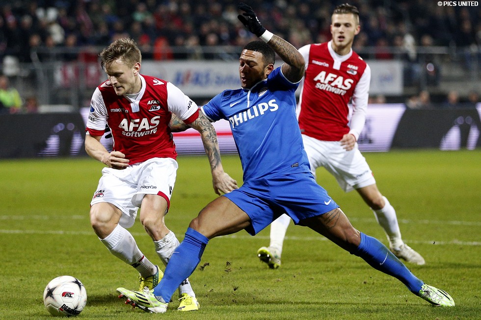 PSV boekte vrijdagavond de tiende zege op rij. Uit bij AZ werd met 2-4 gewonnen, Luuk de Jong scoorde drie keer. Een fotoverslag.