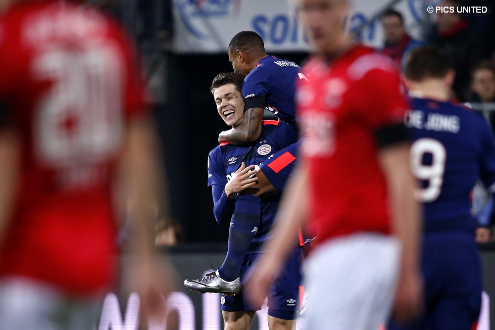 PSV deed zaterdagavond wat het moest doen in Alkmaar, winnen van AZ en hield daarmee de druk op Ajax in de race om de landstitel. Een fotoverslag van het duel.