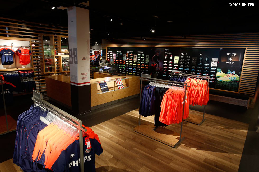 Naast de nieuwste collectie Nike schoenen vind je vanaf dit seizoen ook voetbalschoenen en accessoires van Umbro in de officiƫle PSV-winkel. De keeperslijn van Stanno en een grote verzameling Derbystar ballen zijn eveneens een aanvulling op het ruime assortiment. Daarnaast is er een uitgebreide collectie buitenlandse clubkleding verkrijgbaar in de PSV FANstore, in zowel junior- als seniormaten en zowel wedstrijd- als trainingskleding. Het is bovendien mogelijk om je shirt van clubs als FC Barcelona, AS Roma of Paris Saint-Germain te voorzien van de officiƫle bedrukking!