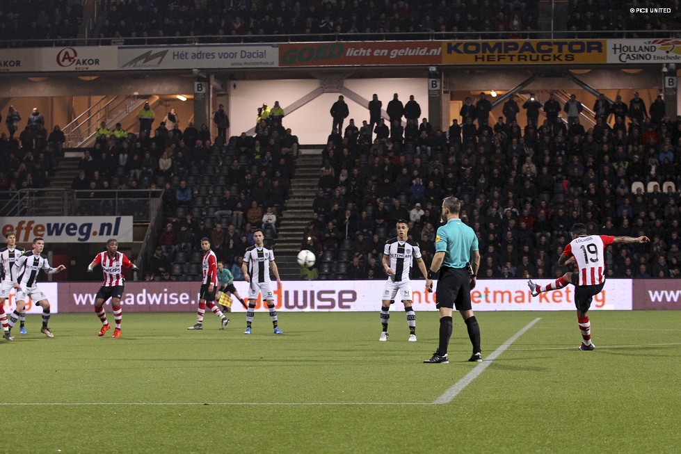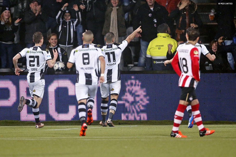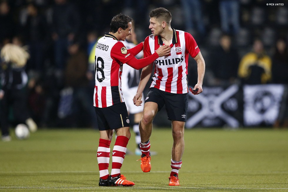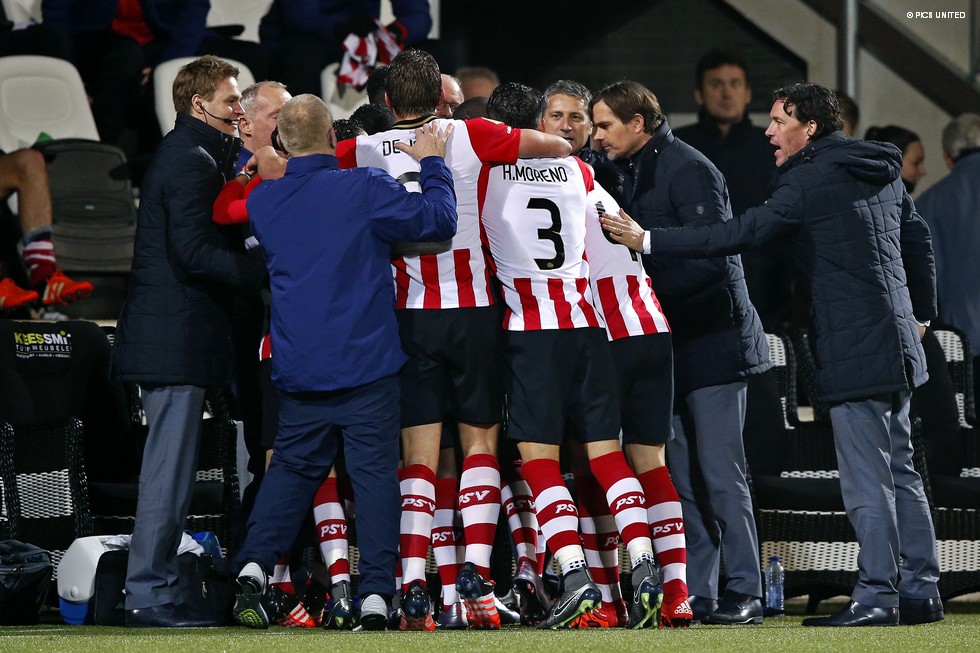 PSV schaarde zich woensdagavond bij de laatste acht van het KNVB bekertoernooi. In Almelo werd Heracles met tien man verslagen. Een fotoverslag.