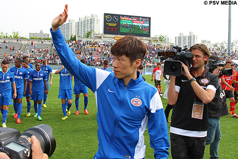 Park vloog niet met de ploeg mee terug naar Seoul, maar keerde op eigen gelegenheid terug. Park blijft in Zuid-Korea, waar hij over ruim een maand gaat trouwen. Met een lach op zijn gezicht nam hij afscheid van de fans, die hem de hele middag uitzinnig hadden toegejuicht. Na het laatste fluitsignaal ging Park op de schouders, werd hij gejonast en gaf hij zijn eerste reactie aan PSV TV. De club kreeg ook zijn laatste shirt, dat meegaat naar Nederland om in het PSV Museum te kunnen hangen. PSV speelt in Changwon voor het eerst in het nieuwe blauwe tenue, wat het extra bijzonder maakt. Hieronder een foto-impressie van het afscheid van een volksheld in Zuid-Korea en de favoriet van veel PSV-supporters, die met zijn voorbeeldige mentaliteit grote indruk heeft achtergelaten.