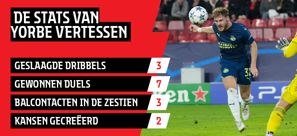 Yorbe kwam viel vlak voor rust in voor Hirving Lozano. Toen Sevilla FC er met de zege vandoor leek te gaan, stond de aanvaller op. Niet alleen was hij met drie geslaagde dribbels succesvol in zijn passeeracties, ook won hij zeven aanvallende duels van de negen die hij uitvocht tegen de Spanjaarden: het hoogste aantal van alle spelers van PSV.