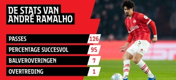 Rust inbouwen door de bal terug te spelen, een belangrijke onderschepping of het begin van een PSV-aanval. Dat was het verhaal van André Ramalho gedurende de wedstrijd tegen Almere City FC. De Braziliaan was niet alleen defensief van belang tegen de promovendus, maar verstuurde ook een recordaantal succesvolle passes.