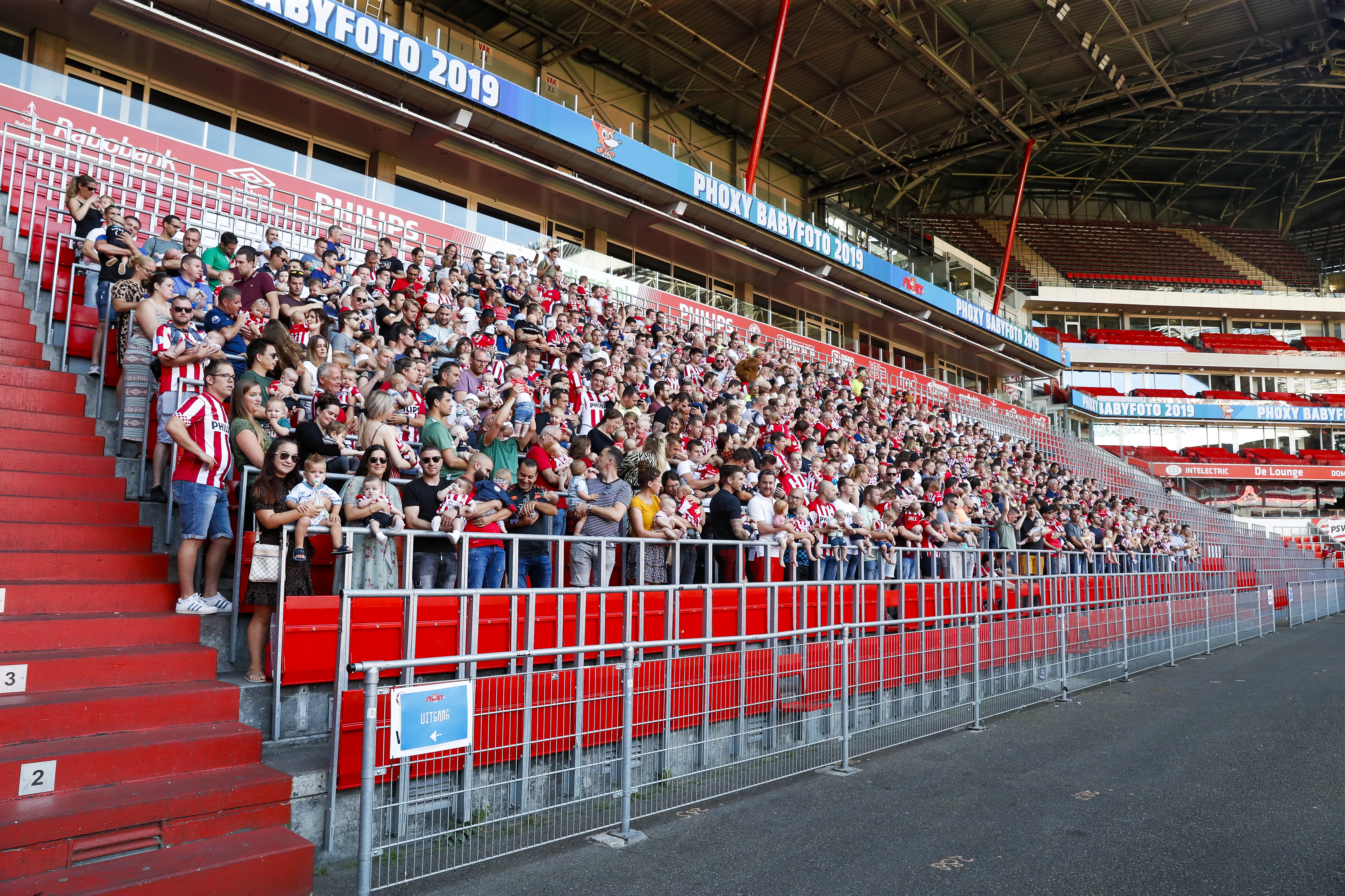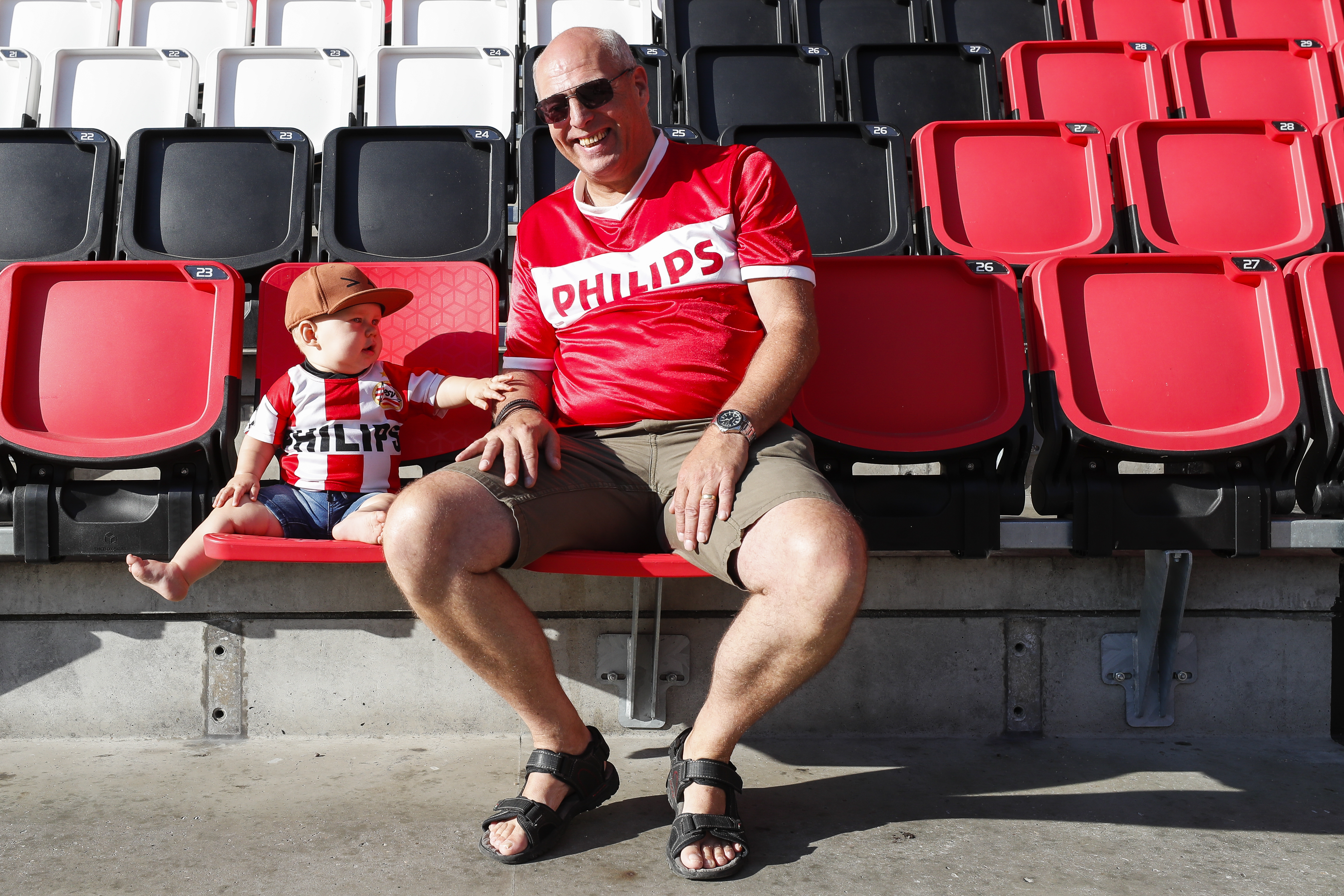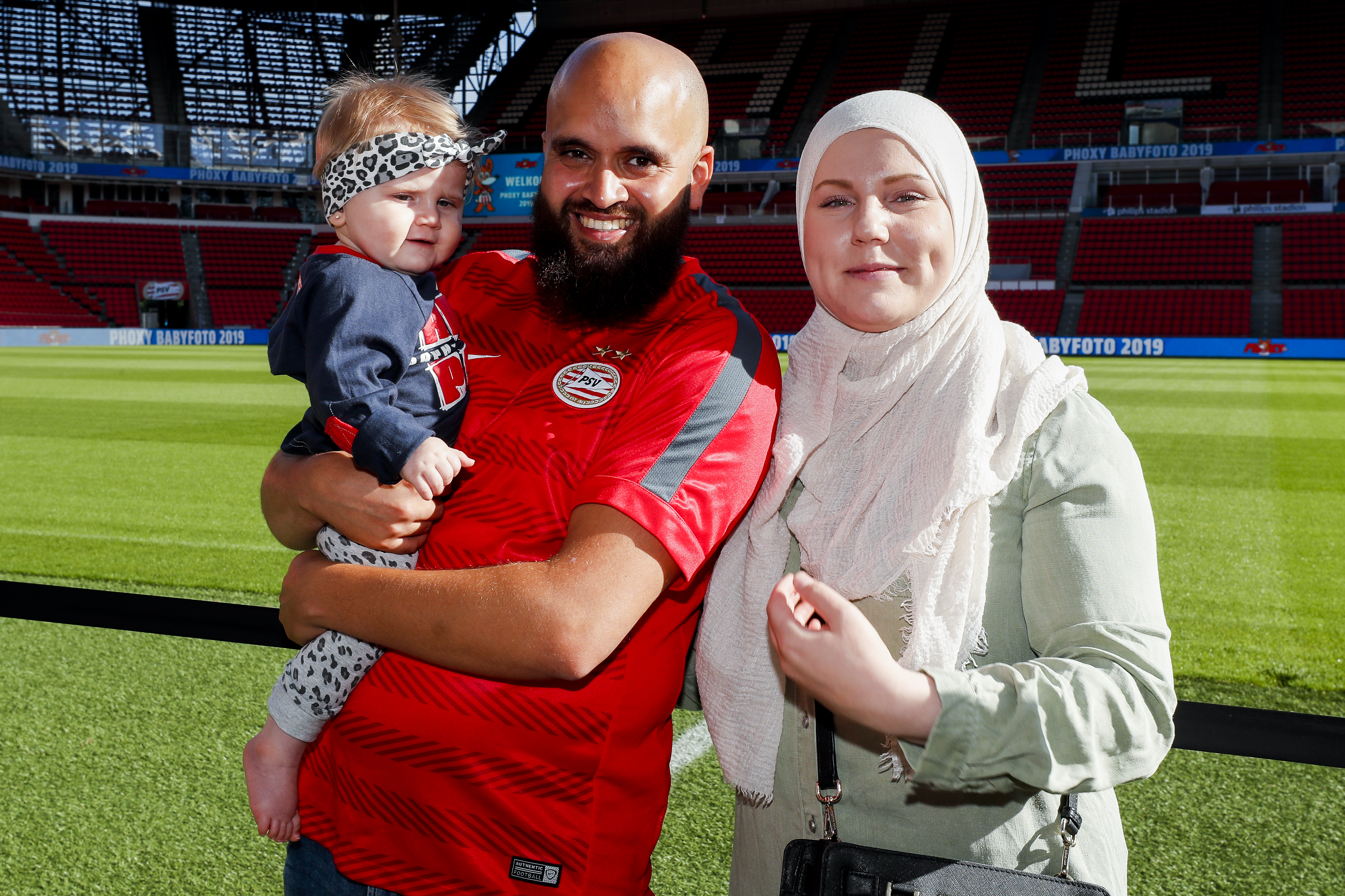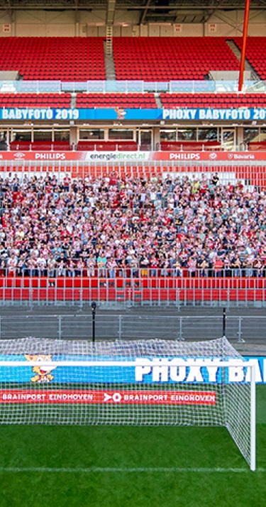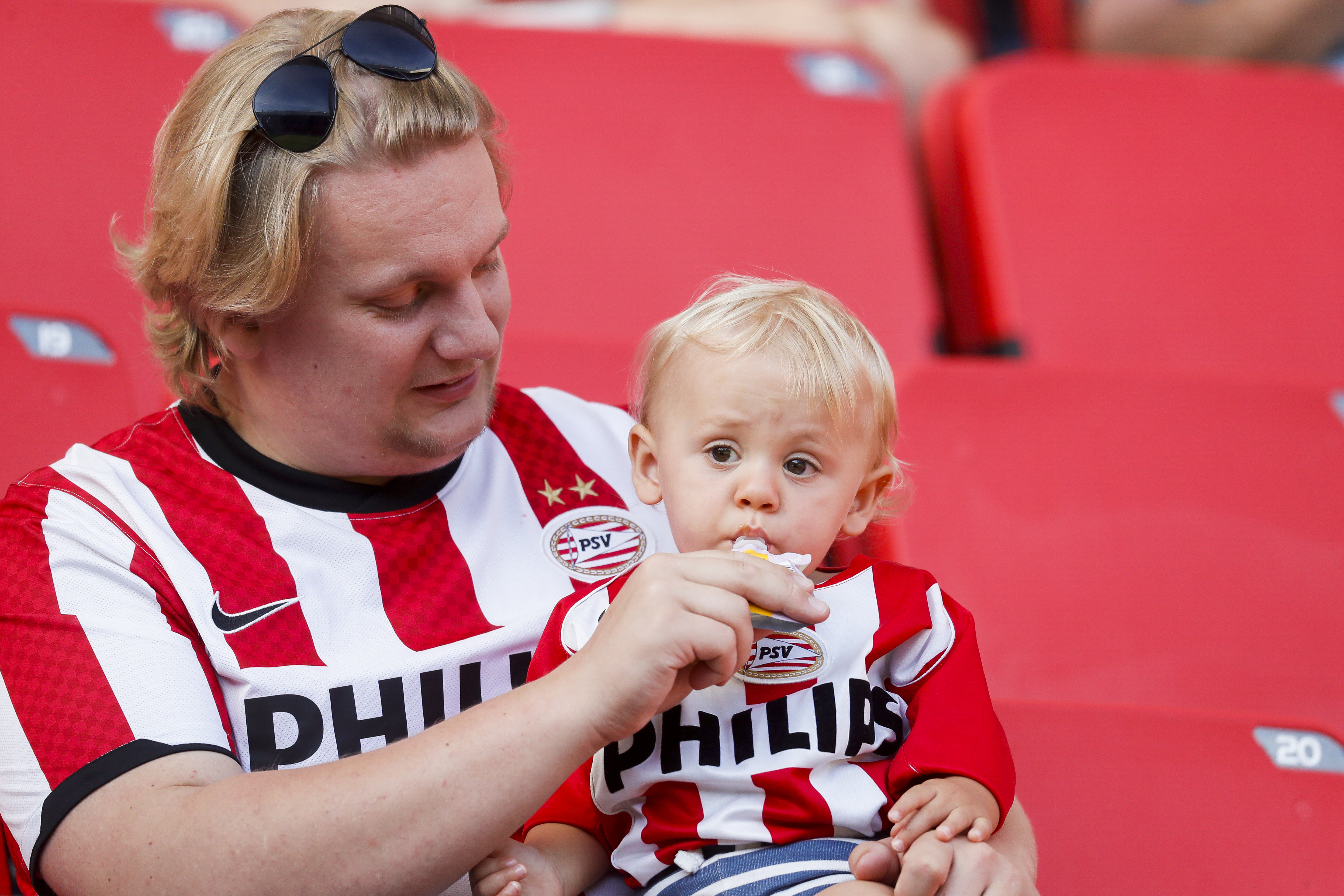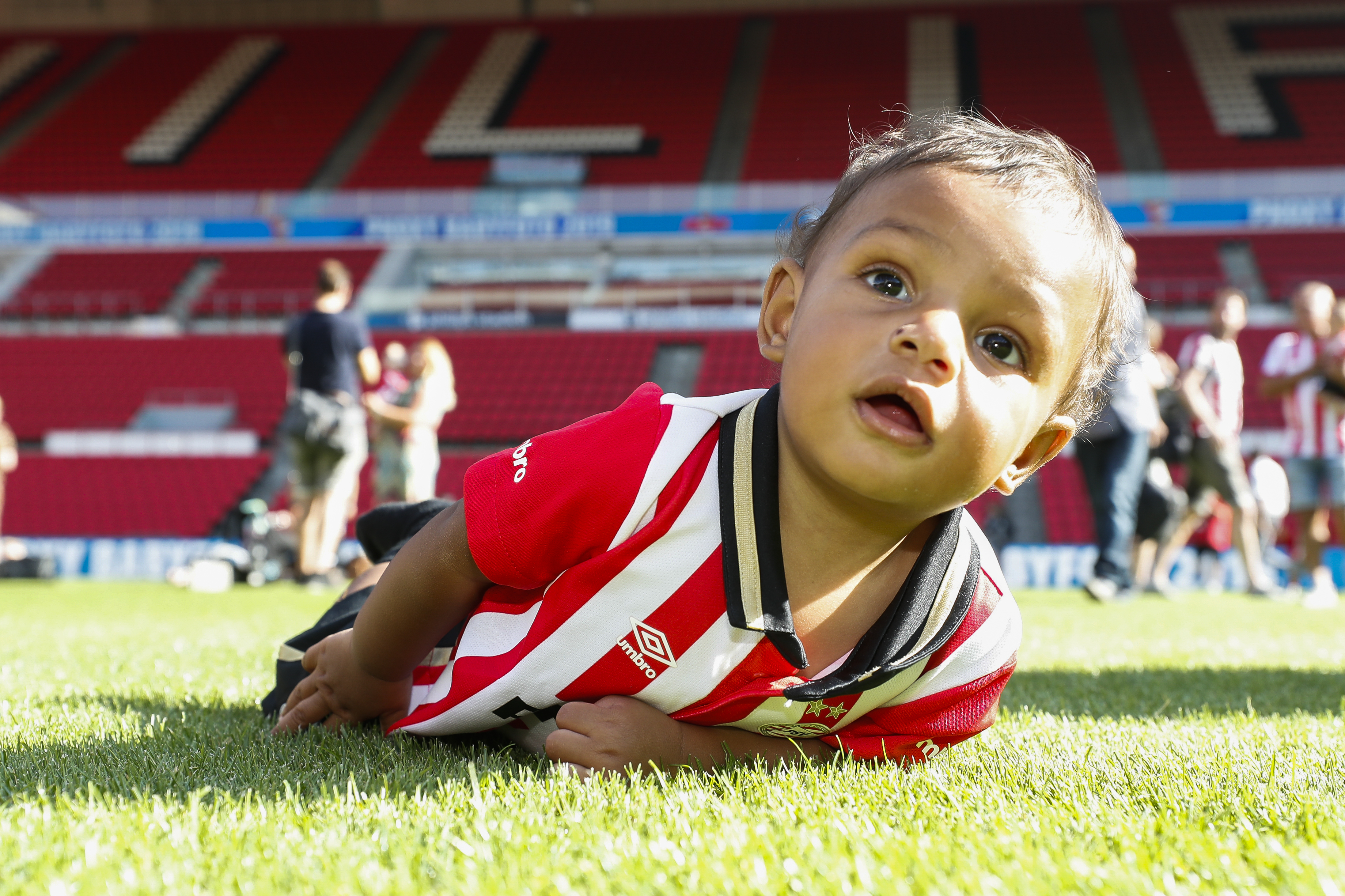 Maar liefst 450 baby's gingen in het Philips Stadion met Phoxy op de jaarlijkse babyfoto. Naast de groepsfoto mochten de ouders en de kinderen ook foto's maken op de tribune, het veld en de kleedkamer van PSV.
