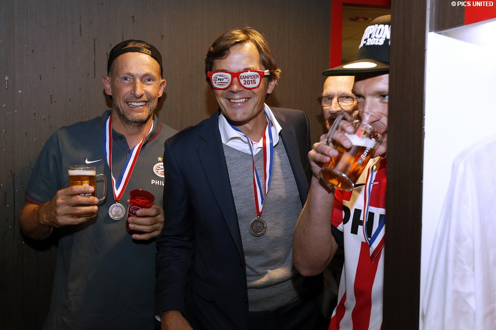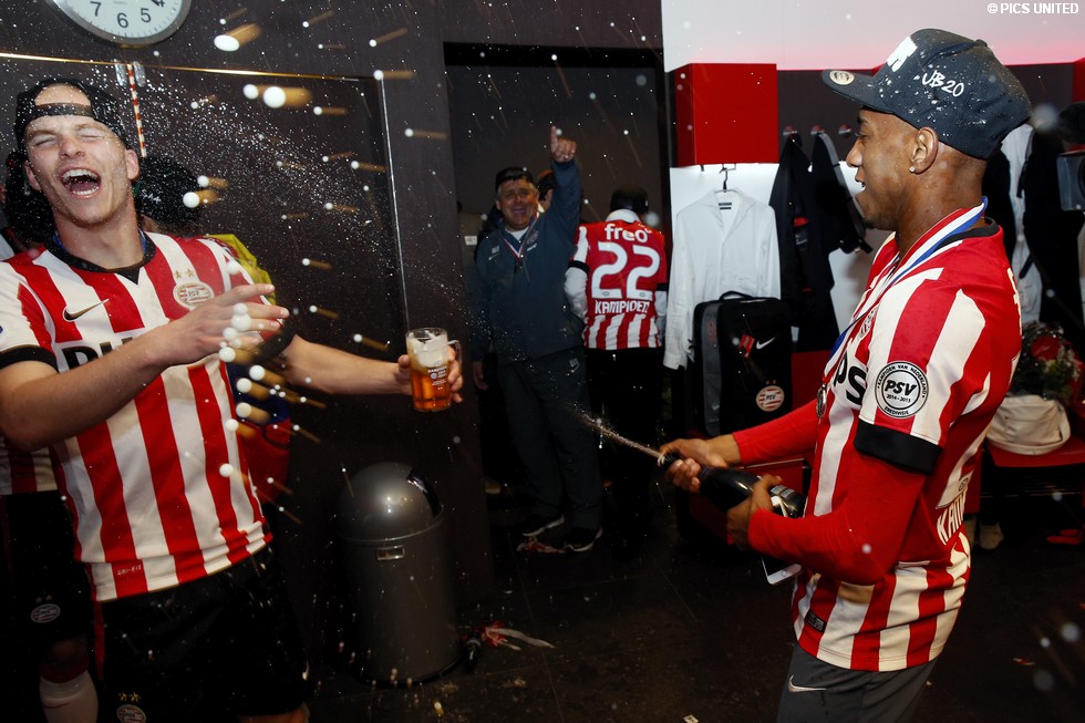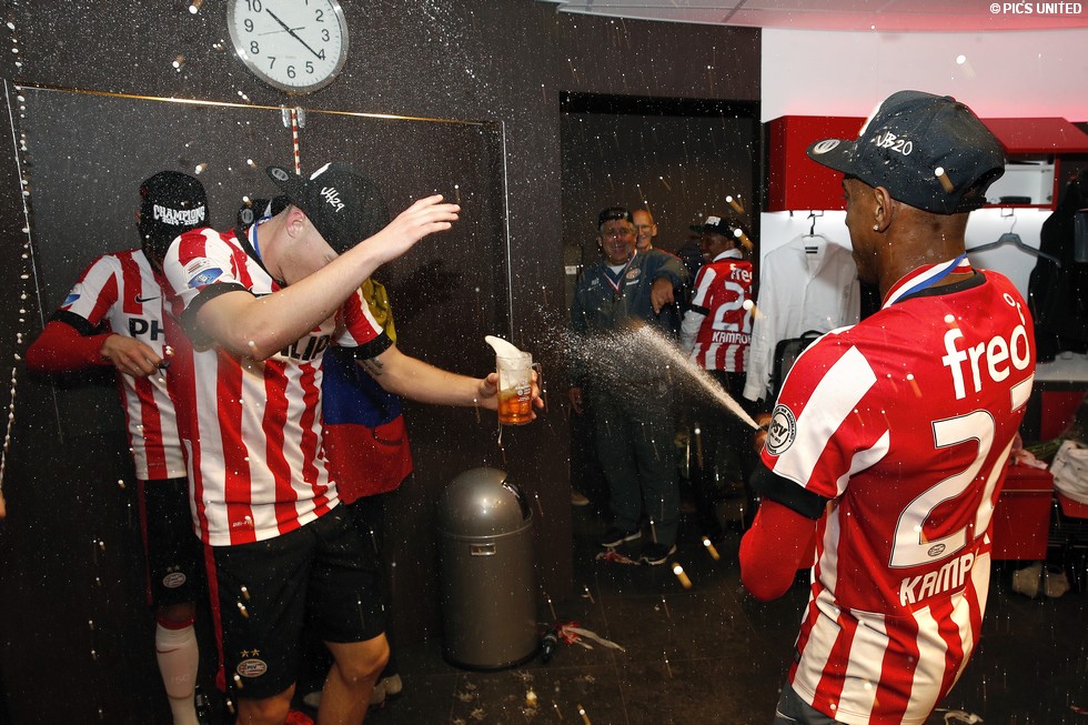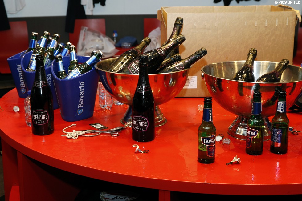 Het was een dolle boel in de kleedkamer na het behaalde landskampioenschap. Kijk hier naar enkele beelden.