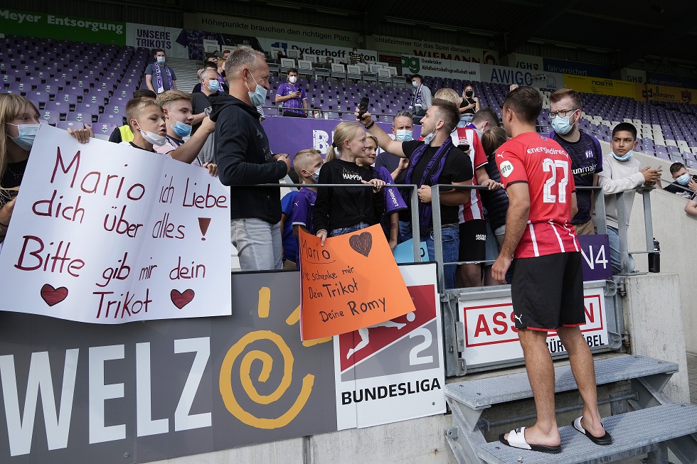 ‘Mario, Mario, Mariooo!’ Zijn naam kwam gretig uit de kelen van de Duitse toeschouwers na afloop van VfL Osnabrück - PSV. Het is deze 13e juli op de kop af zeven jaar geleden dat Götze Duitsland naar de wereldtitel schoot. In Nederland willen we nog weleens grapjes maken over het feit dat er een wereldkampioen in de Eredivisie speelt, maar in zijn vaderland is het respect groot. Götze is jaren na dato nog altijd enorm populair dankzij die ene treffer tegen Argentinië. Hij lijkt voor altijd het troetelkind van de natie te blijven. “Ik voel me goed hoor”, zegt Götze lachend.