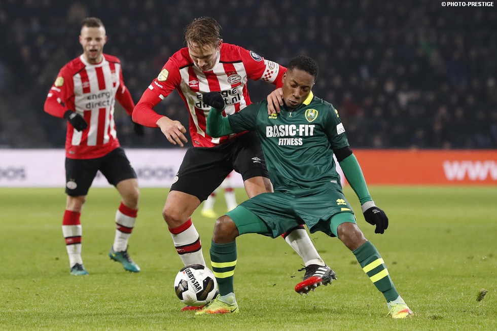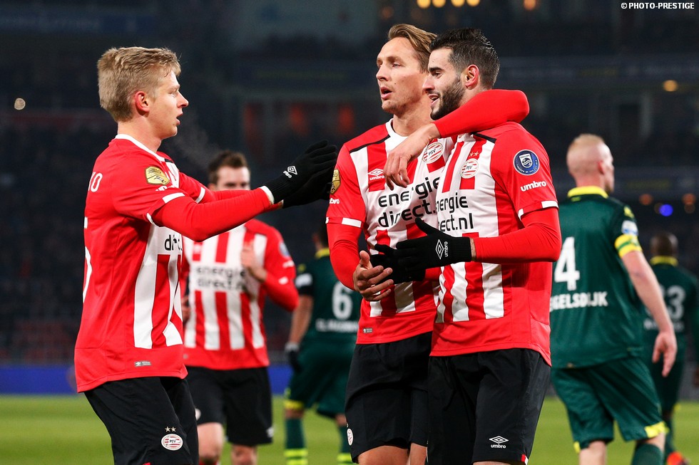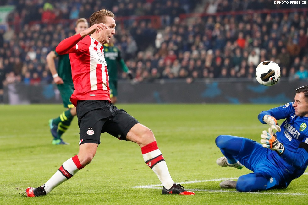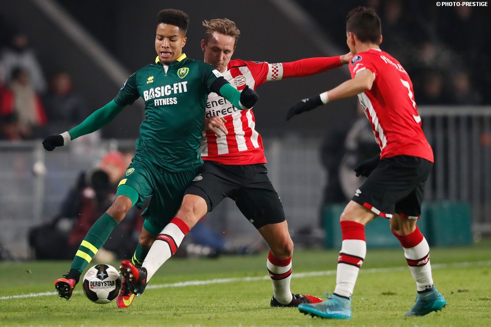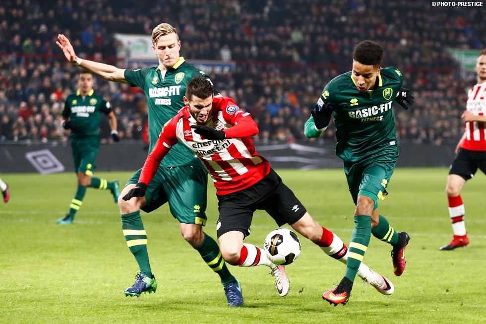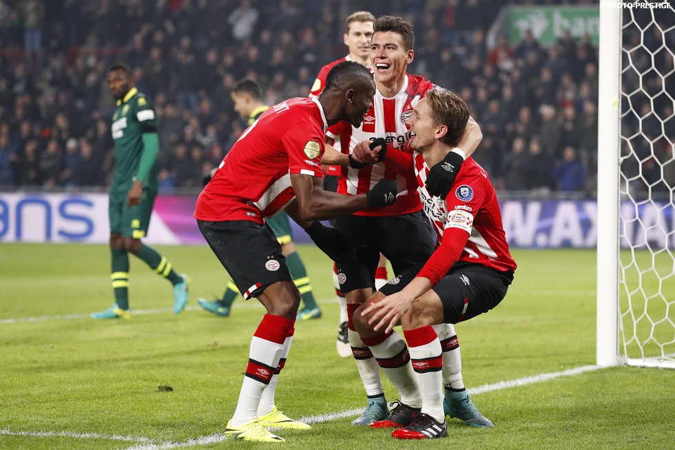 PSV behaalde zaterdagavond een belangrijke zege op ADO Den Haag en hield daarmee de druk op Ajax en Feyenoord, die op zondag in actie zullen komen. Een fotoverslag.