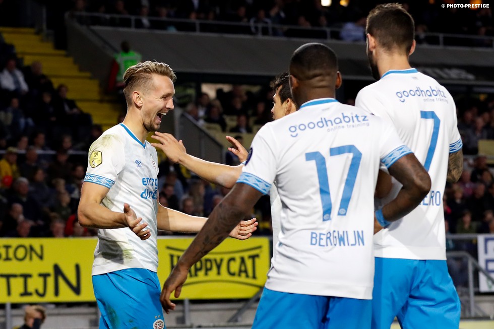 Dankzij een 2-0 zege op NAC Breda beleeft PSV de beste seizoensstart van deze eeuw. De ploeg van Mark van Bommel won al zijn zeven wedstrijden in de Eredivisie tot nu toe en dankte in Breda aanvoerder Luuk de Jong en Donyell Malen.