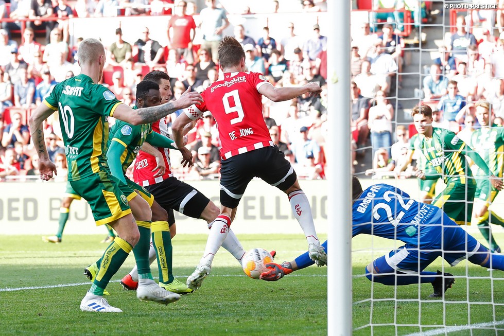 Met een kopbal maakte Luuk de Jong zondag zijn 27e treffer van het seizoen. Een persoonlijk record voor de aanvaller, die met PSV nog altijd jaagt op de landstitel. De aanvoerder van PSV is drie speelronden voor het eind van de competitie topscorer van de Eredivisie.