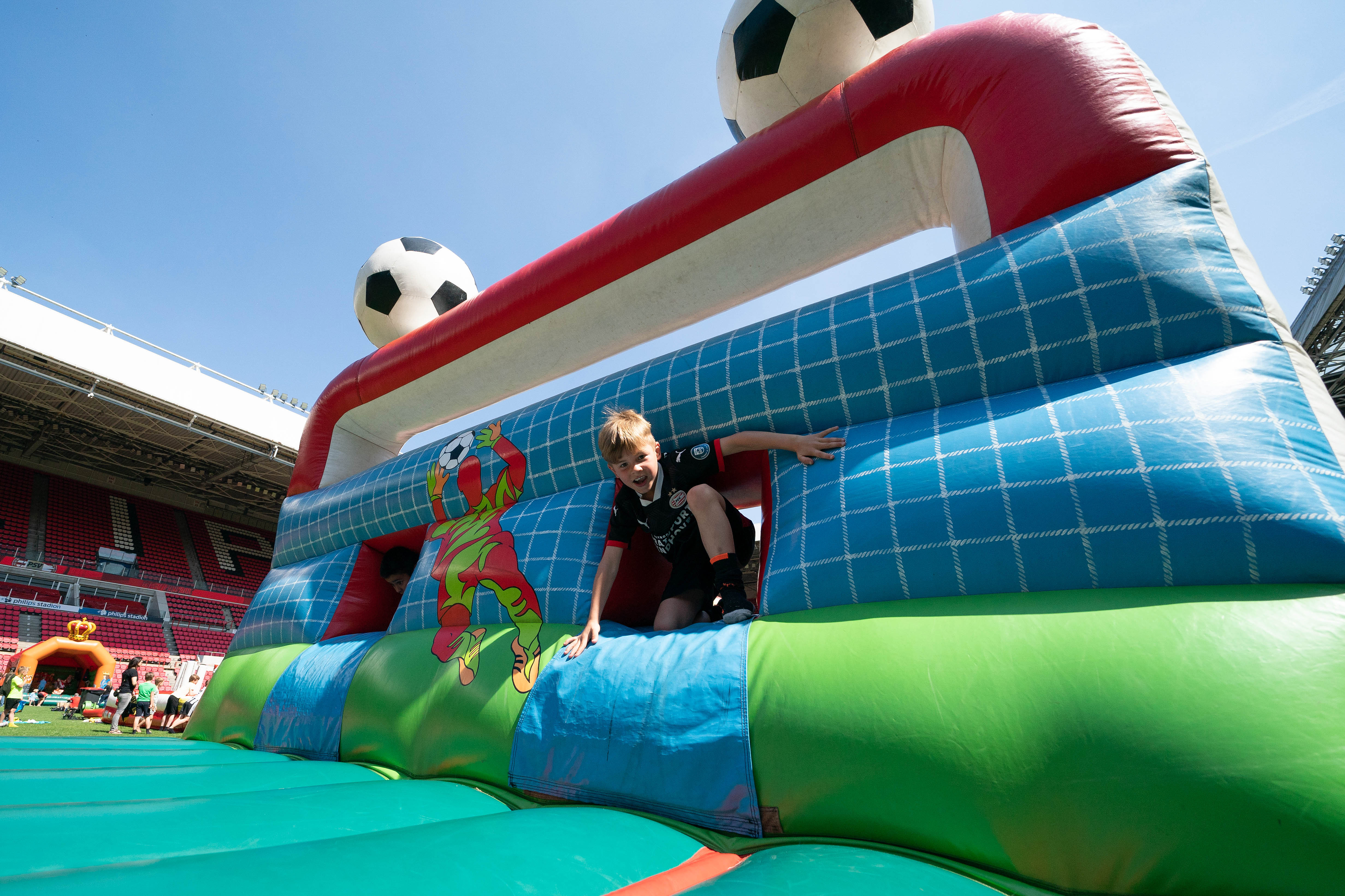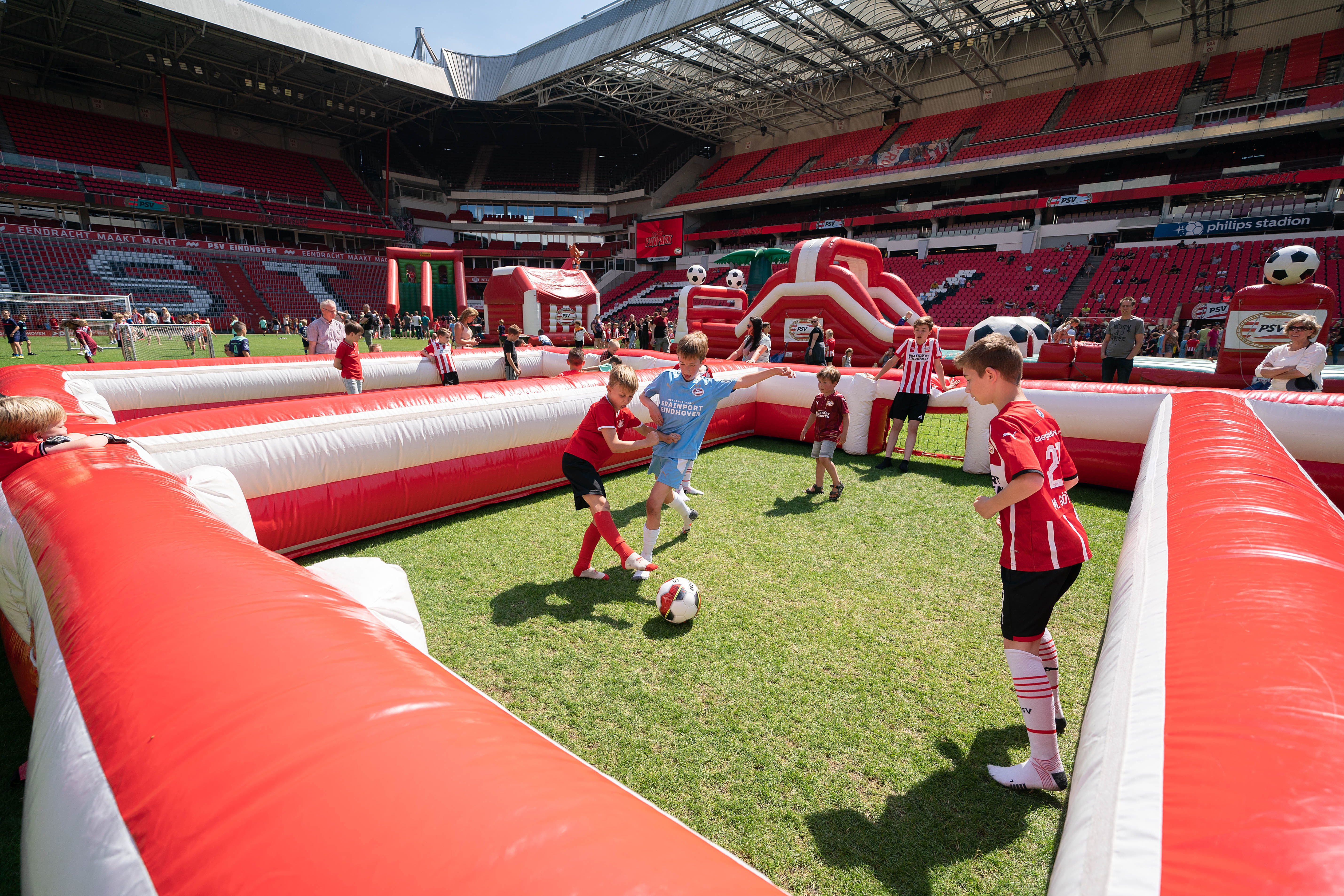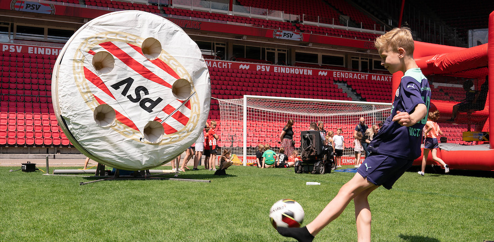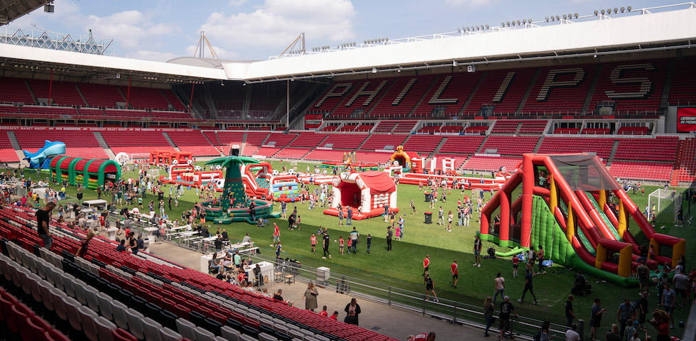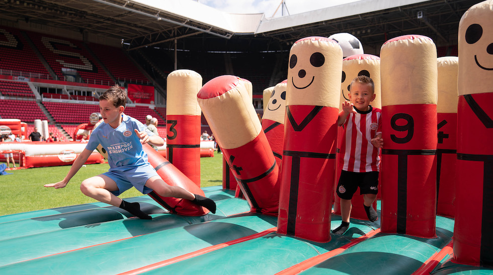 Op zondag 22 mei werd het Philips Stadion omgebouwd tot outdoor speelparadijs. Niet de spelers, maar leden van FC PSV O11 schitterden op deze zonnige dag op de heilige grasmat van PSV.