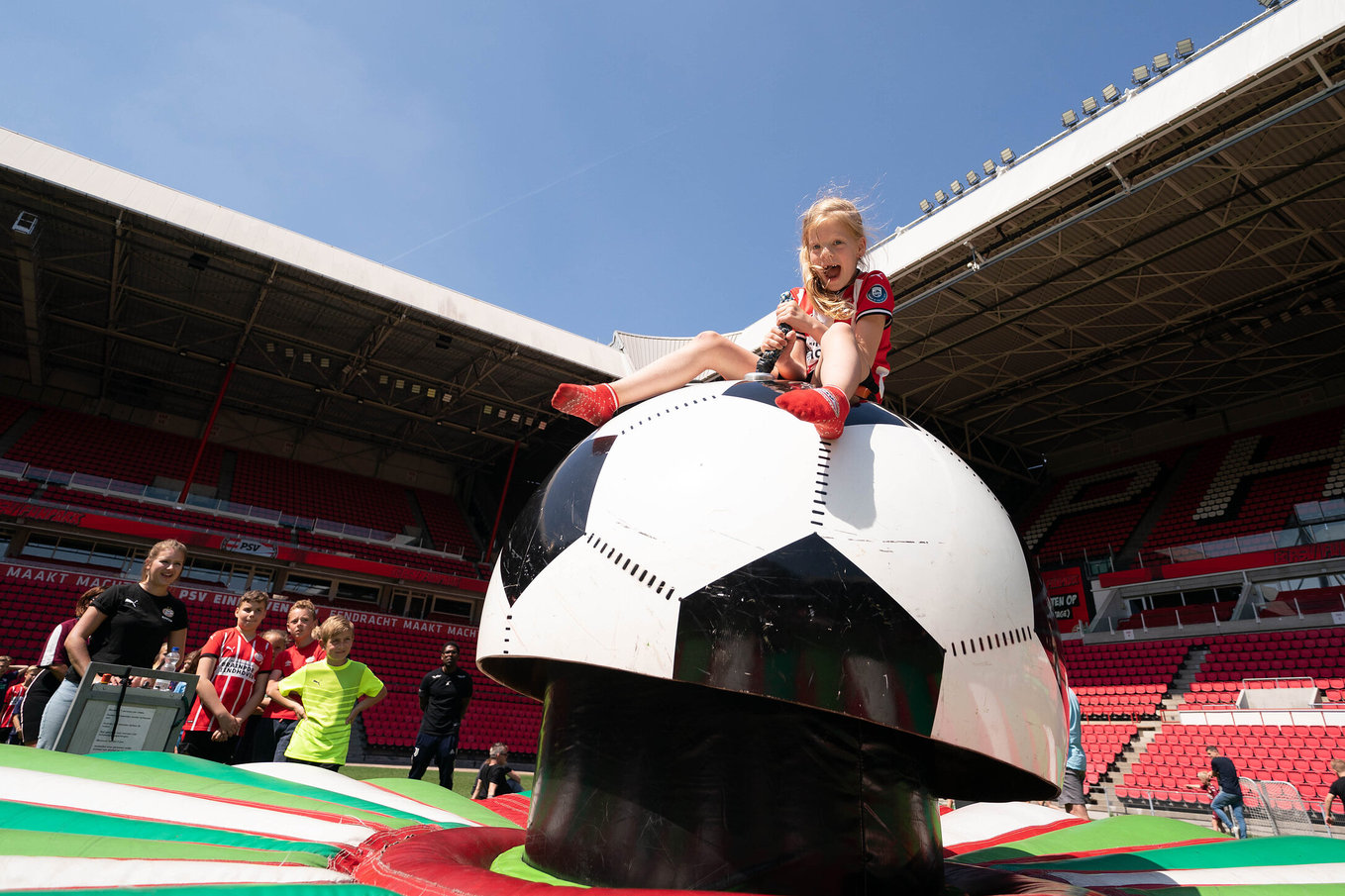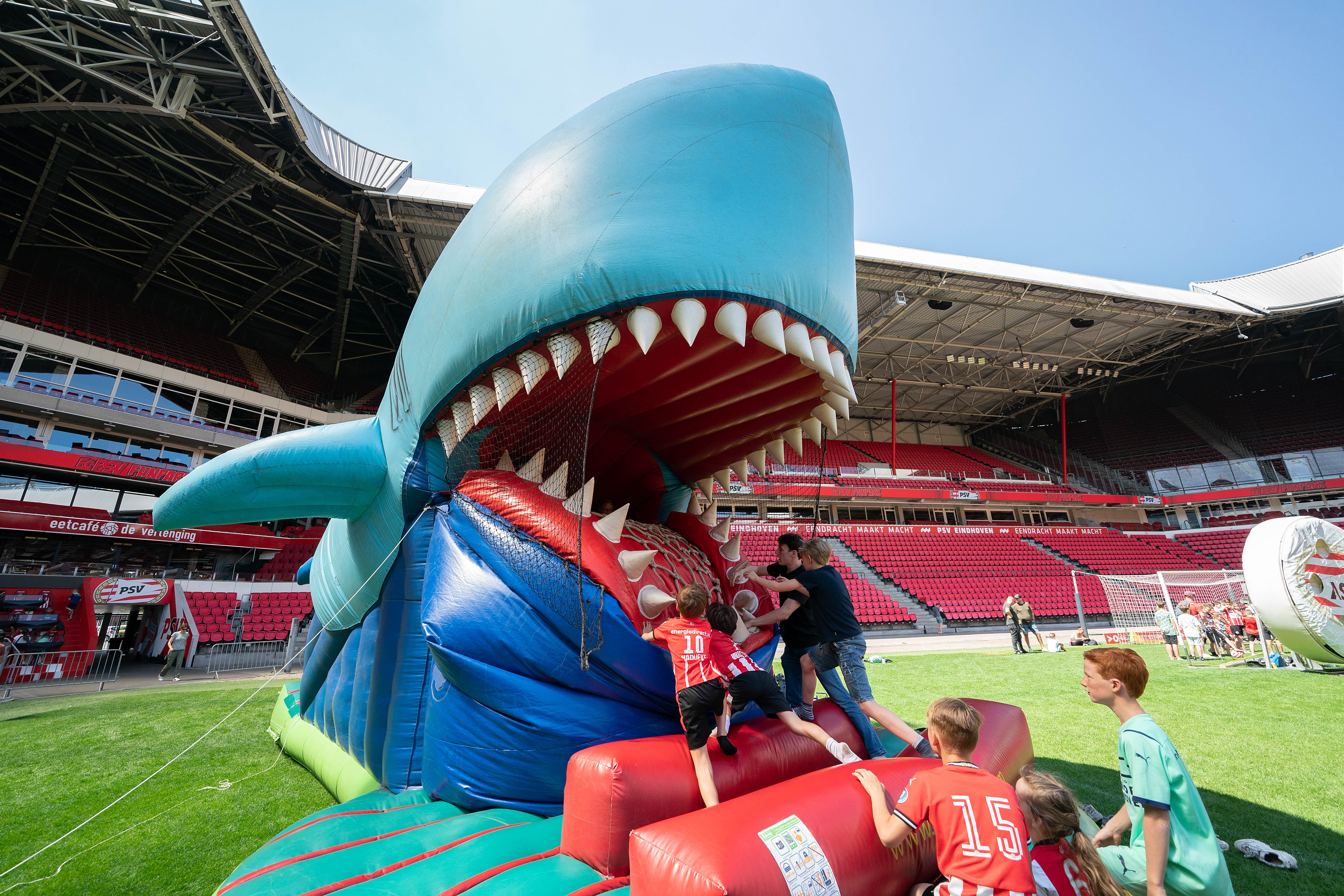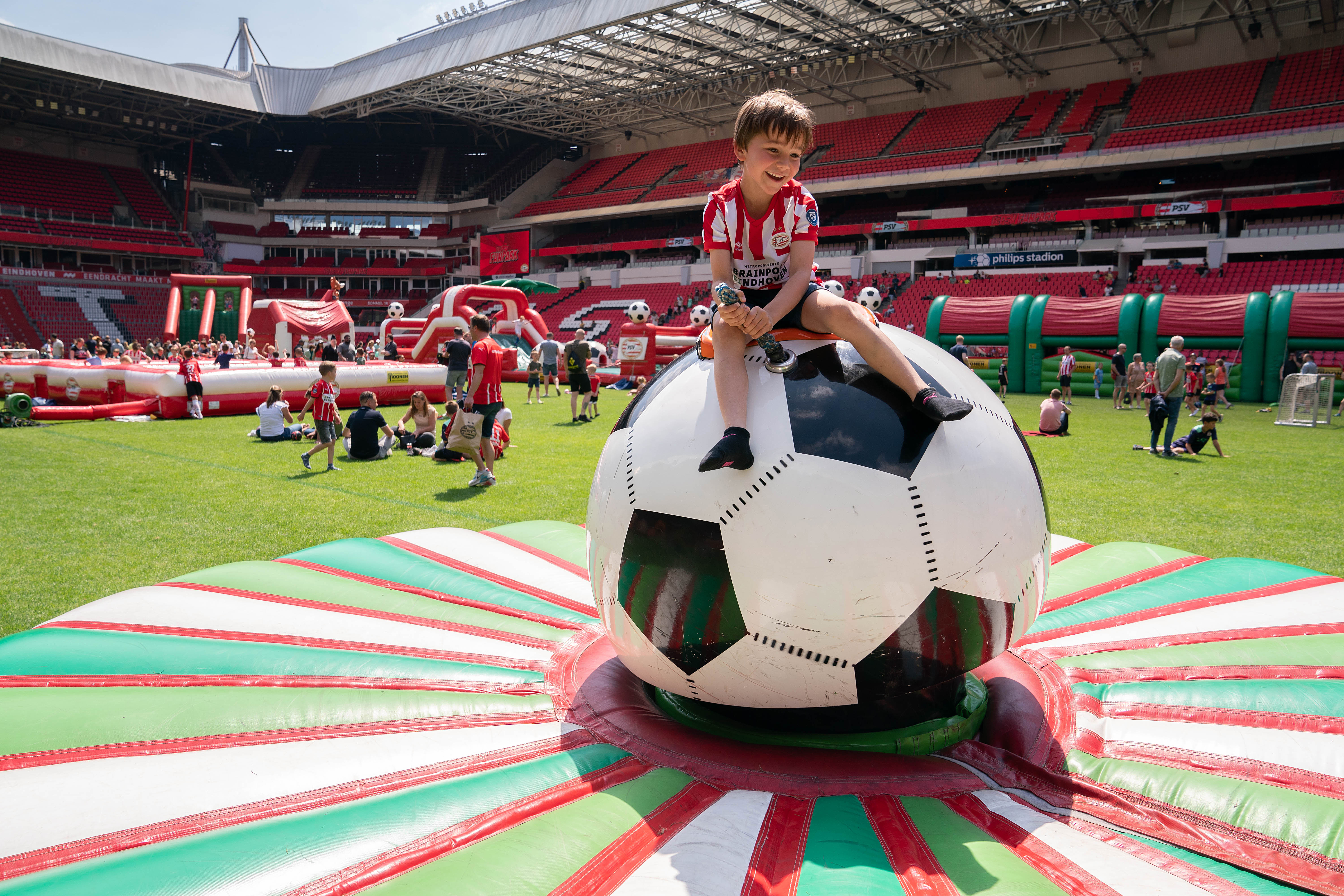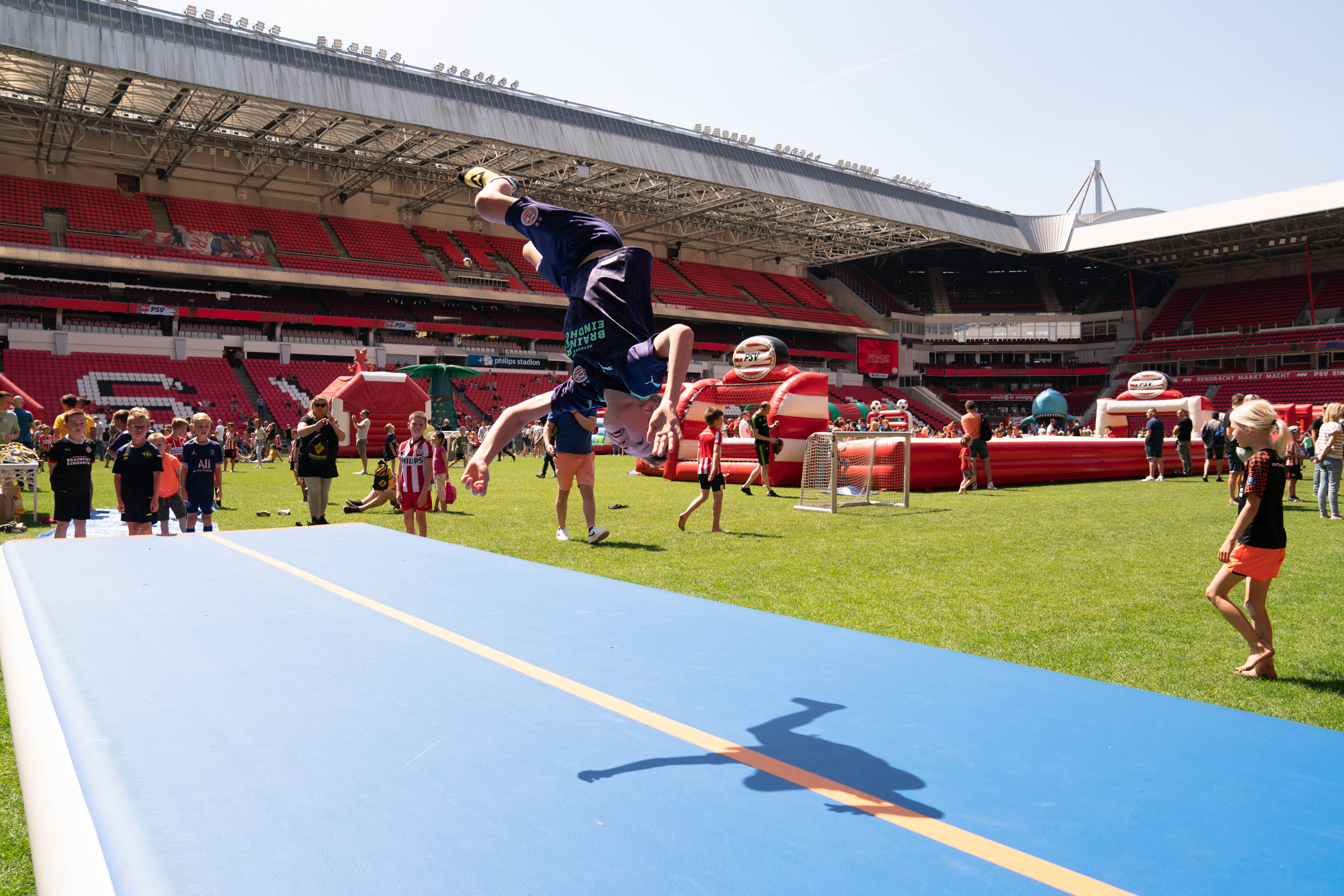 Op zondag 22 mei werd het Philips Stadion omgebouwd tot outdoor speelparadijs. Niet de spelers, maar leden van FC PSV O11 schitterden op deze zonnige dag op de heilige grasmat van PSV.