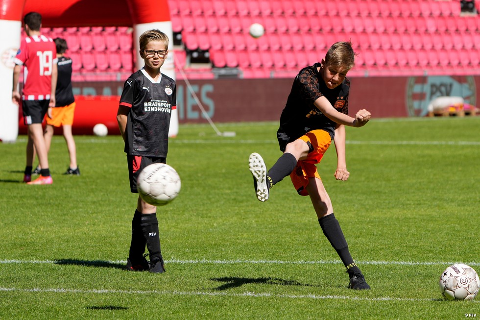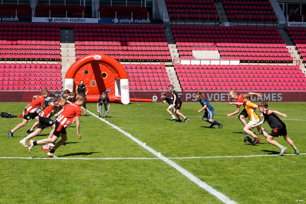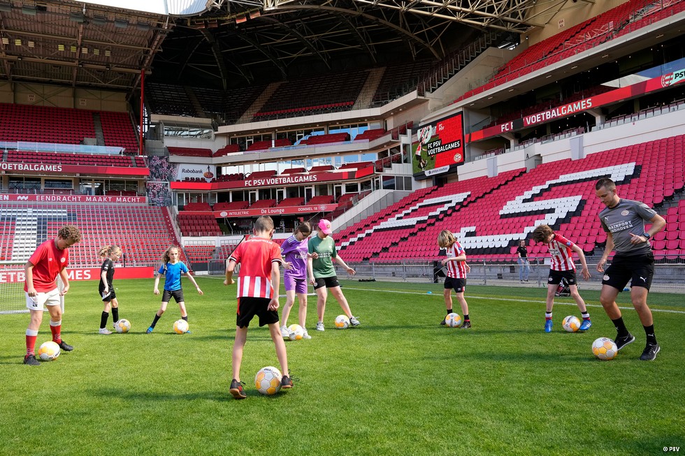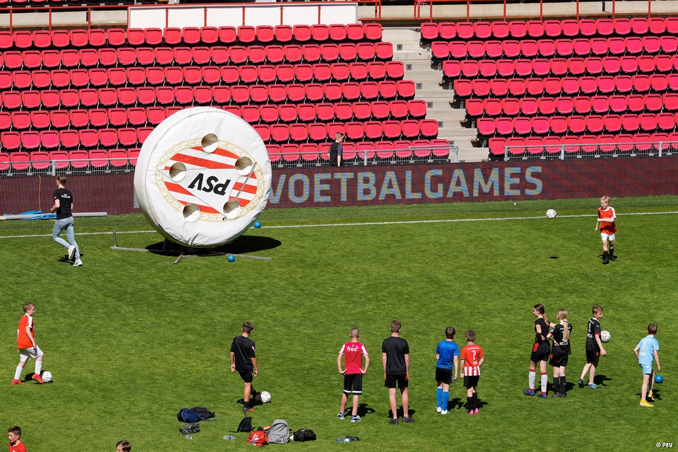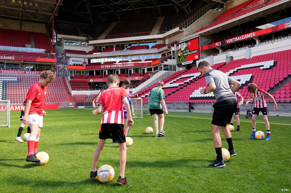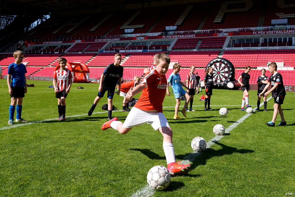 Tijdens de FC PSV Voetbalgames waren zo’n 200 leden van FC PSV O15 samen met een vriend of vriendin welkom op de grasmat van het Philips Stadion om aan hun voetbalskills te werken.