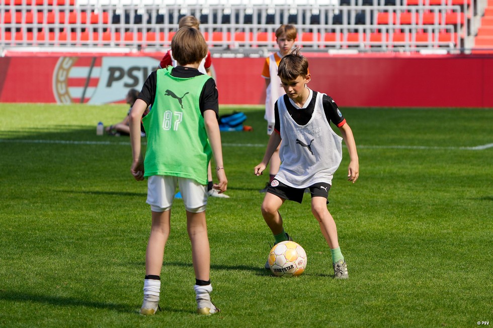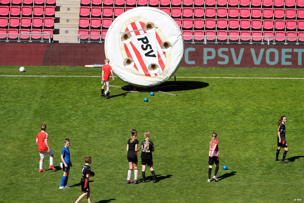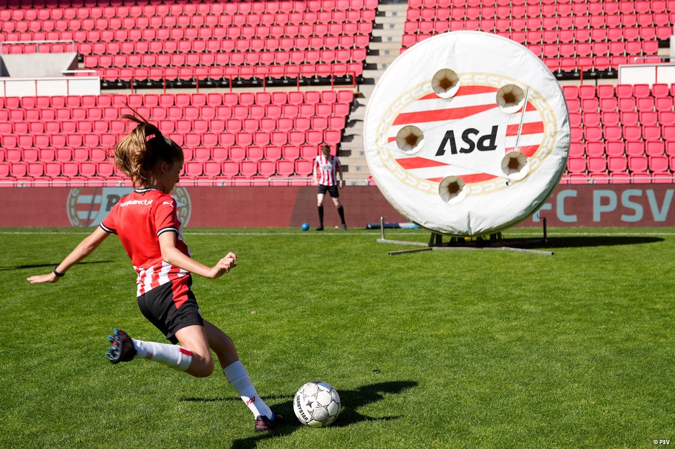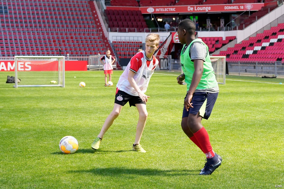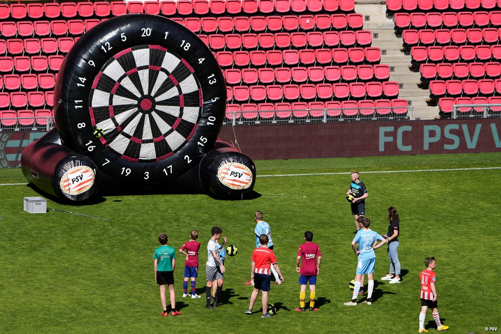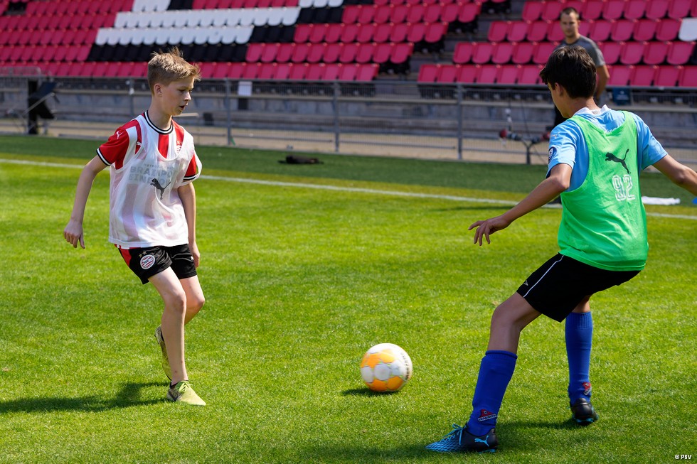 Tijdens de FC PSV Voetbalgames waren zo’n 200 leden van FC PSV O15 samen met een vriend of vriendin welkom op de grasmat van het Philips Stadion om aan hun voetbalskills te werken.