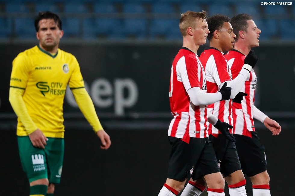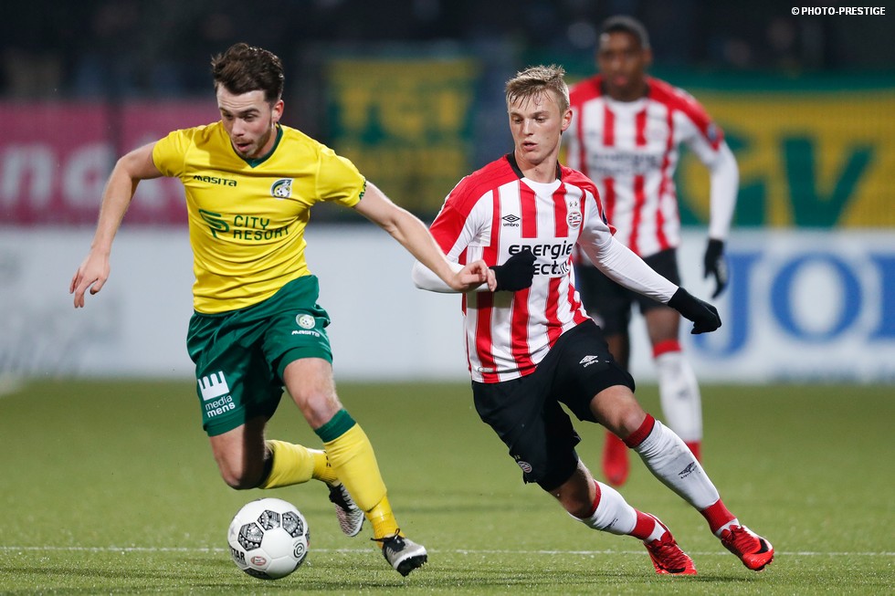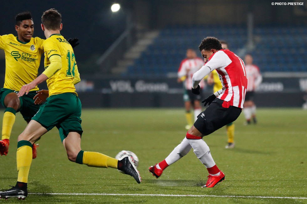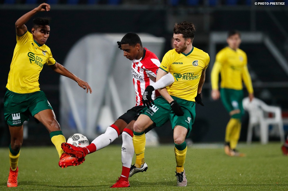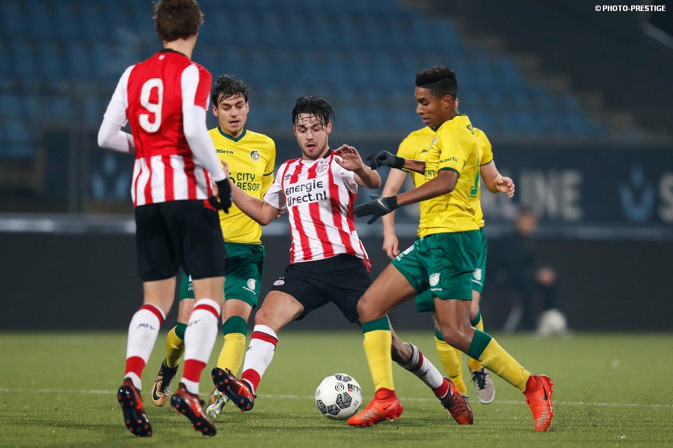 Fotoverslag van de competitiewedstrijd tussen Jong PSV en Fortuna Sittard, gespeeld in het Jan Louwers Stadion in Eindhoven.