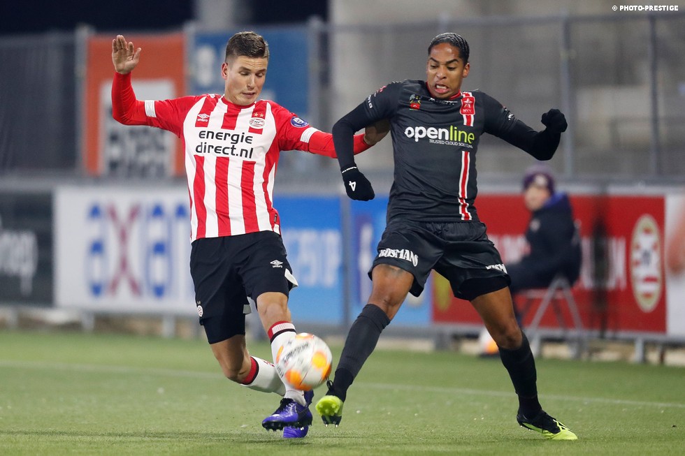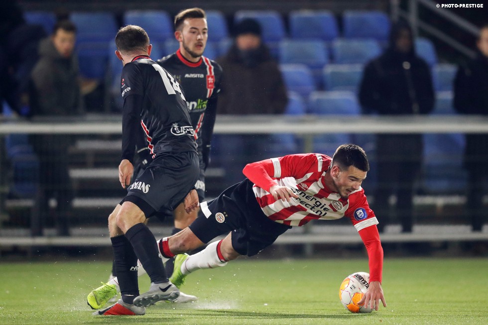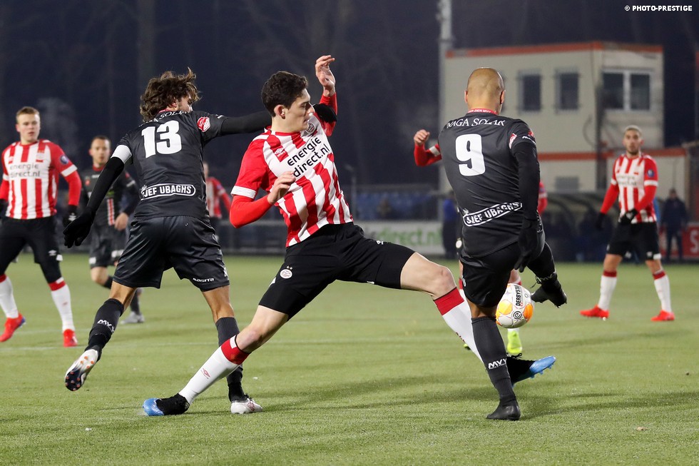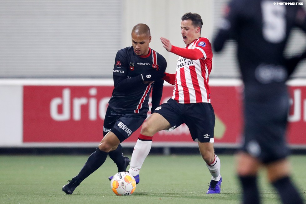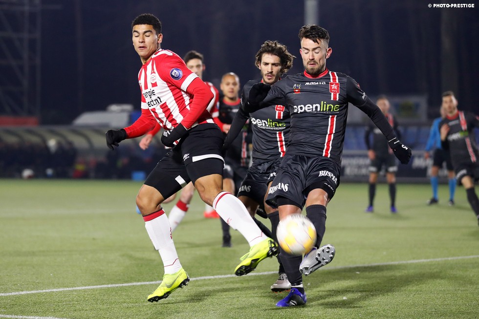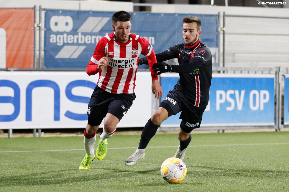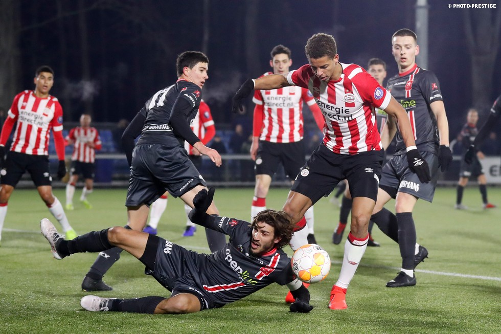 Ook de derde wedstrijd die Jong PSV na de winterstop speelde eindigde in een gelijkspel. Na een 2-2 tegen Jong Ajax en een 0-0 tegen Jong Manchester United deelden de beloften maandagavond de punten met MVV.