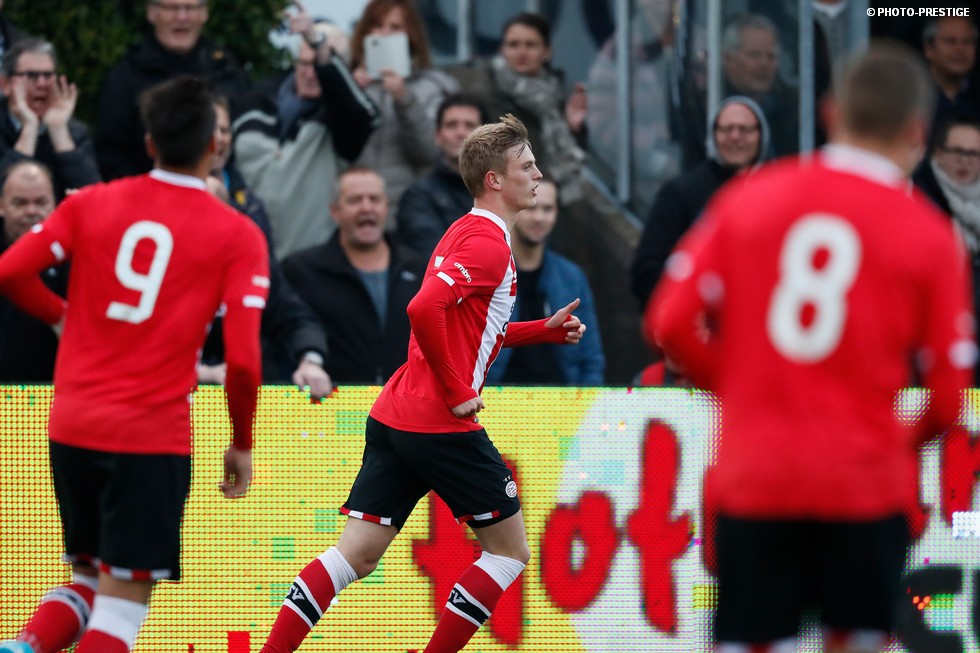 Achilles '29 had nog een sprankje hoop degradatie te ontlopen, maar Jong PSV maakte in Groesbeek aan alle onzekerheid een eind door met duidelijke cijfers te winnen. Een fotoverslag.