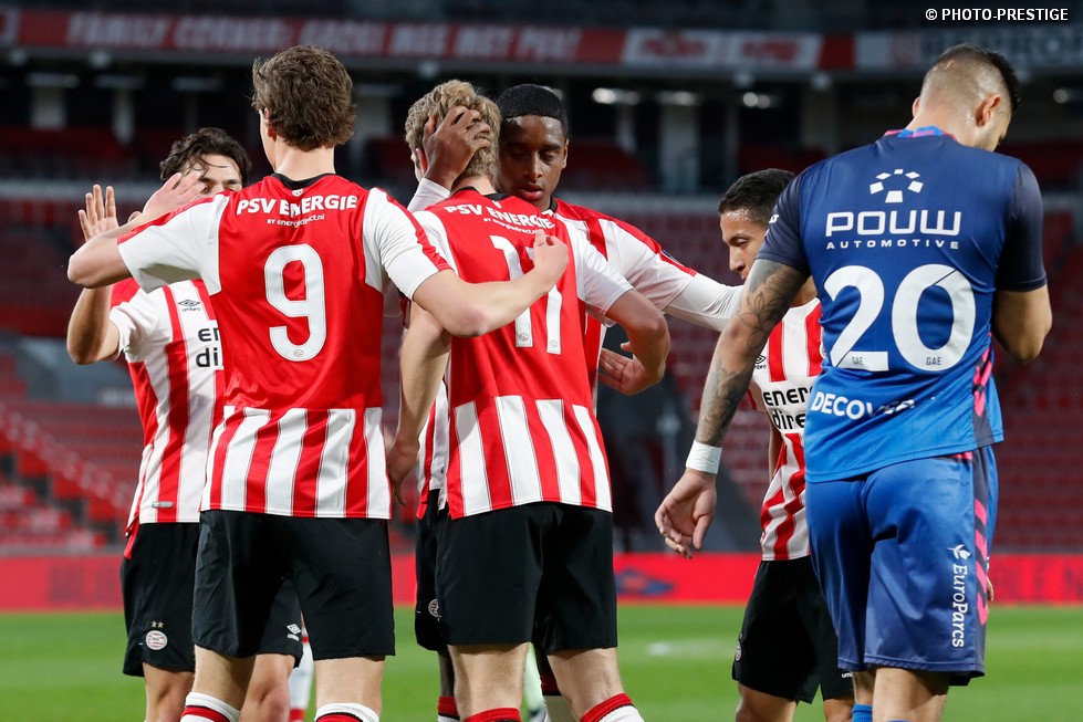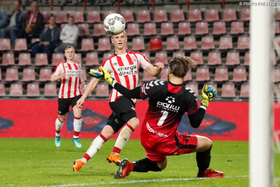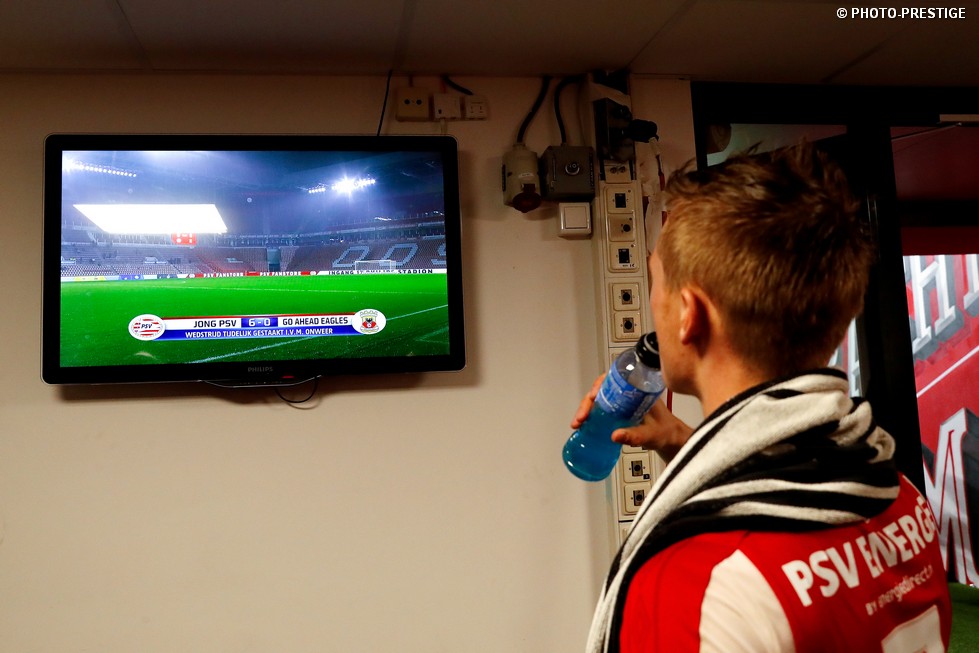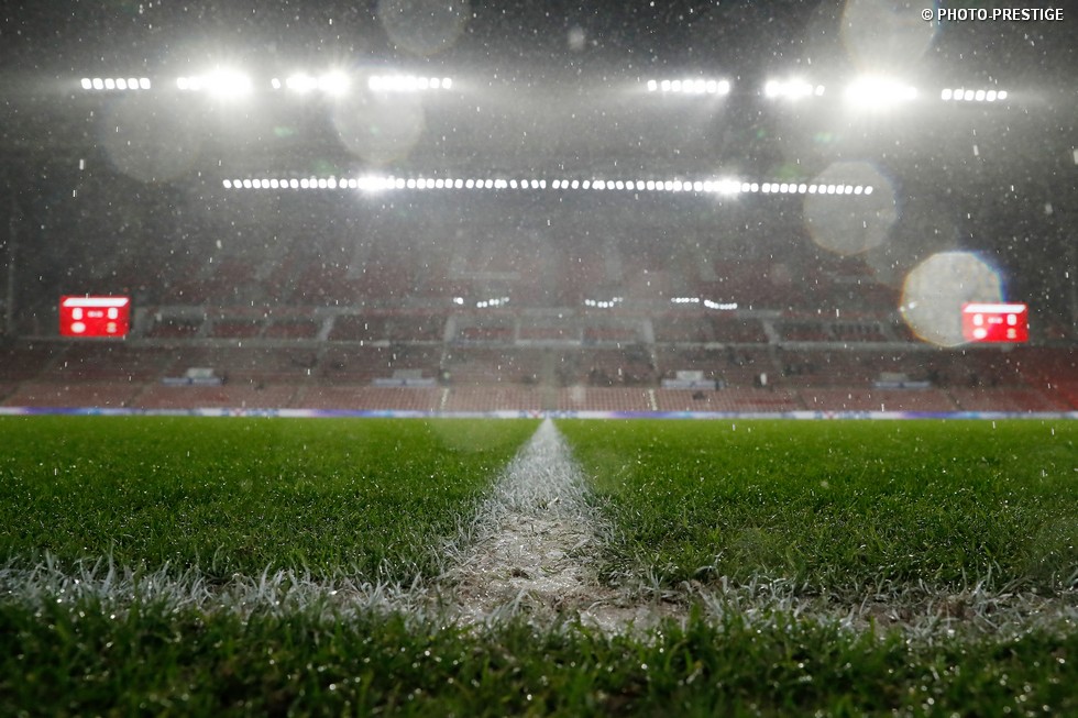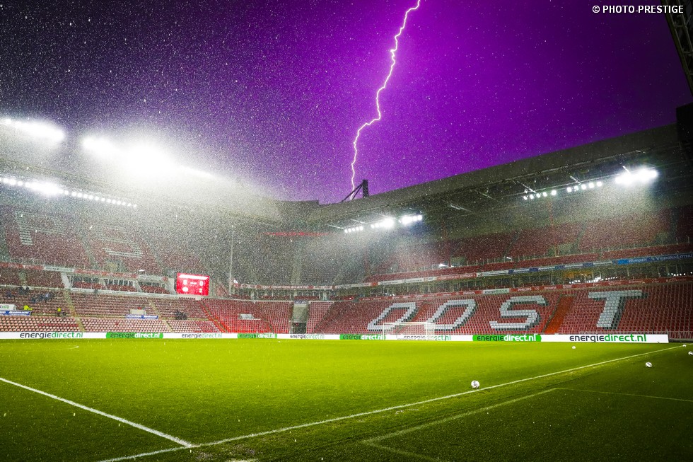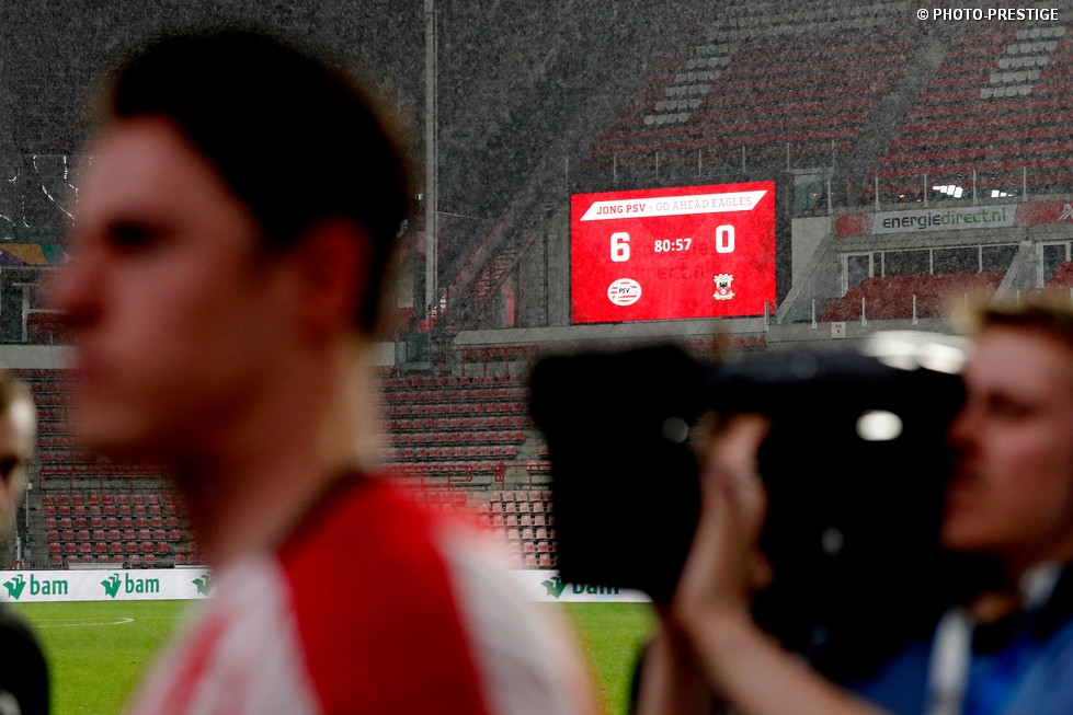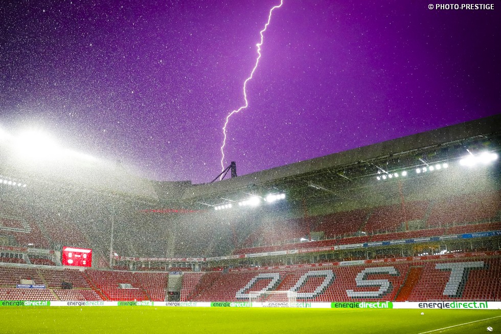 Jong PSV - Go Ahead Eagles werd dinsdagavond gestaakt. Boven het Philips Stadion brak bij een 6-0 tussenstand voor de beloften noodweer los. Dat leverde uiteraard mooie beelden op.