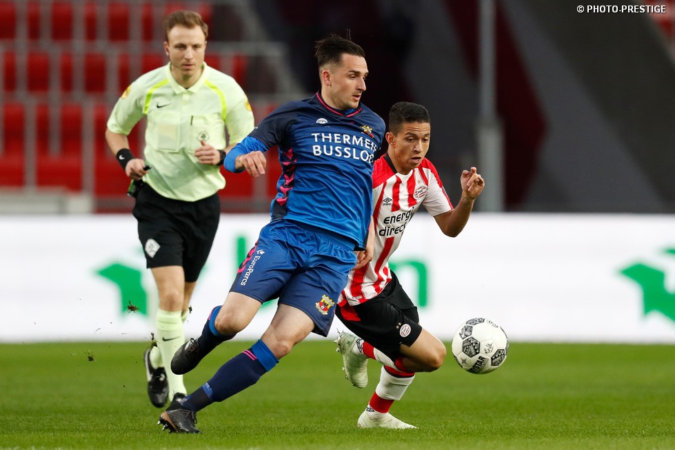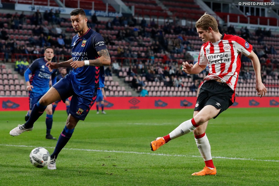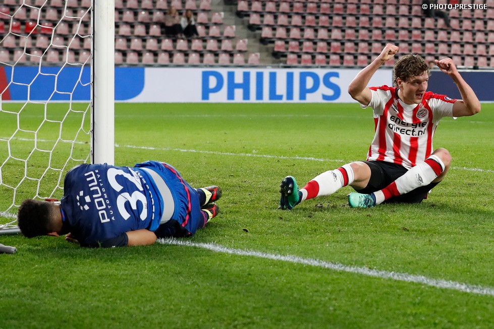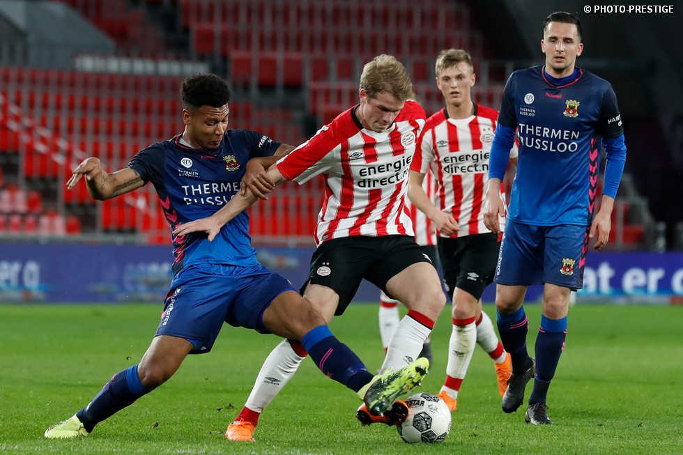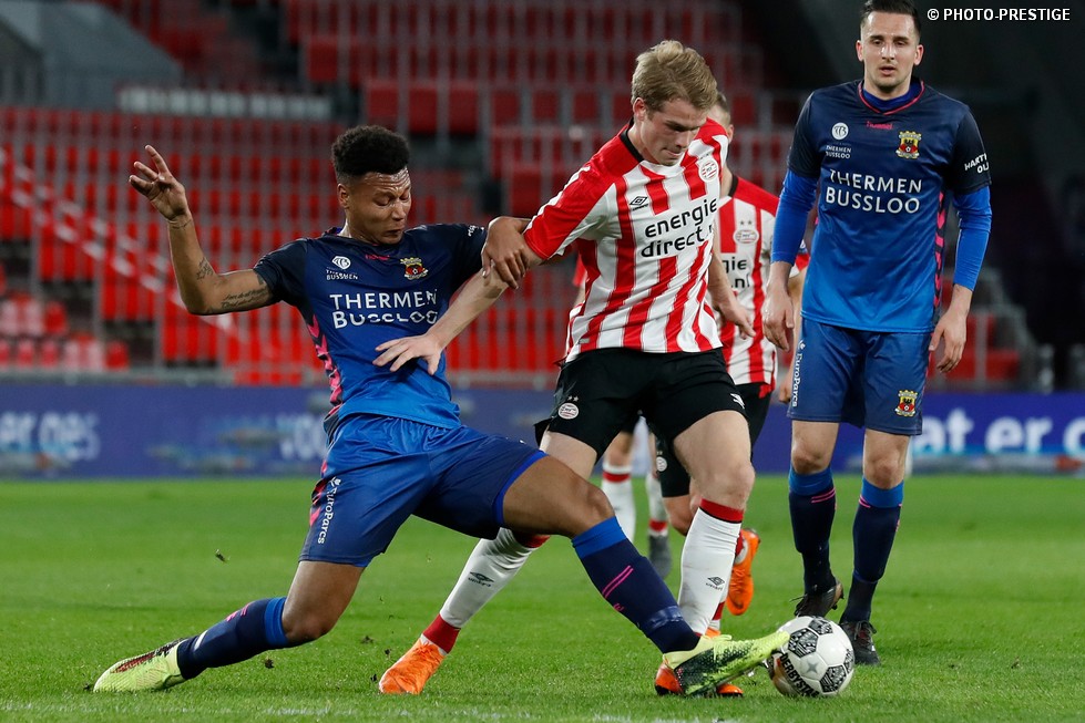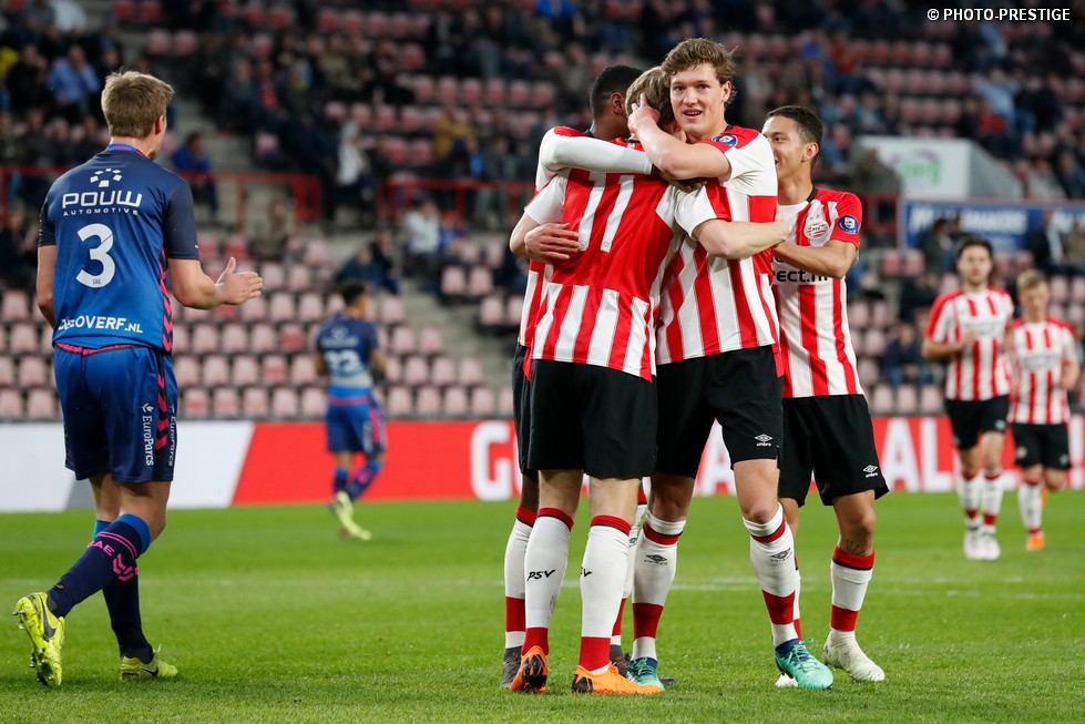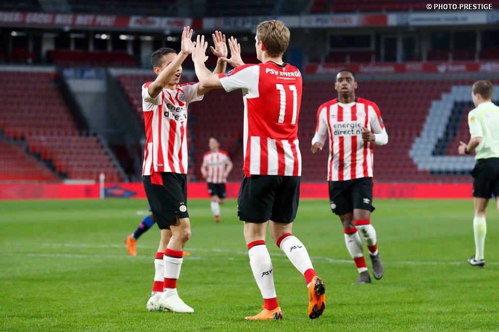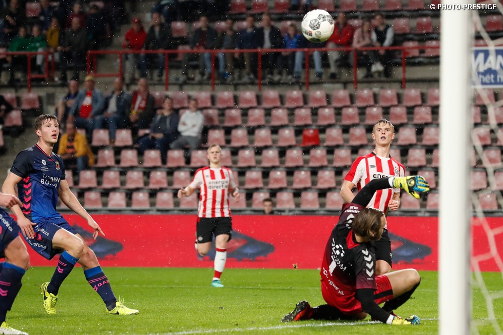 Jong PSV - Go Ahead Eagles werd dinsdagavond gestaakt. Boven het Philips Stadion brak bij een 6-0 tussenstand voor de beloften noodweer los. Dat leverde uiteraard mooie beelden op.