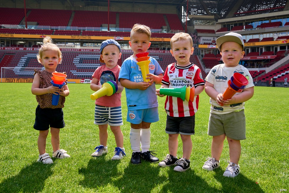 Alle 2-jarige leden van de Phoxy Club die schitterden op het veld van het Philips Stadion.