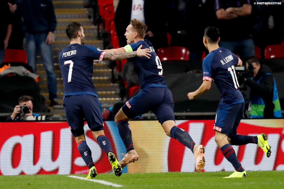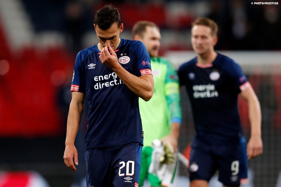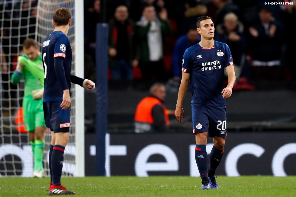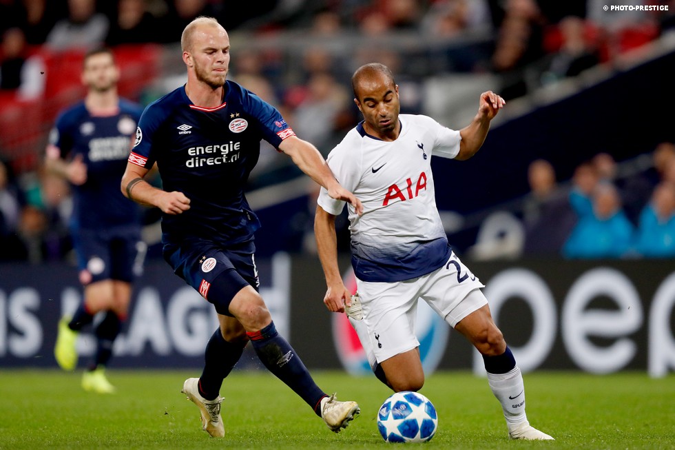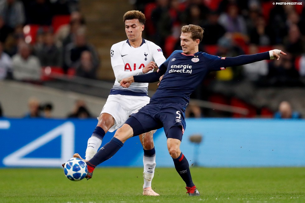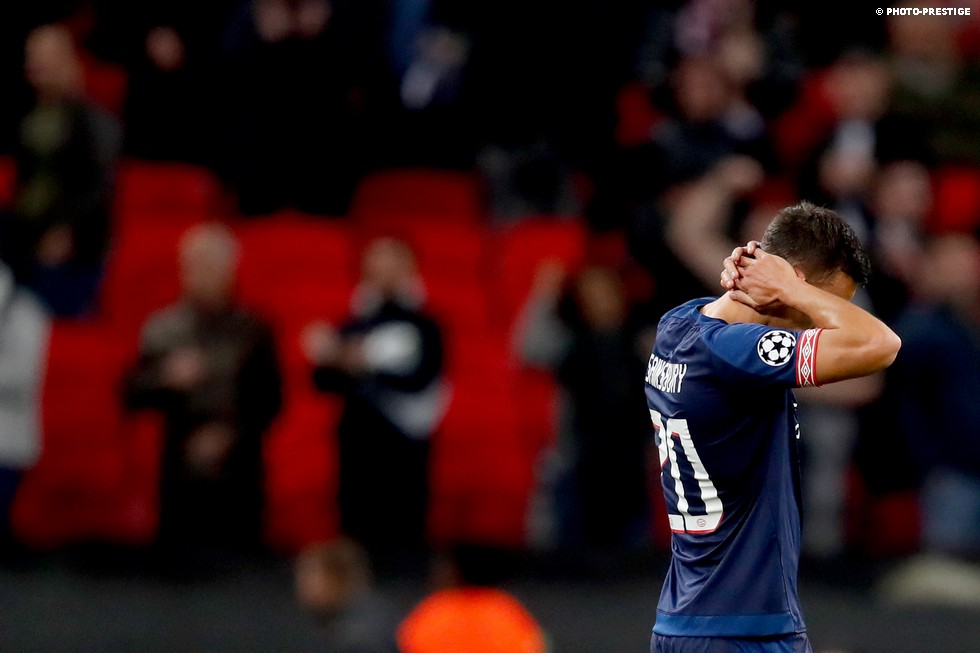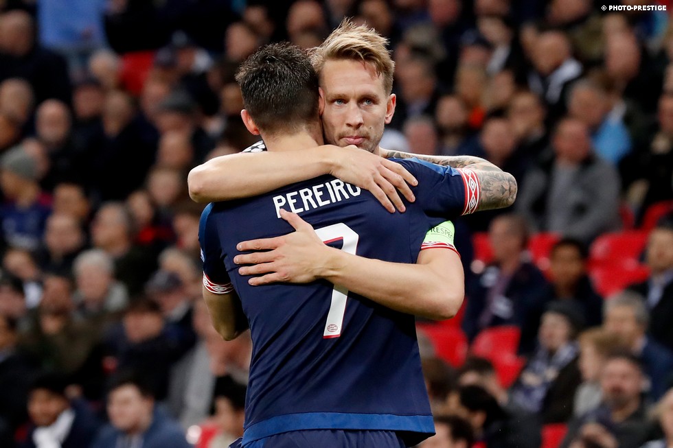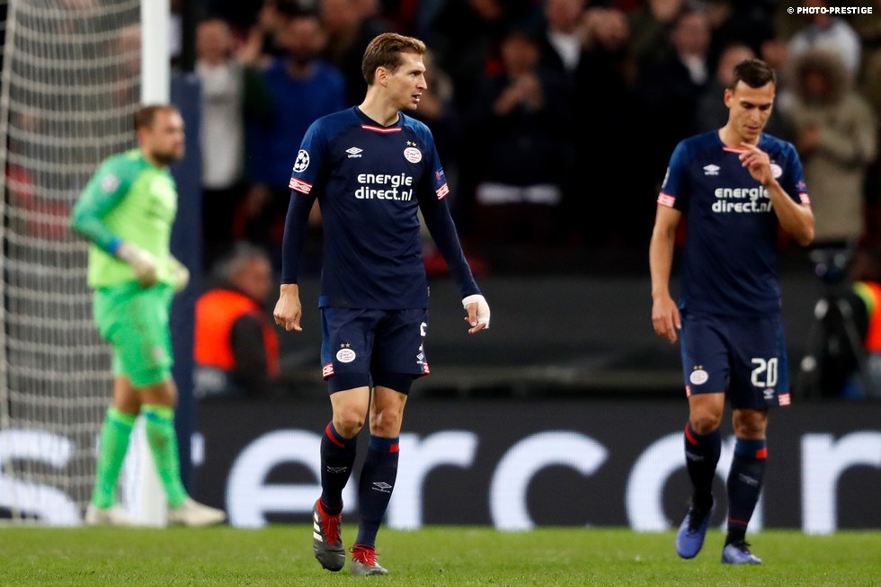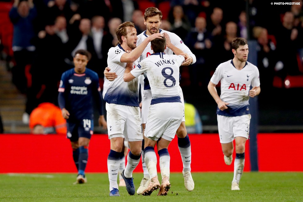De teleurstelling was van de gezichten van de PSV'ers af te lezen toen Harry Kane Tottenham Hotspur in de slotseconden van de officiële speeltijd op 2-1 zette. Door de nederlaag in Londen is de ploeg van Mark van Bommel uitgeschakeld in de UEFA Champions League. Een fotoverslag van een heroïsch gevecht op Wembley, waar PSV lang droomde van een stunt.
