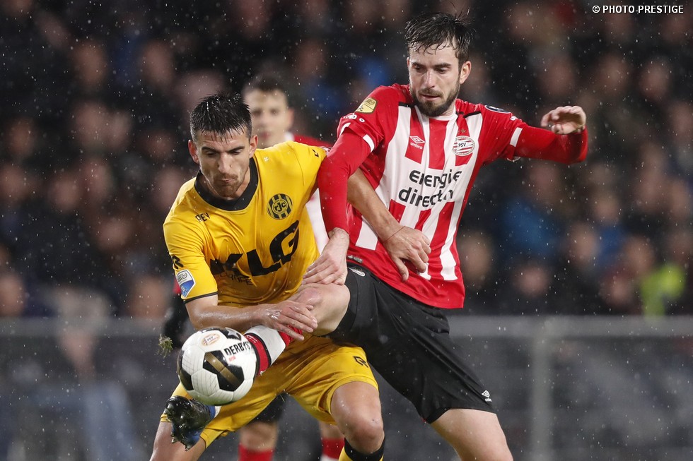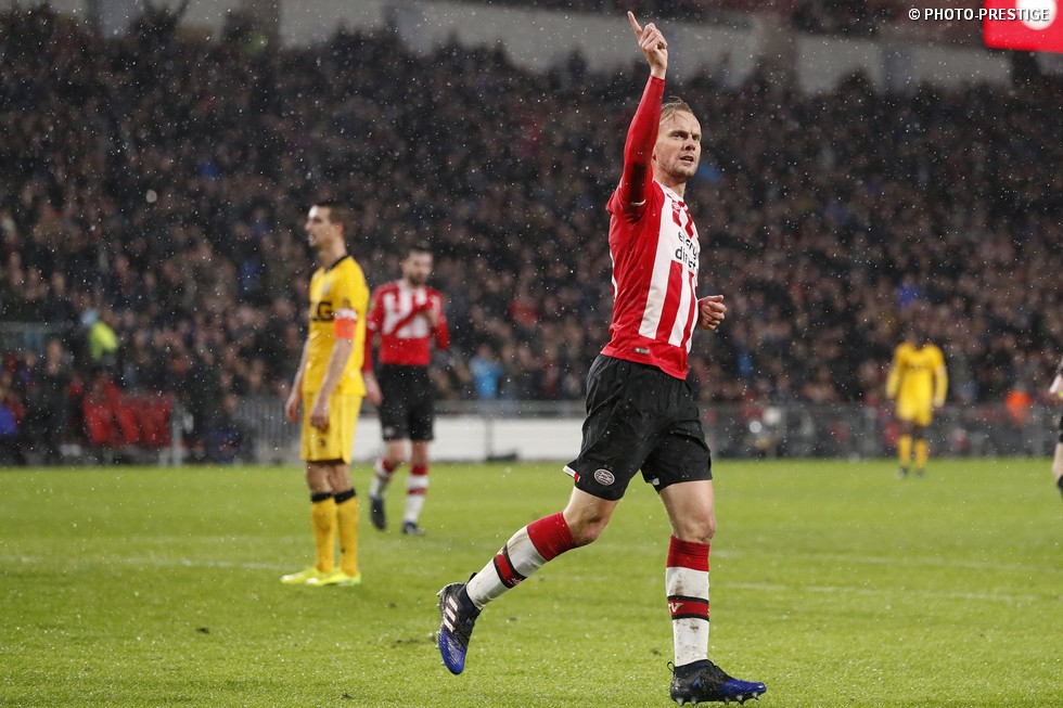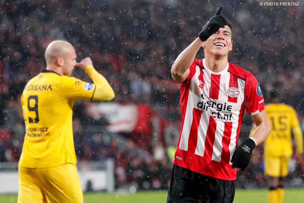 Met een 4-0 zege op Roda JC Kerkrade sluipt PSV dichter naar Ajax, dat zondagmiddag met 1-1 gelijkspeelde tegen FC Groningen. De achterstand op Feyenoord is door de nederlaag van de koploper bij Sparta Rotterdam opnieuw 8 punten. Bekijk hier het weekend van PSV in beeld.