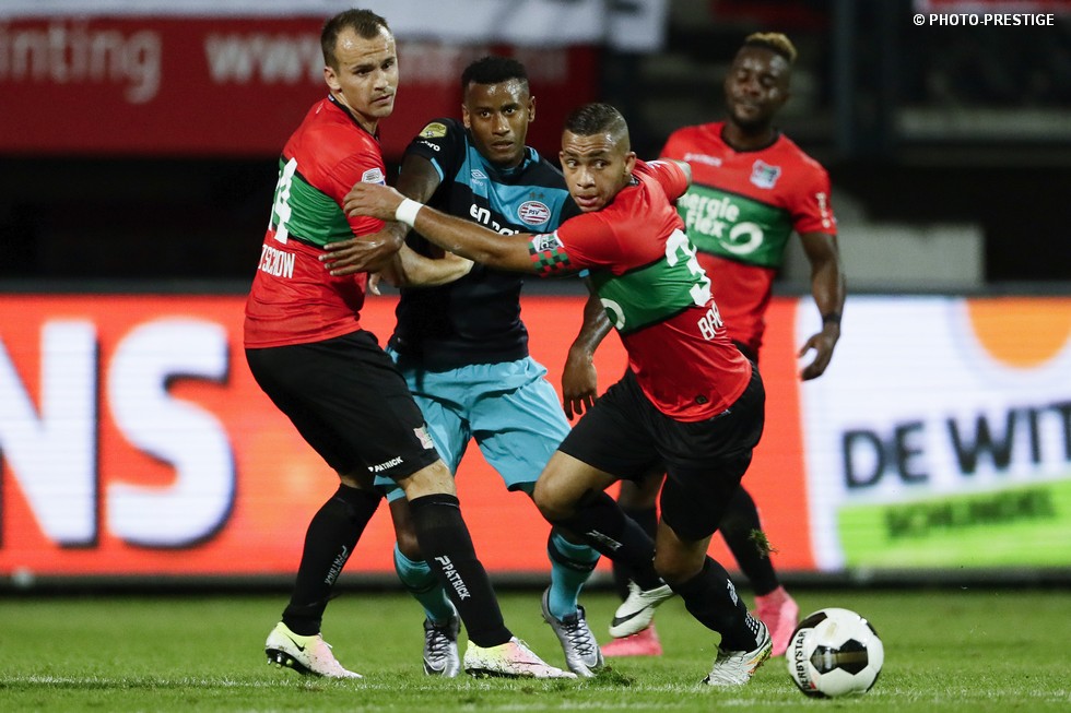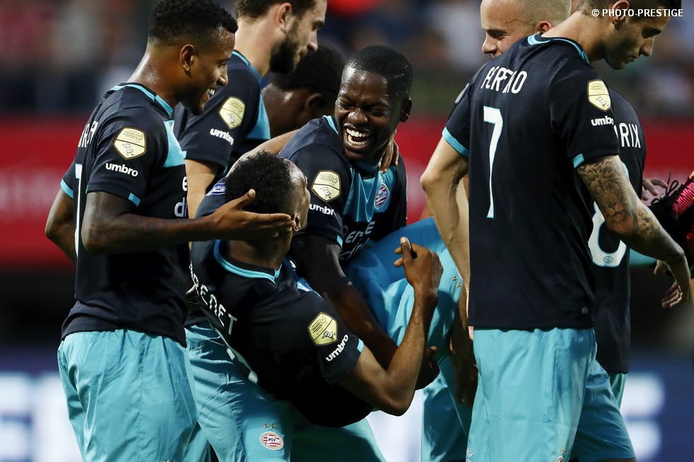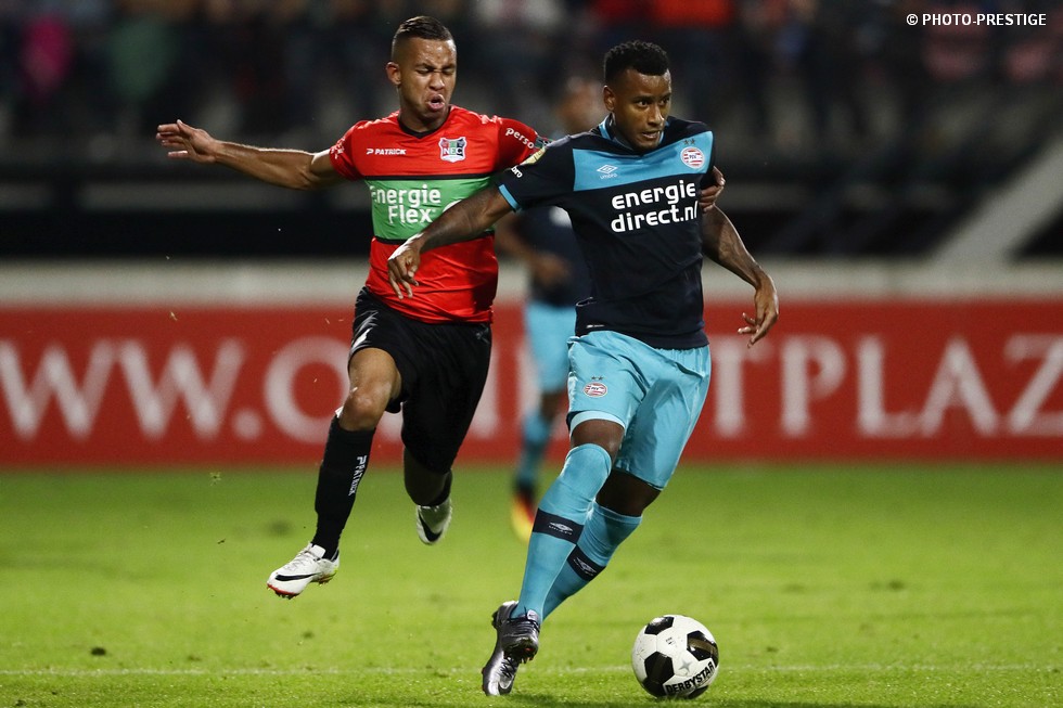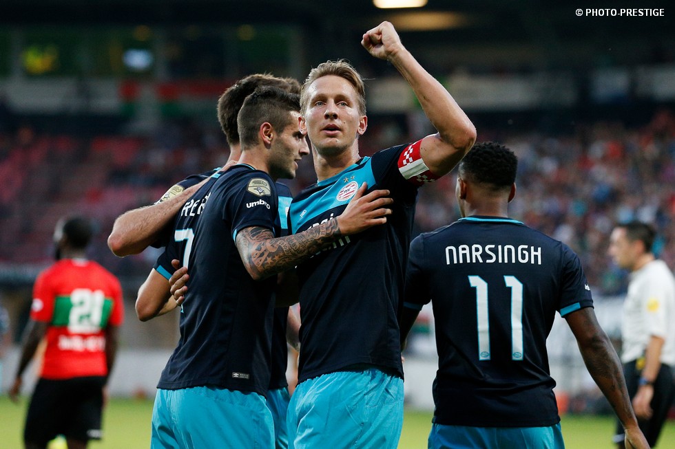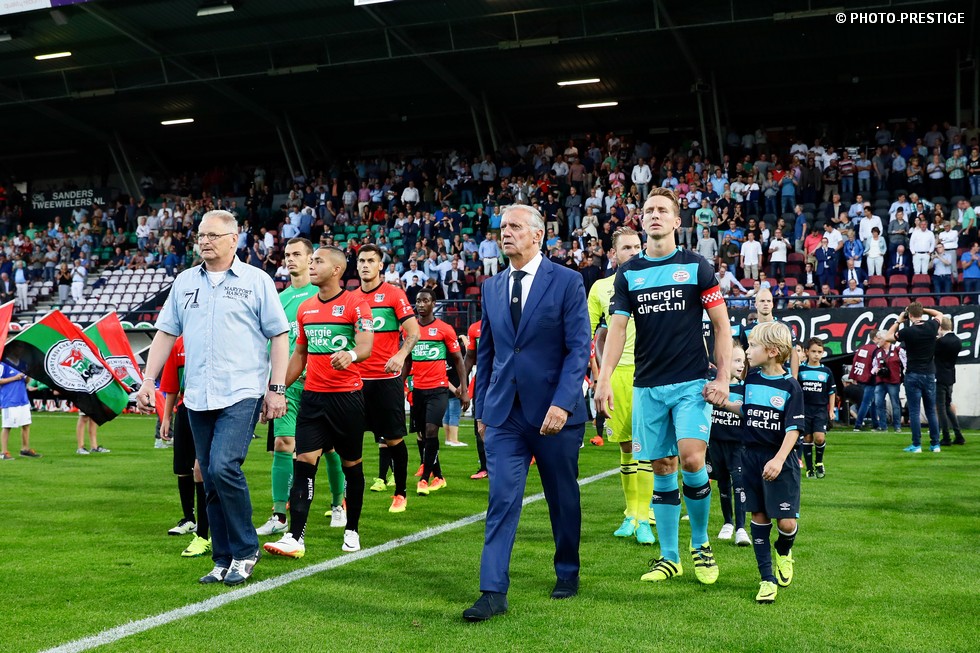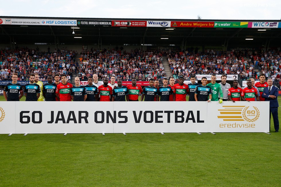 In de speelronde waarin werd gevierd dat de Eredivisie 60 jaar bestaat, had PSV geen kind aan N.E.C. (0-4) en evenaarde het een record uit het verleden. Een fotoverslag.