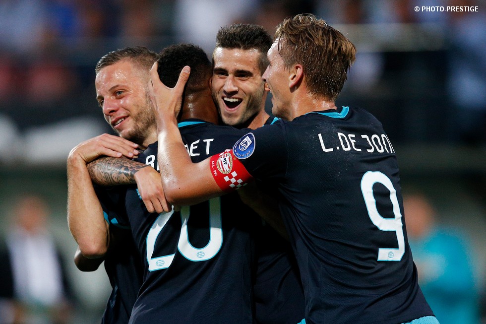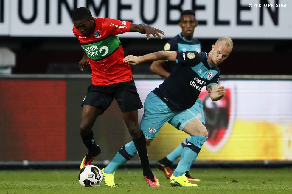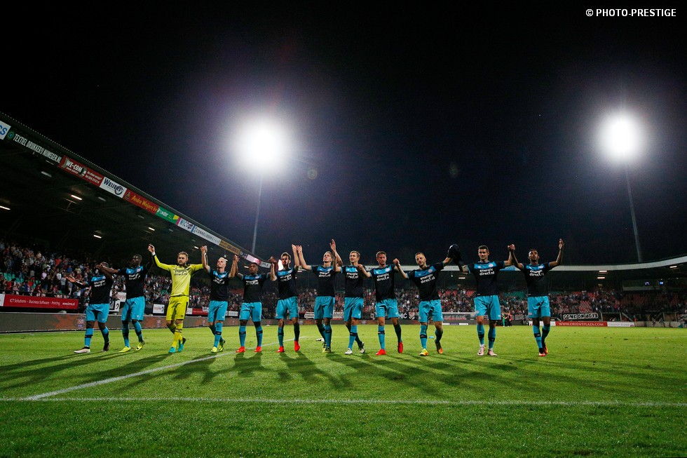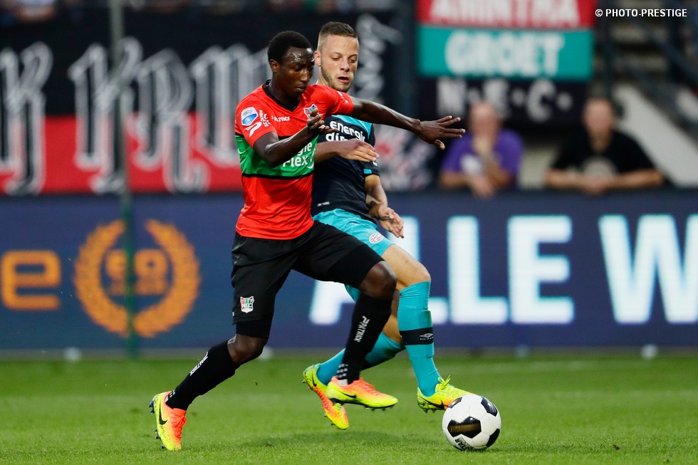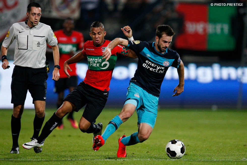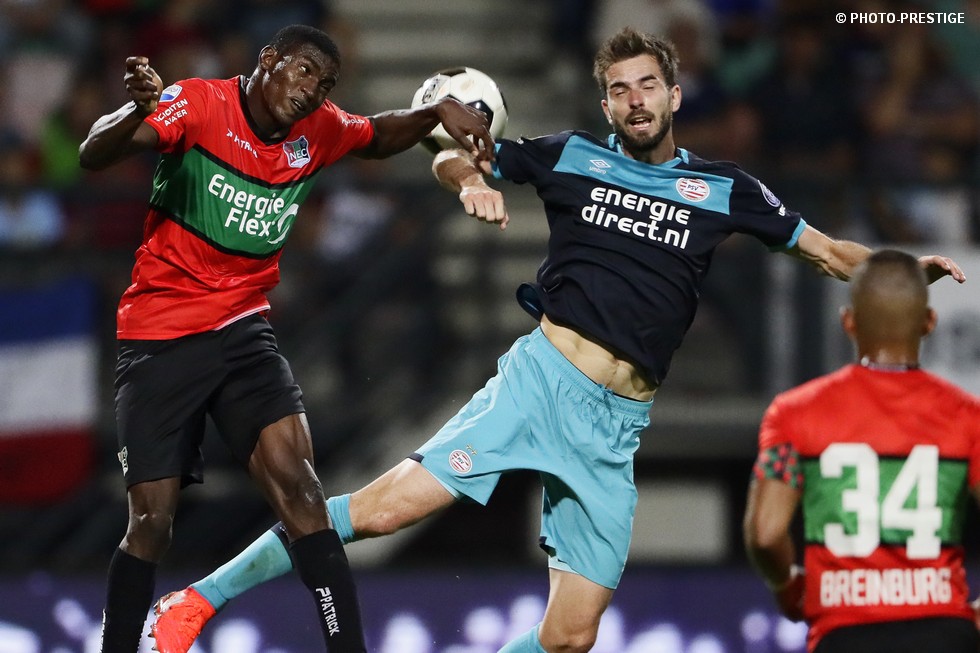 In de speelronde waarin werd gevierd dat de Eredivisie 60 jaar bestaat, had PSV geen kind aan N.E.C. (0-4) en evenaarde het een record uit het verleden. Een fotoverslag.
