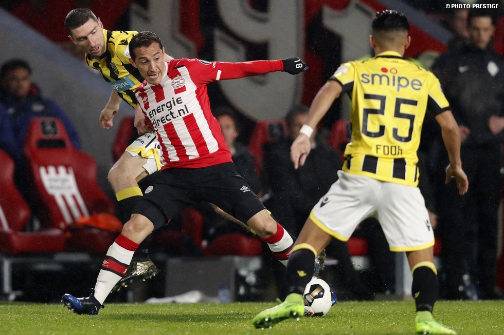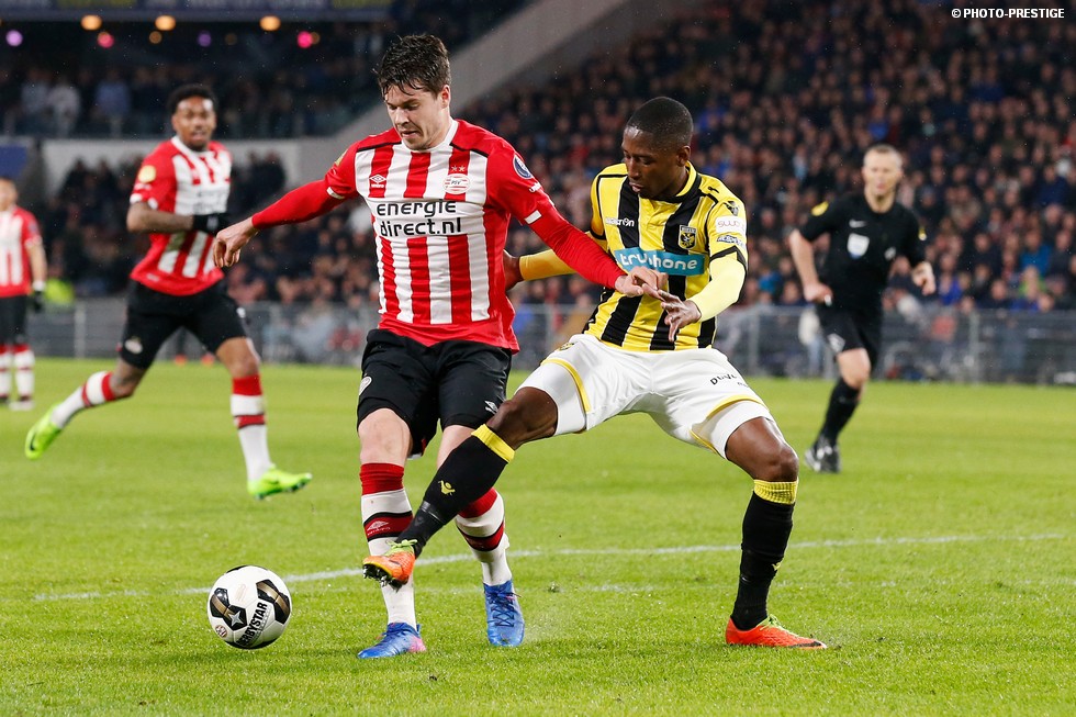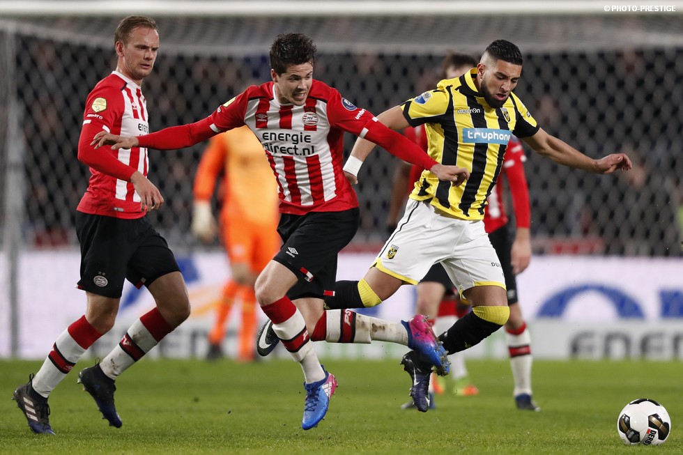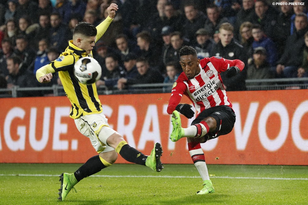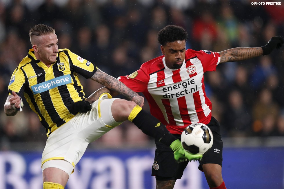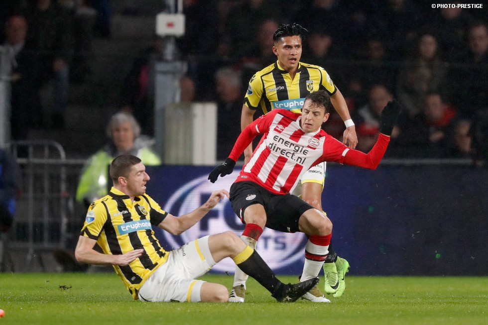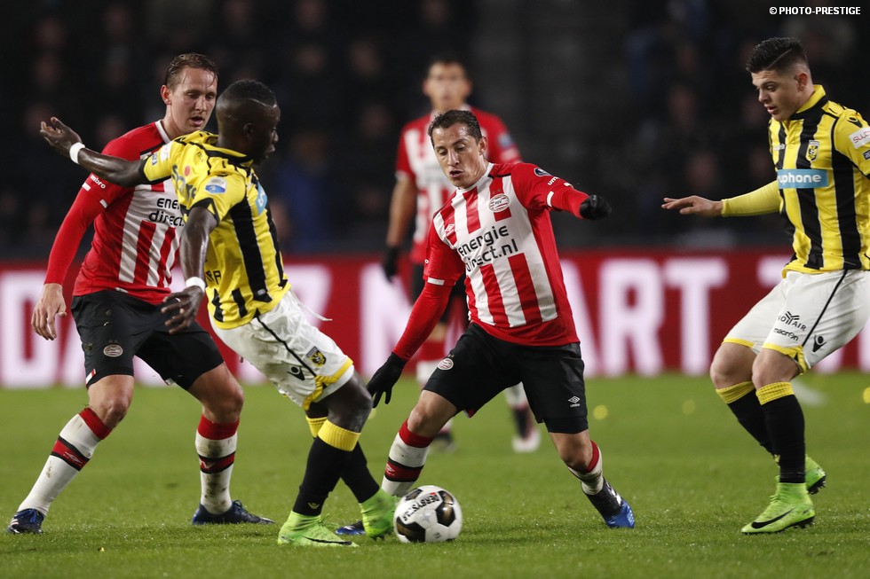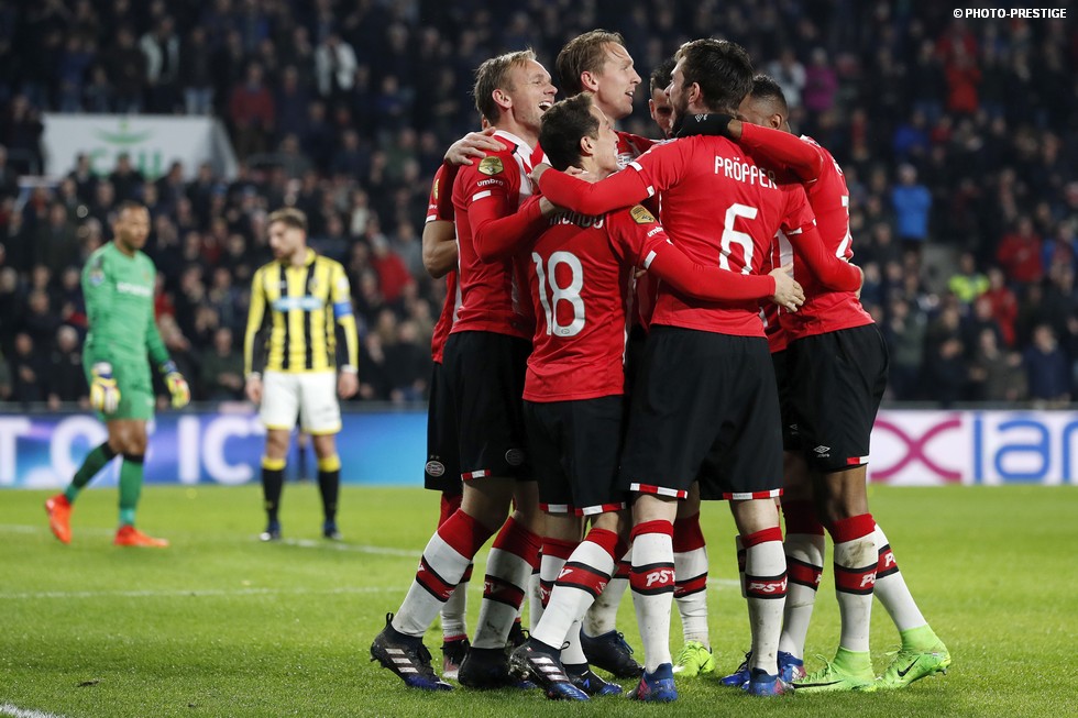 PSV boekte zaterdagavond een verdiende 1-0 zege op Vitesse en bleef daarmee in het spoor van Feyenoord en Ajax. Een fotoverslag.
