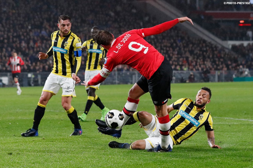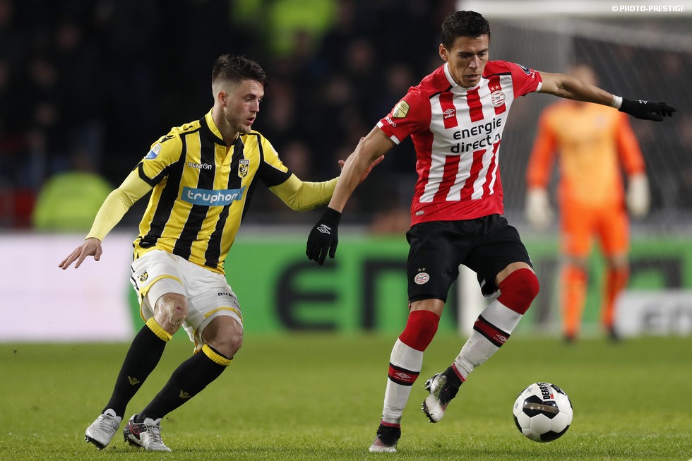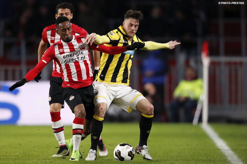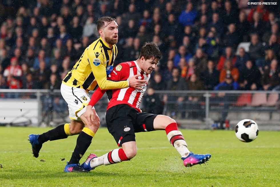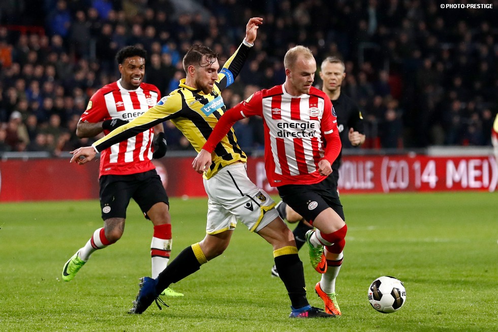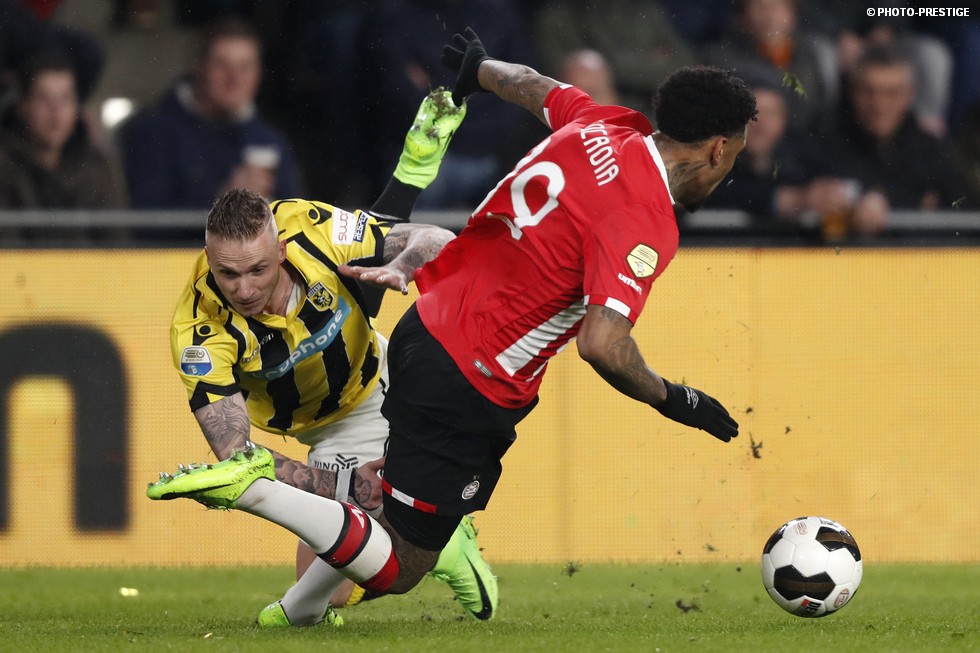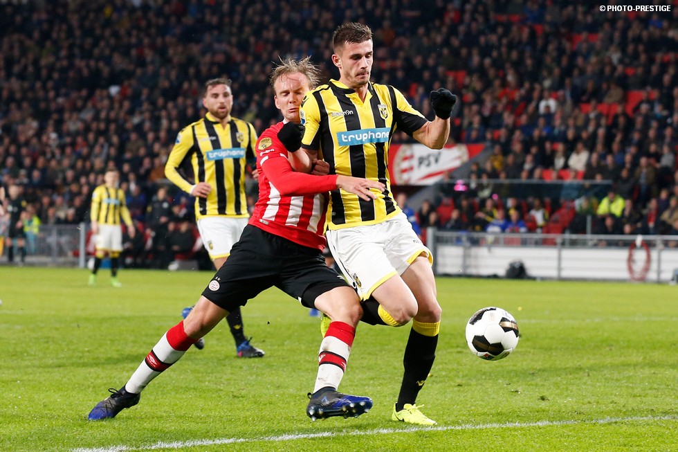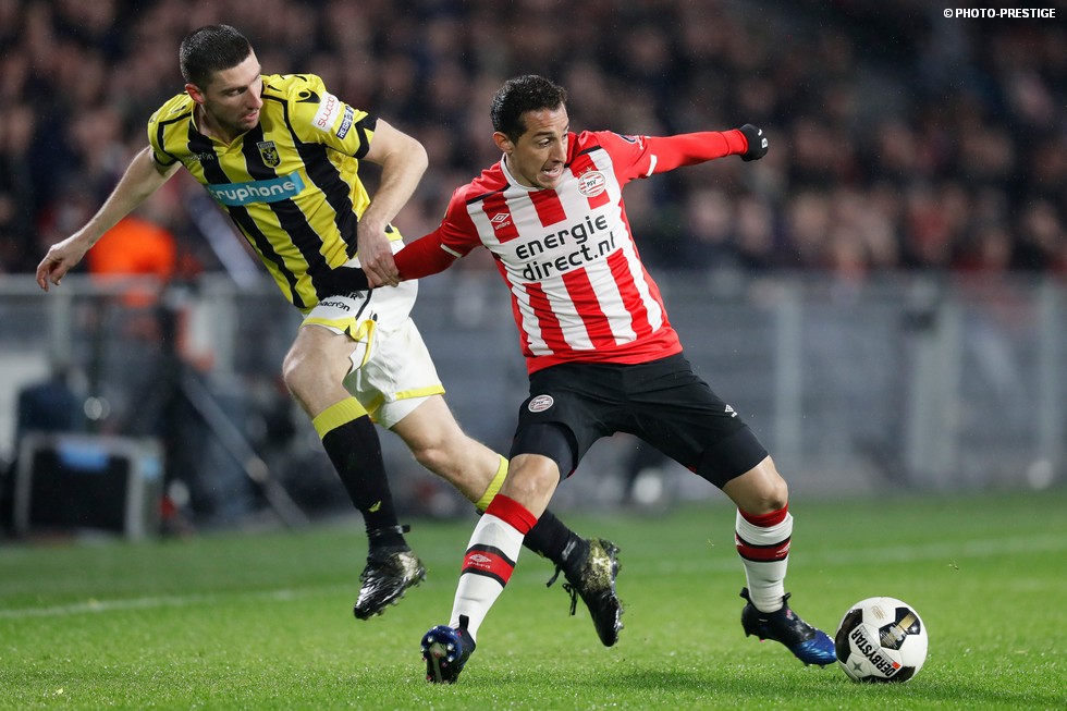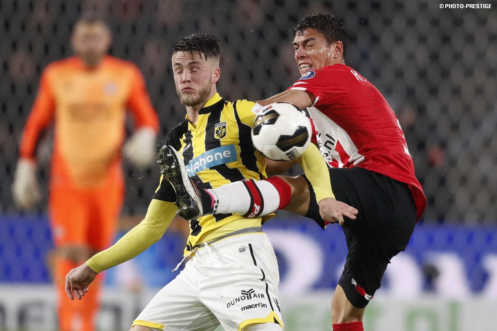 PSV boekte zaterdagavond een verdiende 1-0 zege op Vitesse en bleef daarmee in het spoor van Feyenoord en Ajax. Een fotoverslag.
