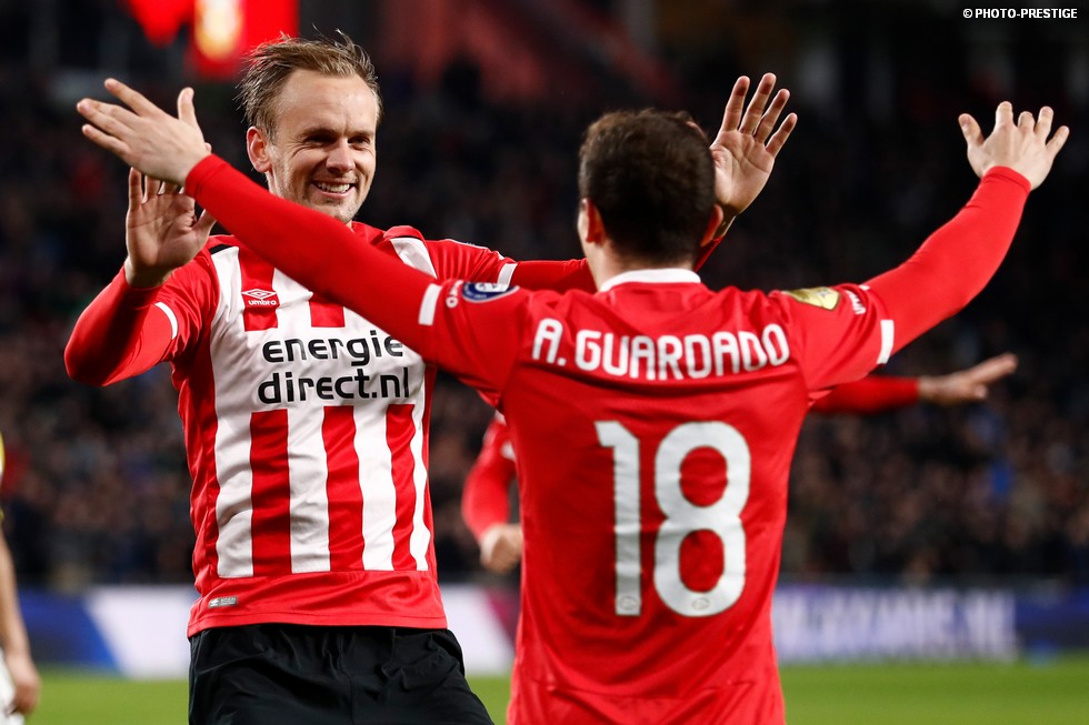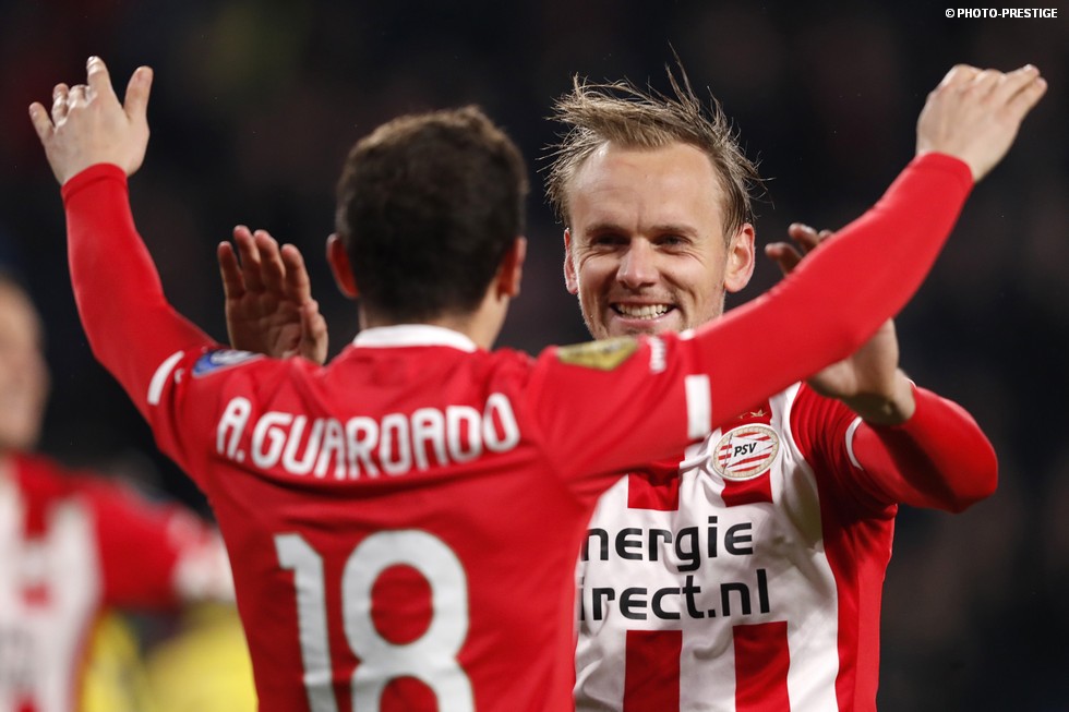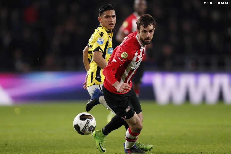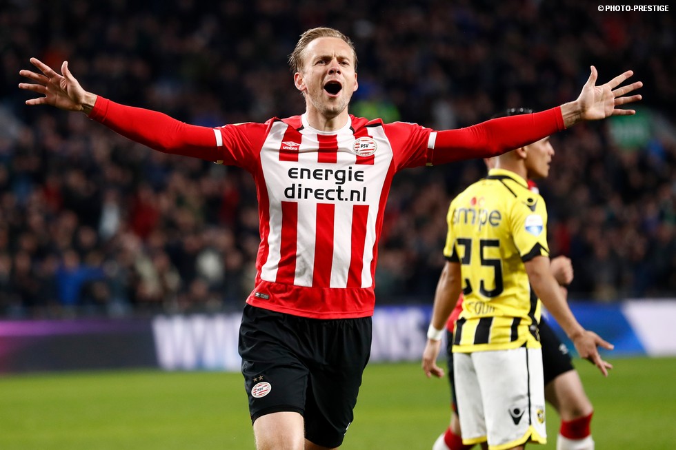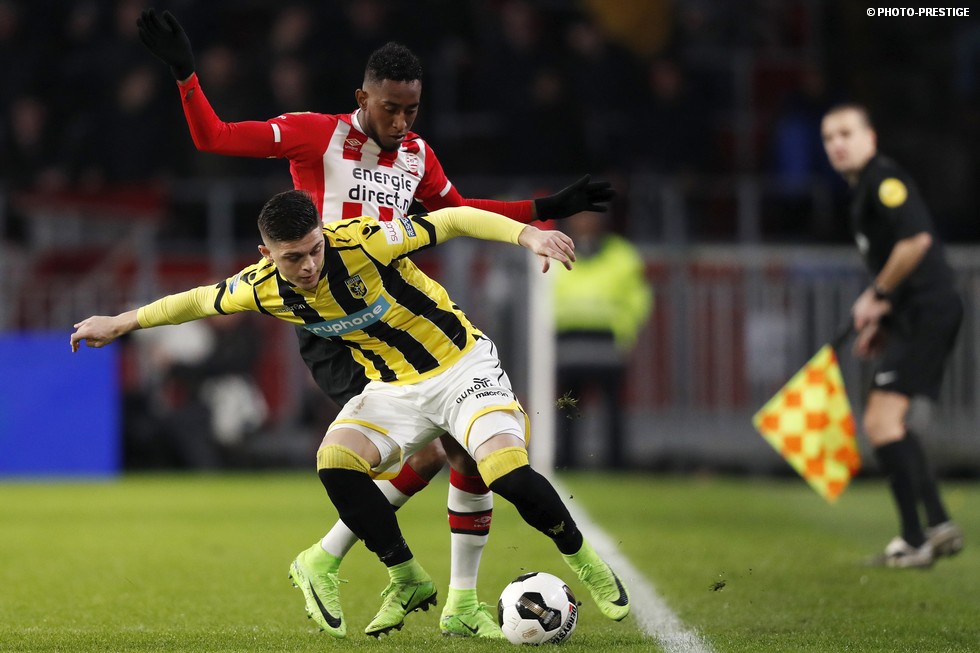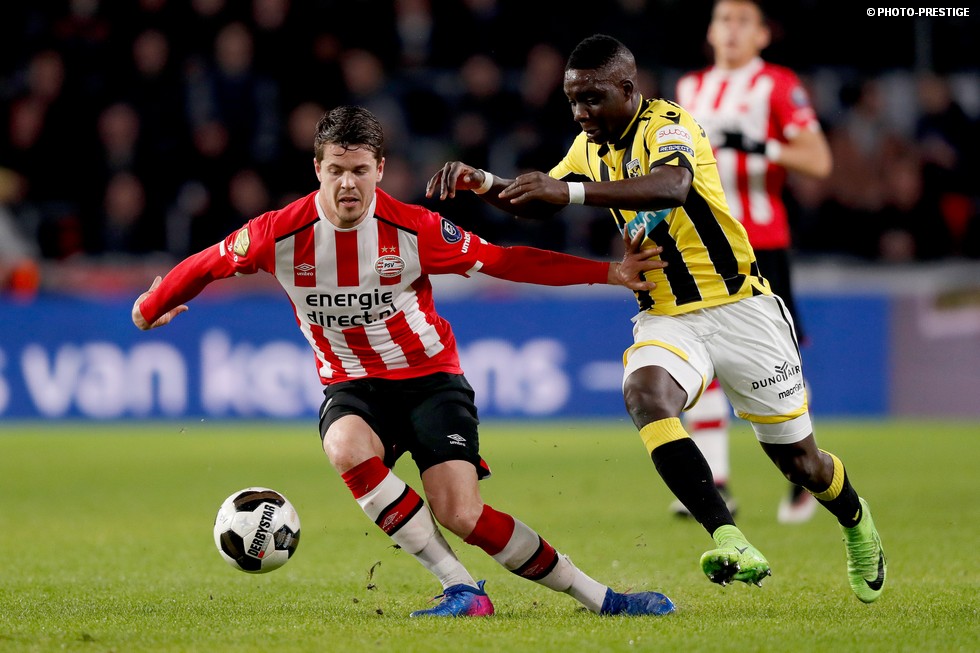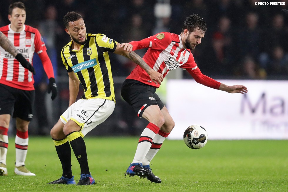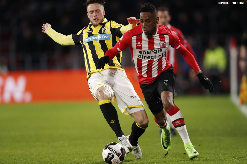 PSV boekte zaterdagavond een verdiende 1-0 zege op Vitesse en bleef daarmee in het spoor van Feyenoord en Ajax. Een fotoverslag.