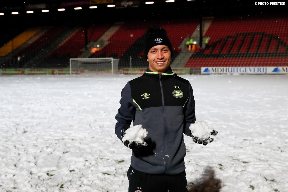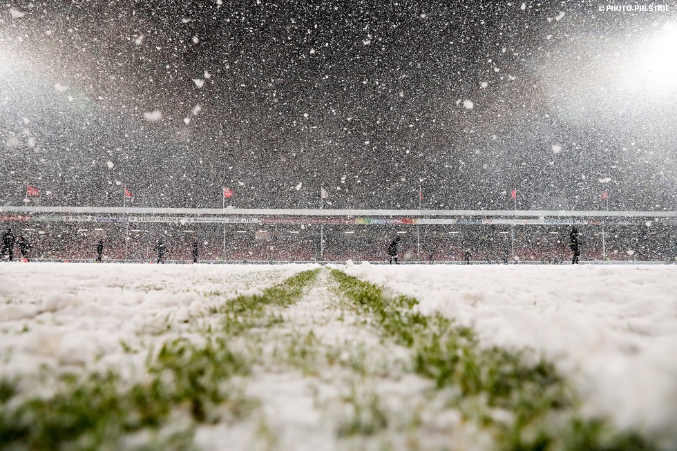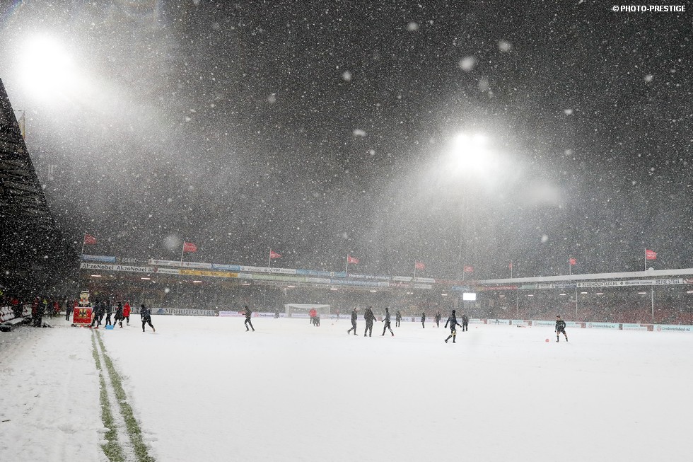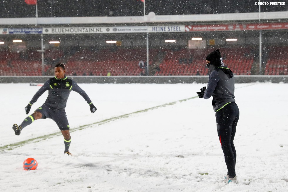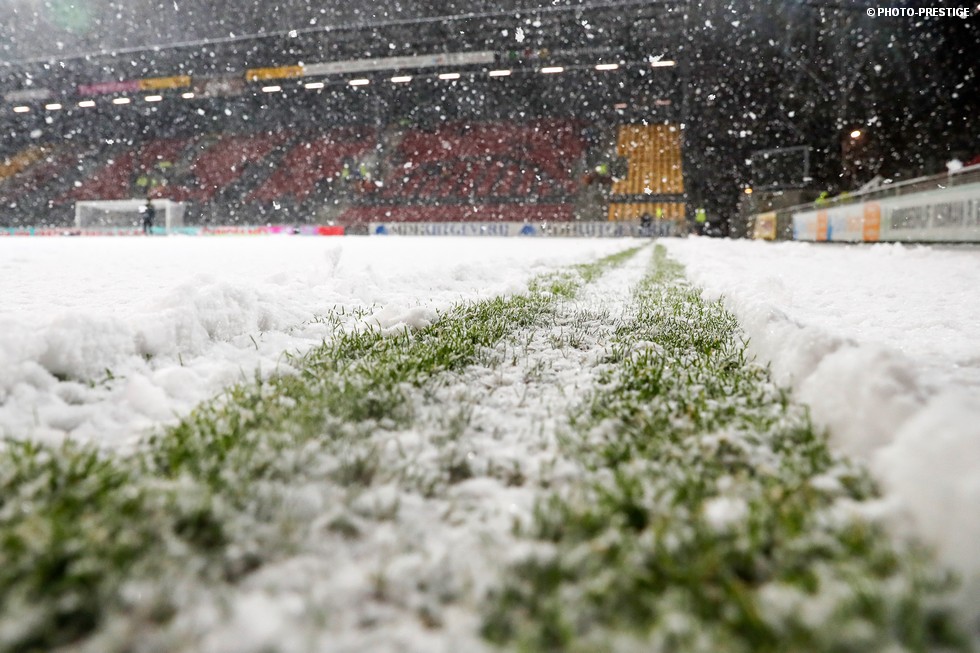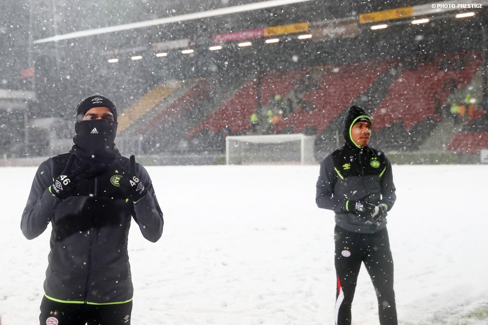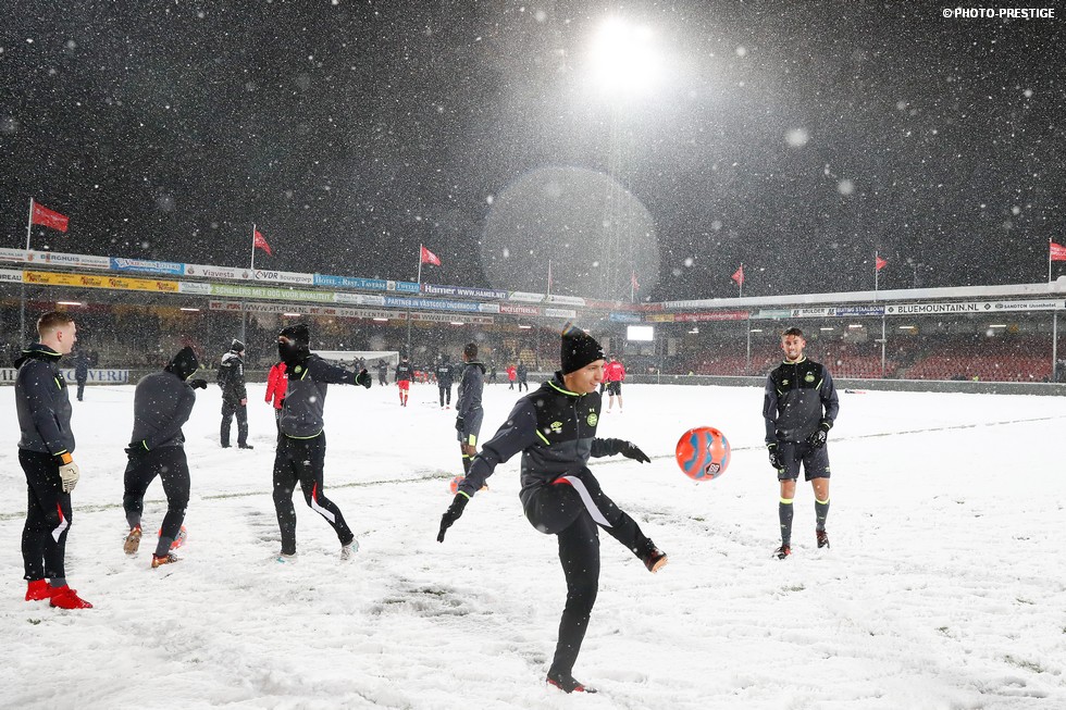 De wedstrijd ging niet door, maar gespeeld werd er toch even in Deventer. Om precies te zijn een sneeuwballengevecht. Zo was Jong PSV toch niet helemaal voor niks naar de Adelaarshorst afgereisd. Een fotoverslag.