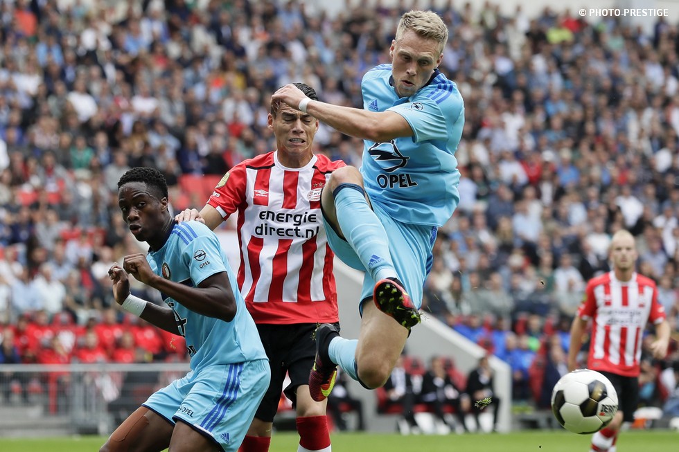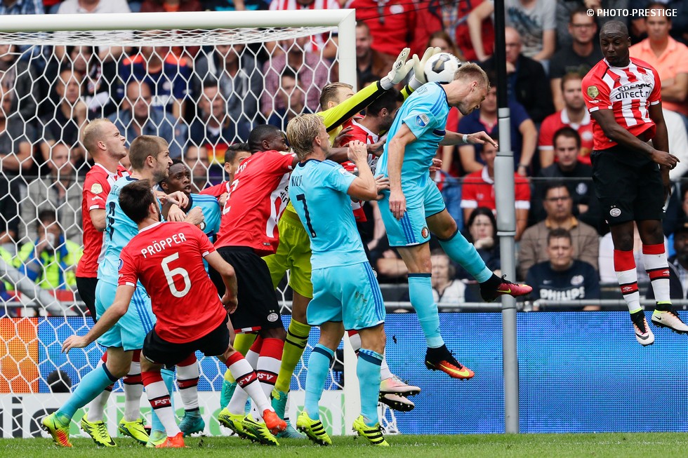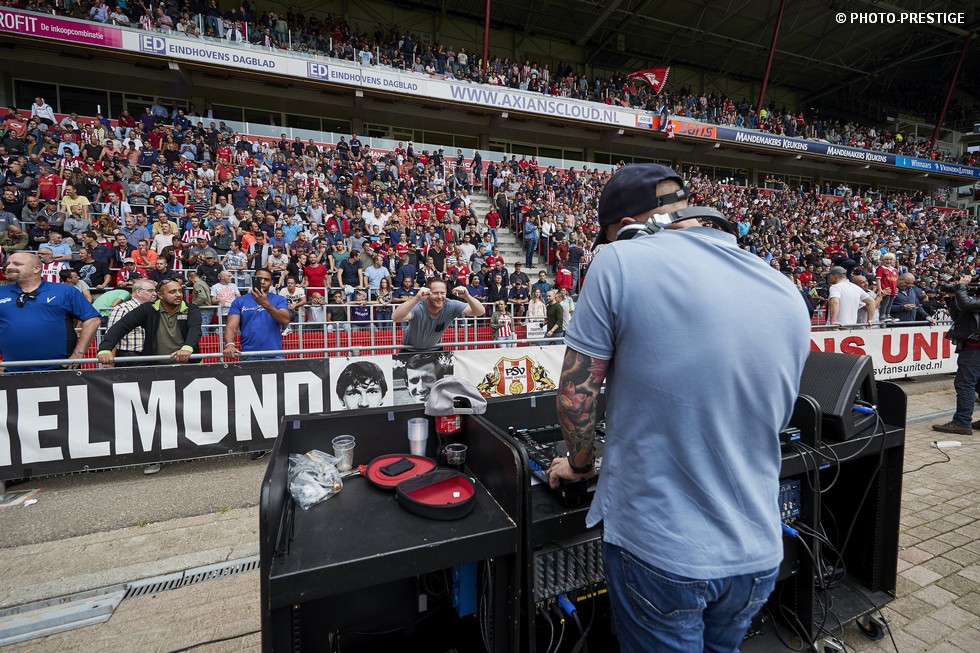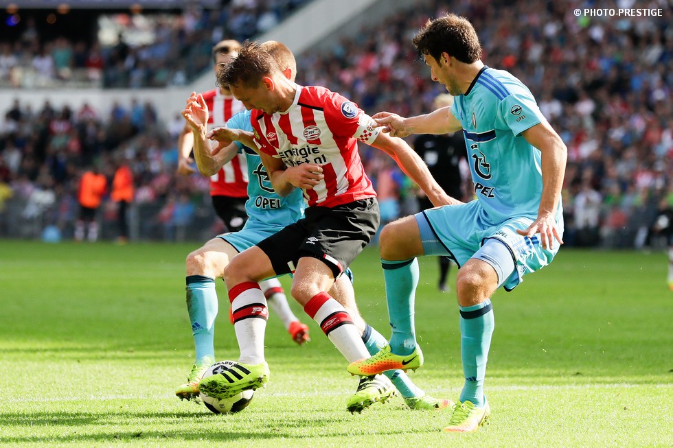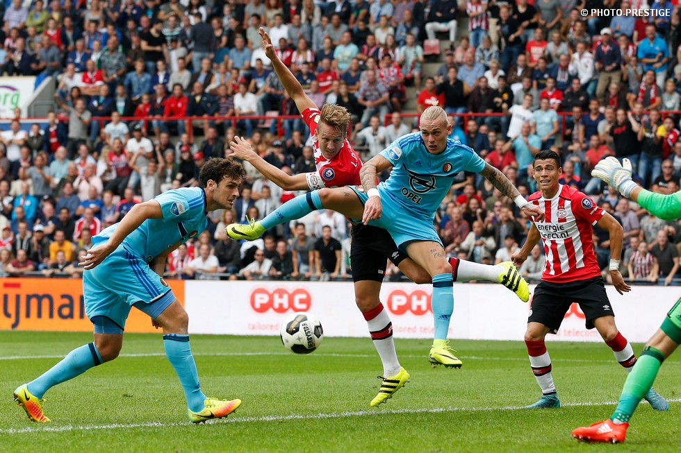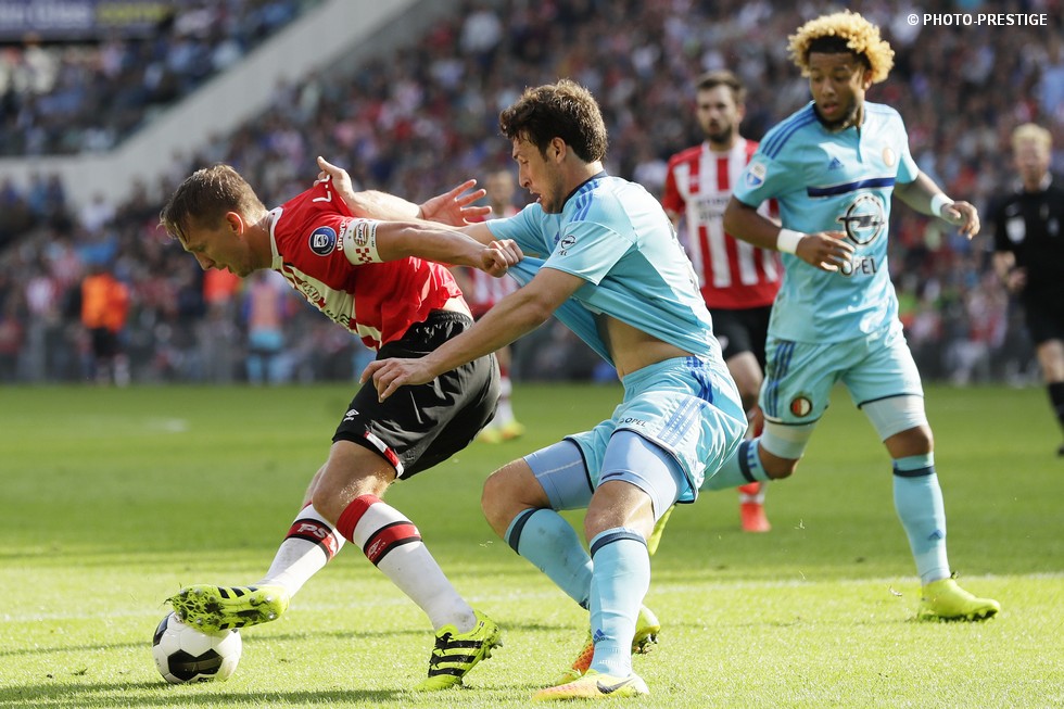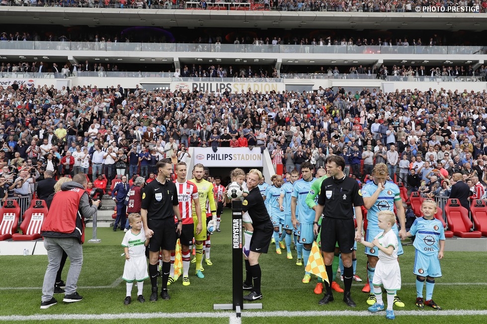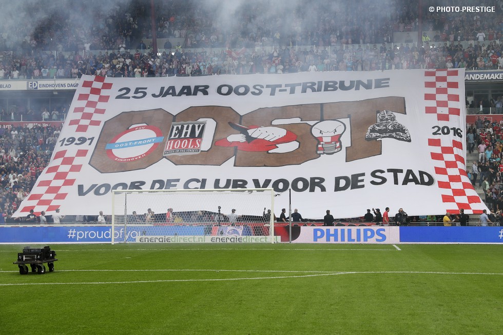 Op de dag dat Eindhoven de bevrijding vierde en de Oost-tribune het 25-jarig bestaan, verloor PSV de strijd om de koppositie. In het Philips Stadion verloor PSV met 1-0 van Feyenoord en zag de achterstand oplopen tot vijf punten. Een fotoverslag.