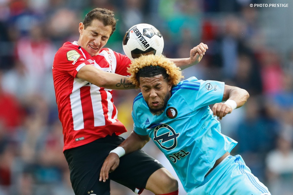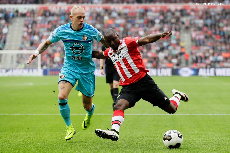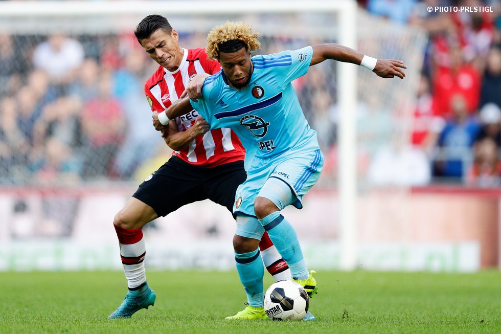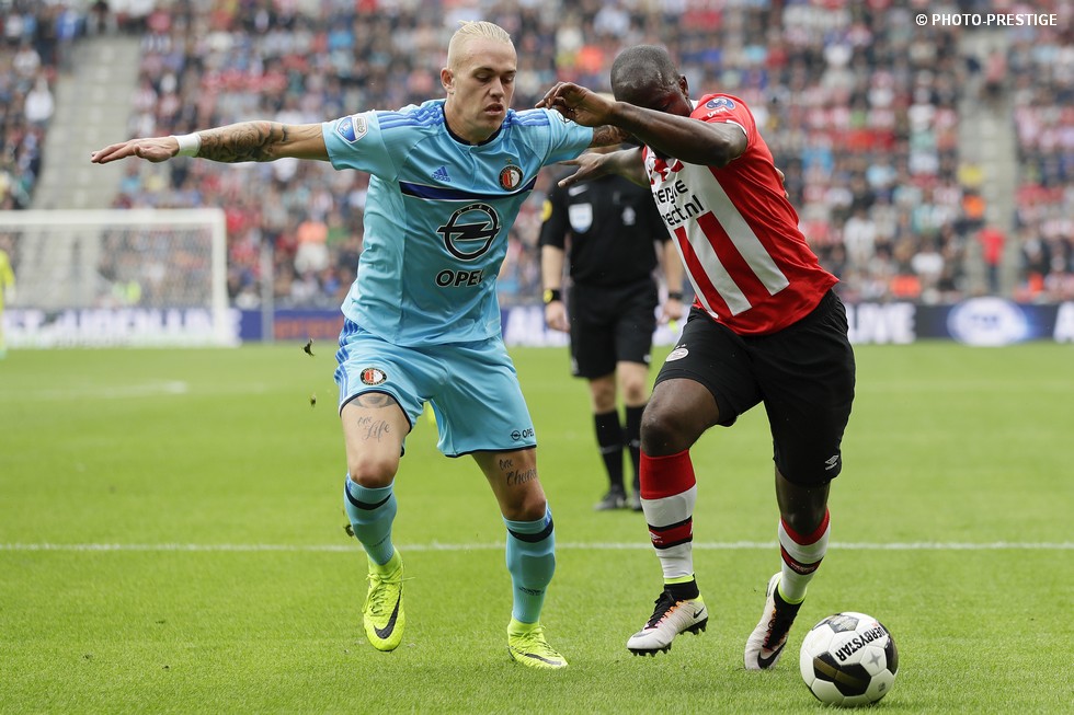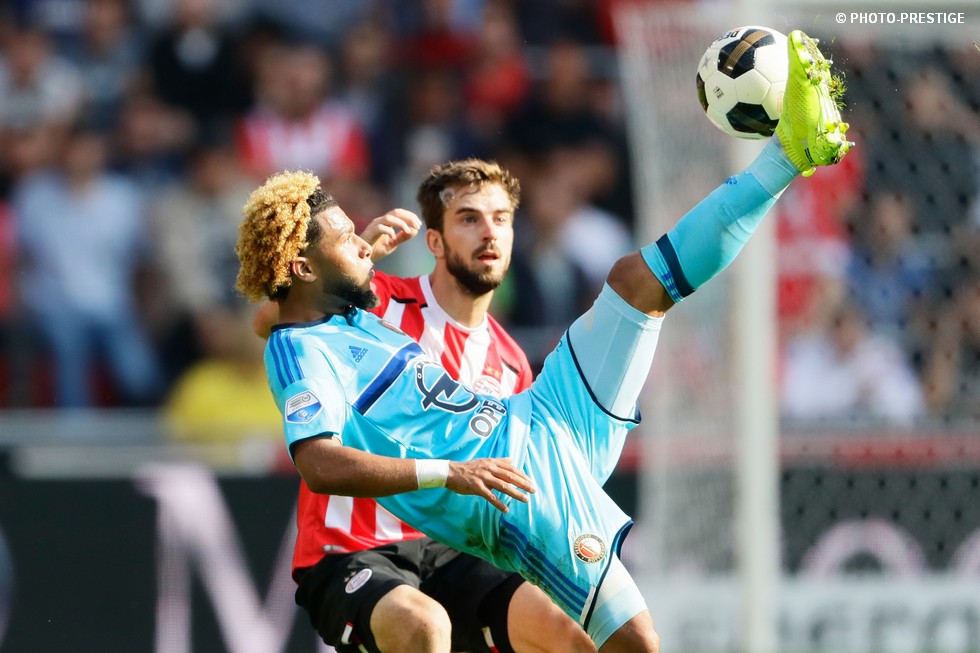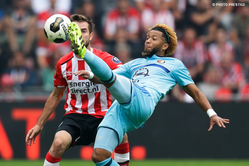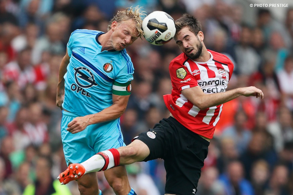 Op de dag dat Eindhoven de bevrijding vierde en de Oost-tribune het 25-jarig bestaan, verloor PSV de strijd om de koppositie. In het Philips Stadion verloor PSV met 1-0 van Feyenoord en zag de achterstand oplopen tot vijf punten. Een fotoverslag.