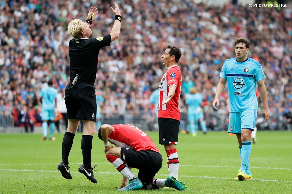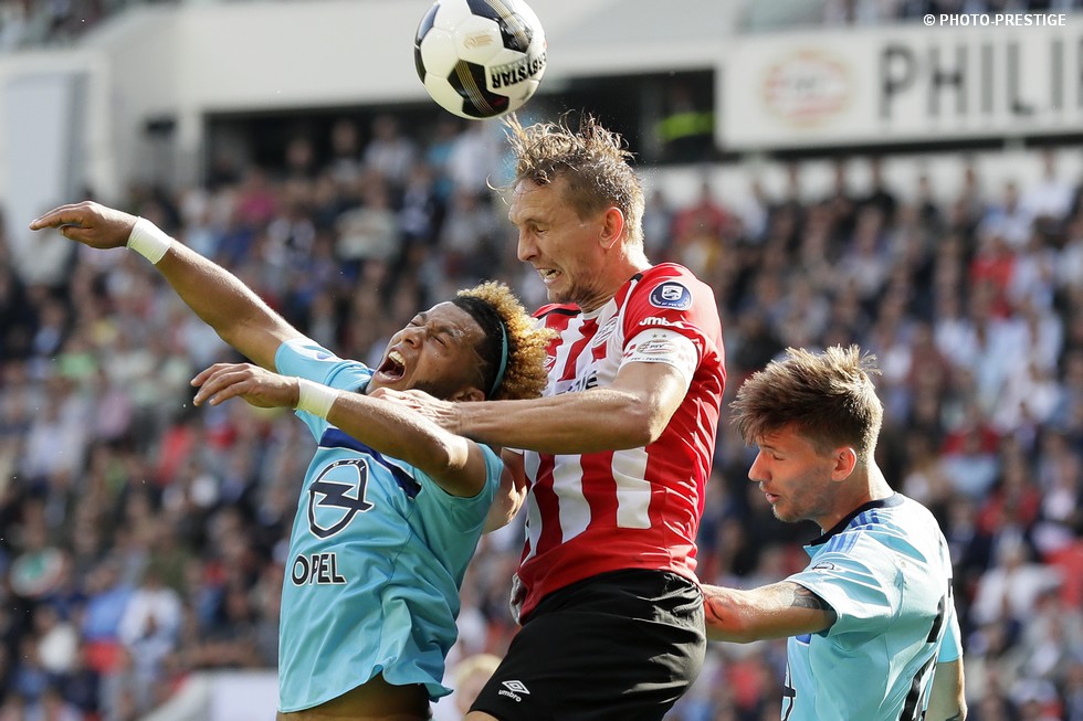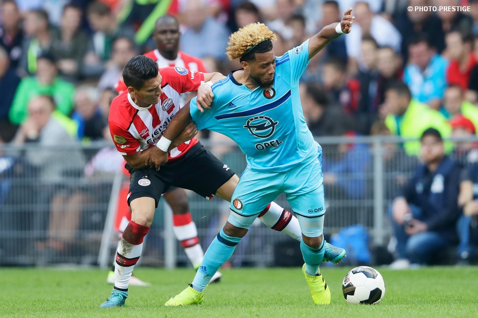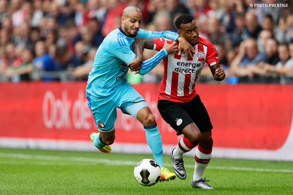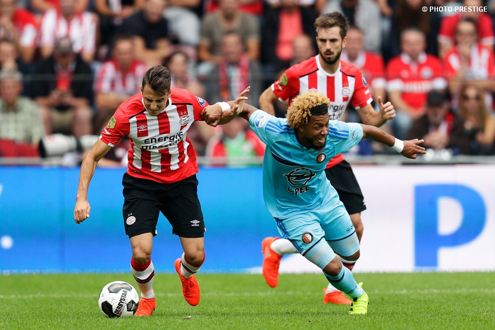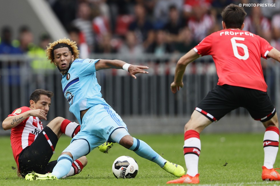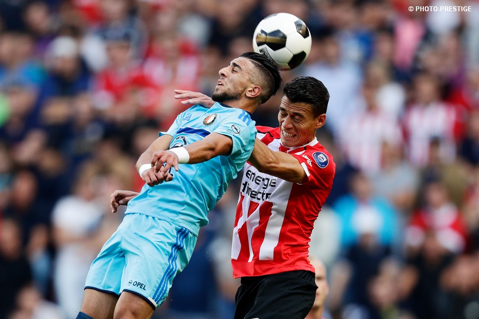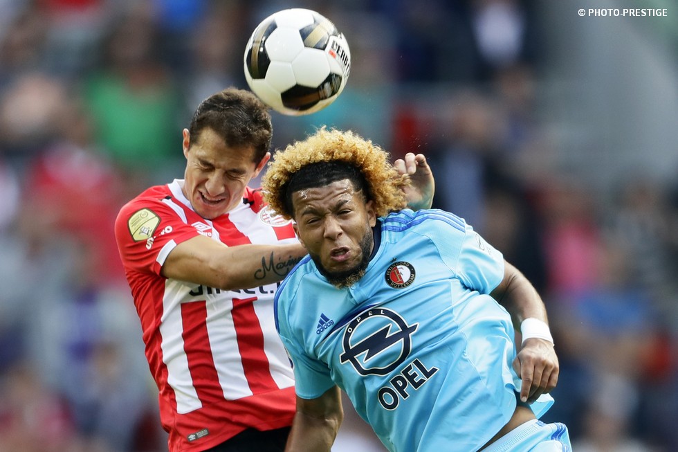 Op de dag dat Eindhoven de bevrijding vierde en de Oost-tribune het 25-jarig bestaan, verloor PSV de strijd om de koppositie. In het Philips Stadion verloor PSV met 1-0 van Feyenoord en zag de achterstand oplopen tot vijf punten. Een fotoverslag.