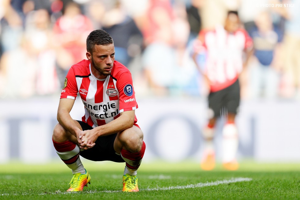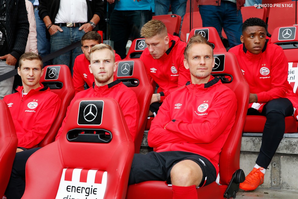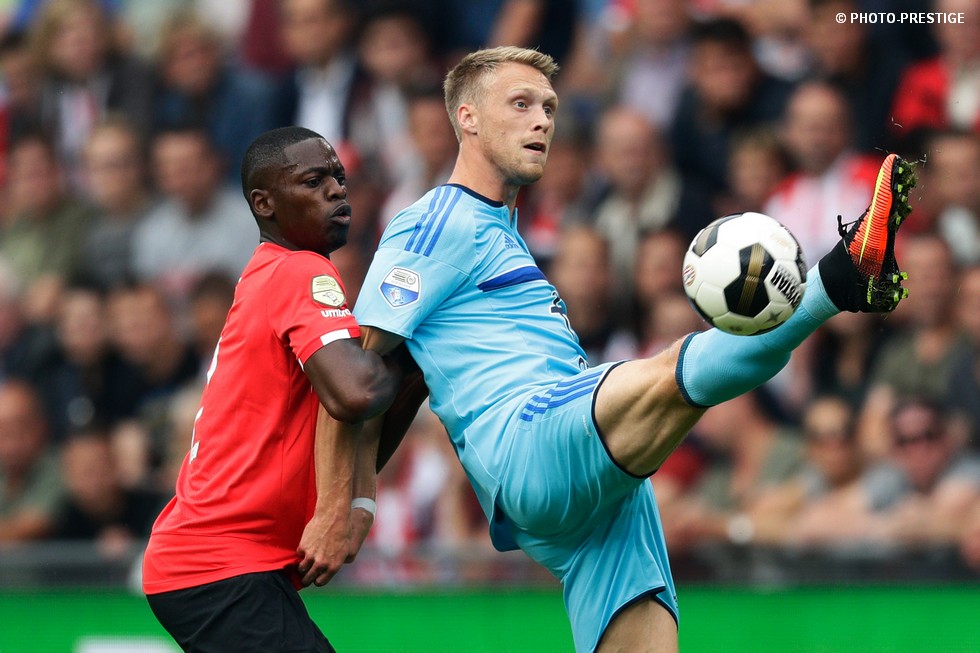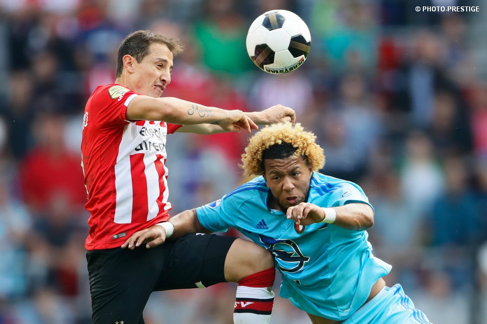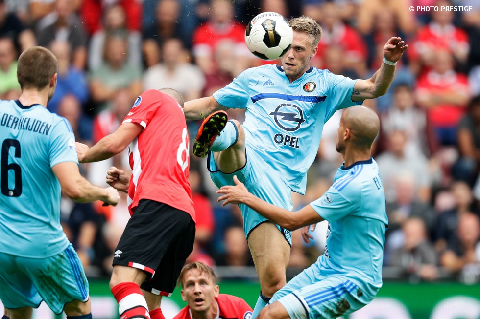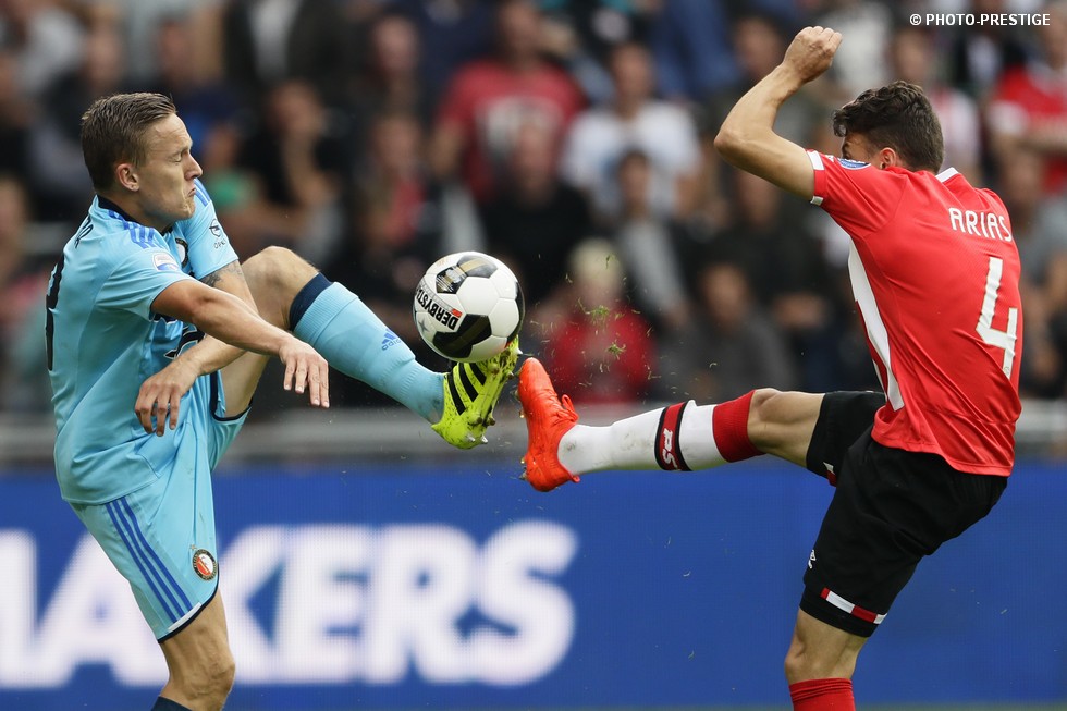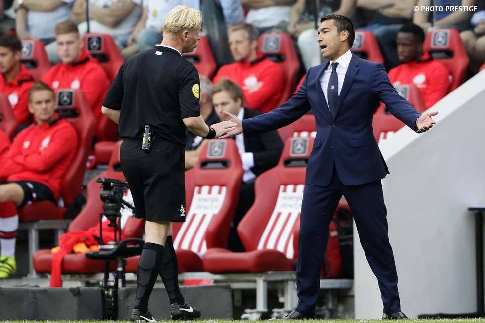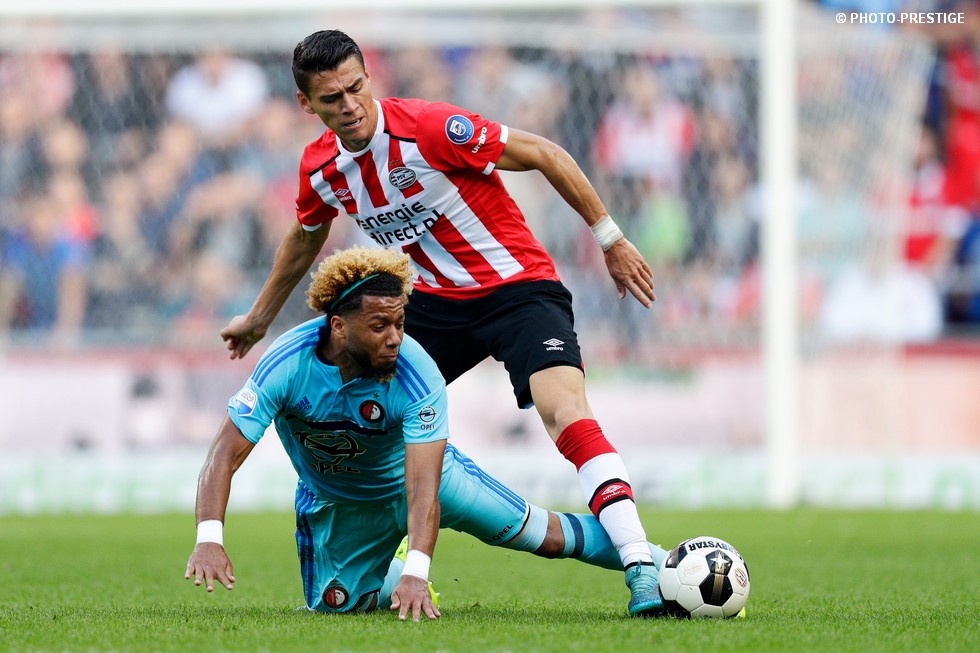 Op de dag dat Eindhoven de bevrijding vierde en de Oost-tribune het 25-jarig bestaan, verloor PSV de strijd om de koppositie. In het Philips Stadion verloor PSV met 1-0 van Feyenoord en zag de achterstand oplopen tot vijf punten. Een fotoverslag.