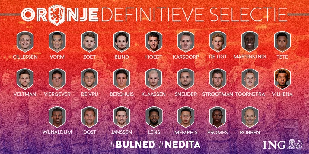 Bovenstaand drietal zat nog wel in de voorselectie van het Nederlands Elftal voor het WK-kwalificatieduel met Bulgarije van 25 maart en de oefeninterland tegen Italië van 28 maart, maar heeft het niet tot de definitieve selectie geschopt. De volledige selectie vind je hieronder.