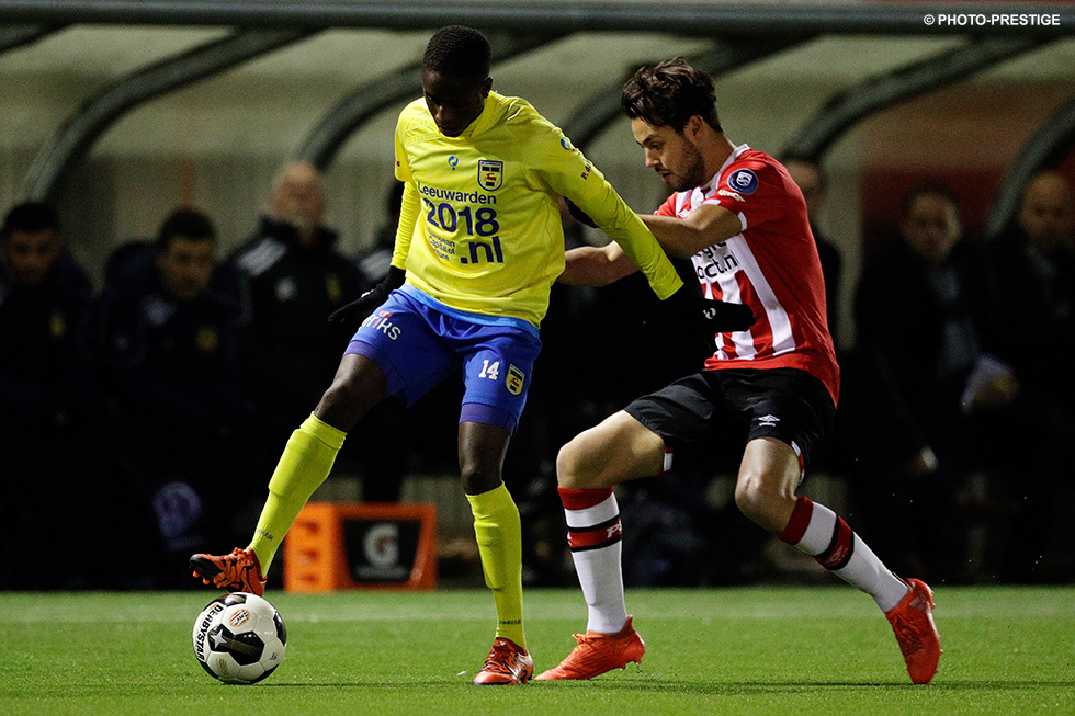 De kleine vijfhonderd toeschouwers hadden nog maar net hun plekje op de hoofdtribune van De Herdgang gevonden, of Jong PSV keek al tegen een achterstand aan. Na 56 seconden zette Van de Streek SC Cambuur namelijk op voorsprong door de bal van dichtbij achter Jurjus te plaatsen. Een treffer waar Jong PSV lange tijd wat van slag leek. Pas in de slotfase van de eerste helft leek het team zich te kunnen herpakken en dat leidde vrijwel direct tot grote mogelijkheden. Onder meer via Lammers en Rosario. Allebei kregen ze kort voor rust een vrije doortocht naar het doel, maar tweemaal bleek doelman Zeinstra hen de baas.