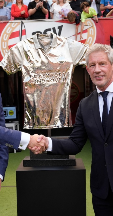 PSV heeft van official partner en mouwsponsor TOTO letterlijk een schitterend kampioenscadeau gekregen. Arjan Blok – CEO van Nederlandse Loterij, waar TOTO onderdeel van is – overhandigde voor aanvang van de wedstrijd PSV-RKC Waalwijk een verzilverd wedstrijdshirt aan Algemeen Directeur Marcel Brands van PSV. Het thuisshirt van het kampioensseizoen 2023-2024 is in zilver gegoten en op een zuil geplaatst. PSV plaatst het museumstuk tijdelijk bij de hoofdingang van het Philips Stadion.