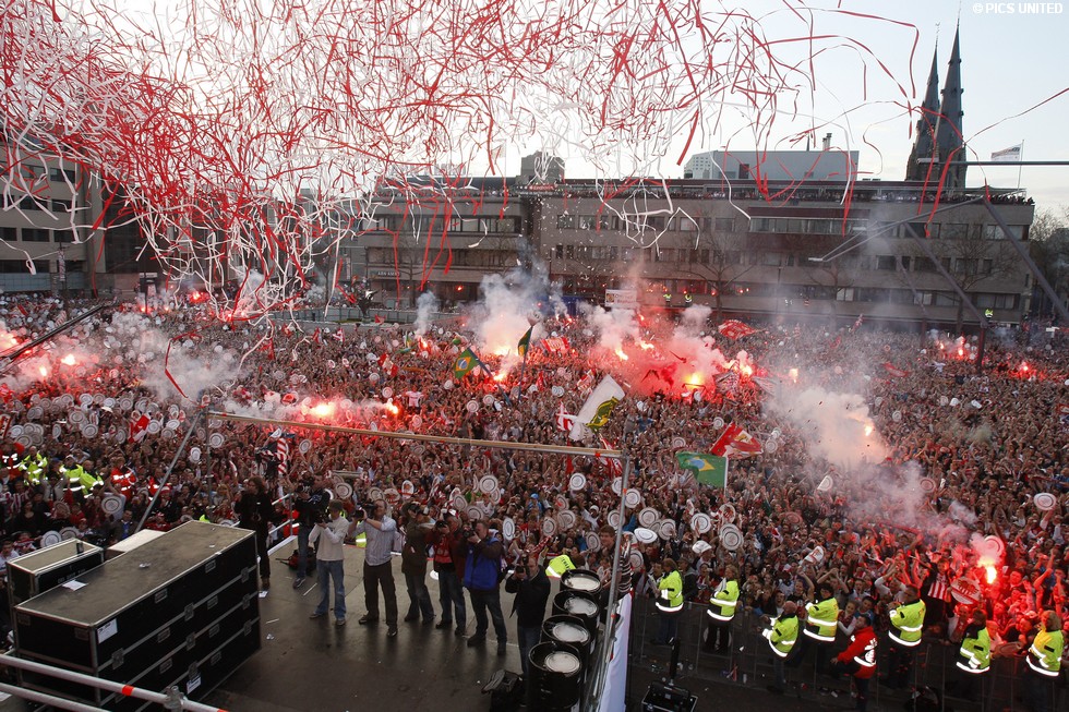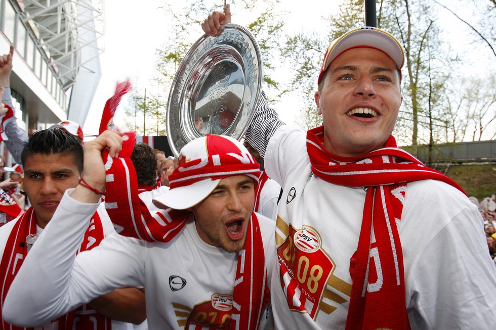 PSV behaalde in haar ruim 101 jaar van bestaan al 21 landskampioenschappen. Kijk hier naar enkele foto’s van titels door de jaren heen!