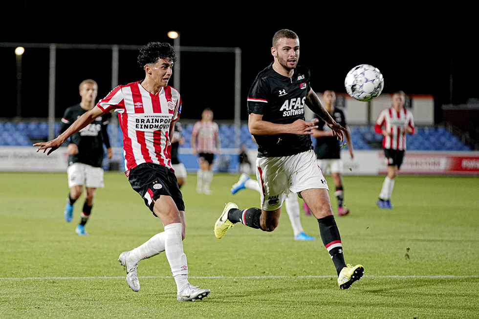 De ploeg van Uneken kreeg vrijdagavond al snel twee tegengoals te verwerken: Reijnders zette Jong AZ al na vier minuten op een voorsprong. Niet veel later viel ook de 0-2. AZ-aanvaller Kunst vlamde de bal van afstand in de kruising. De bezoekers kregen kans na kans in het eerste kwartier, Unnerstall en de paal hielden Jong PSV op de been. Na de openingsfase kreeg Jong PSV meer grip op het duel, maar uitgespeelde kansen creƫerde het amper. Vlak voor rust belandde een kopbal van Soulas op de lat. Ook de rebound ging er niet in, het schot van Catic werd gepakt door doelman De Boer.
