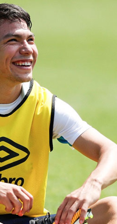 Lozano verscheen maandagochtend voor het eerst sinds zijn WK-deelname met Mexico op het trainingsveld. Samen met Mark van Bommel betrad hij het veld aan de profzijde van De Herdgang.