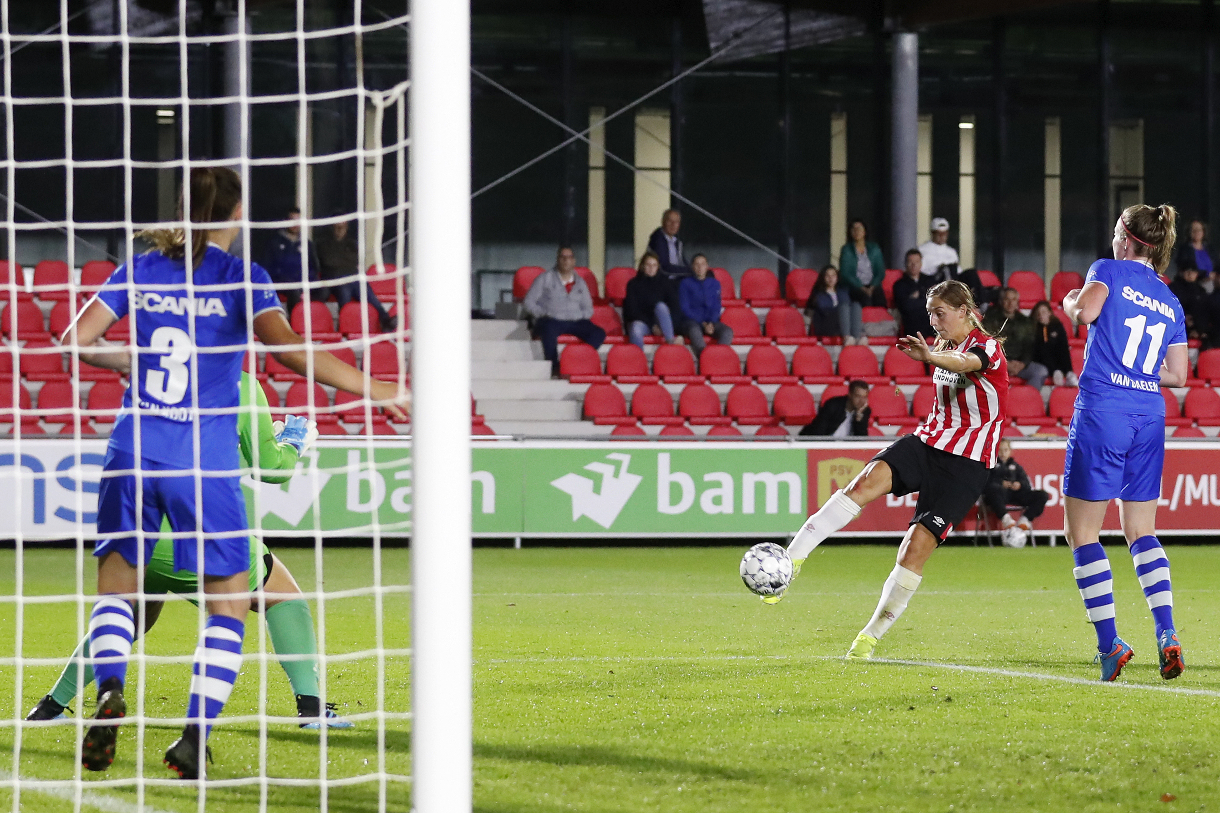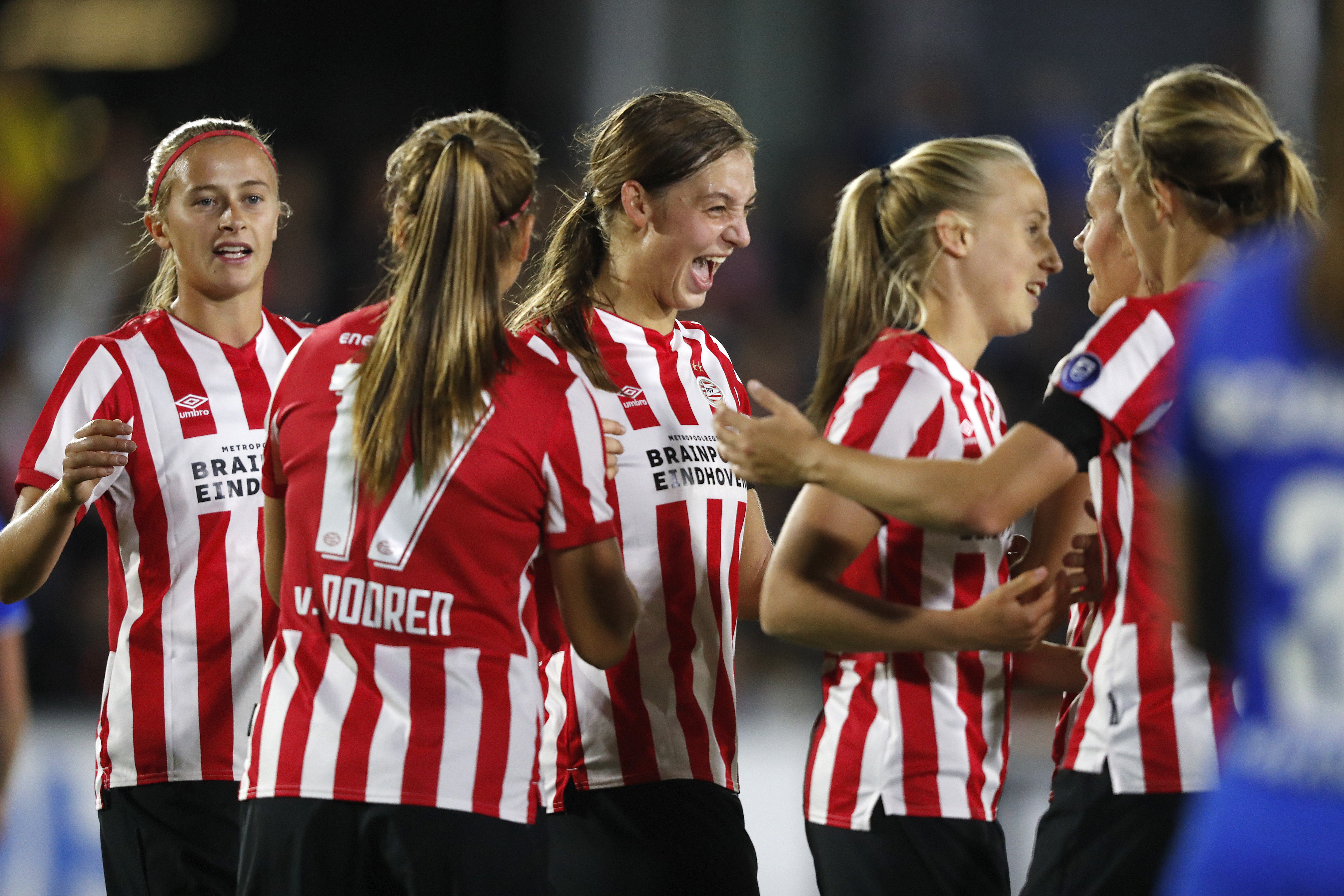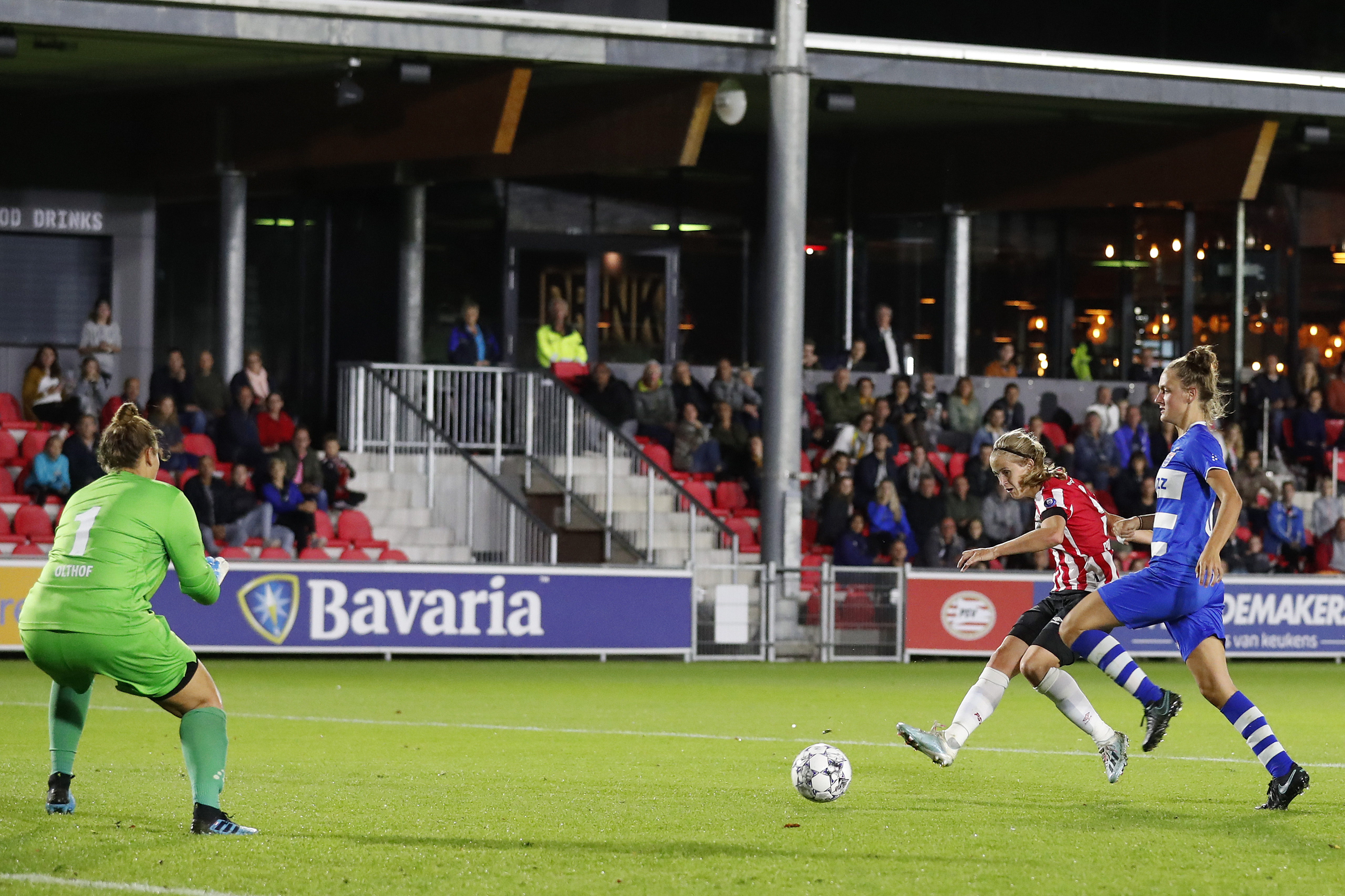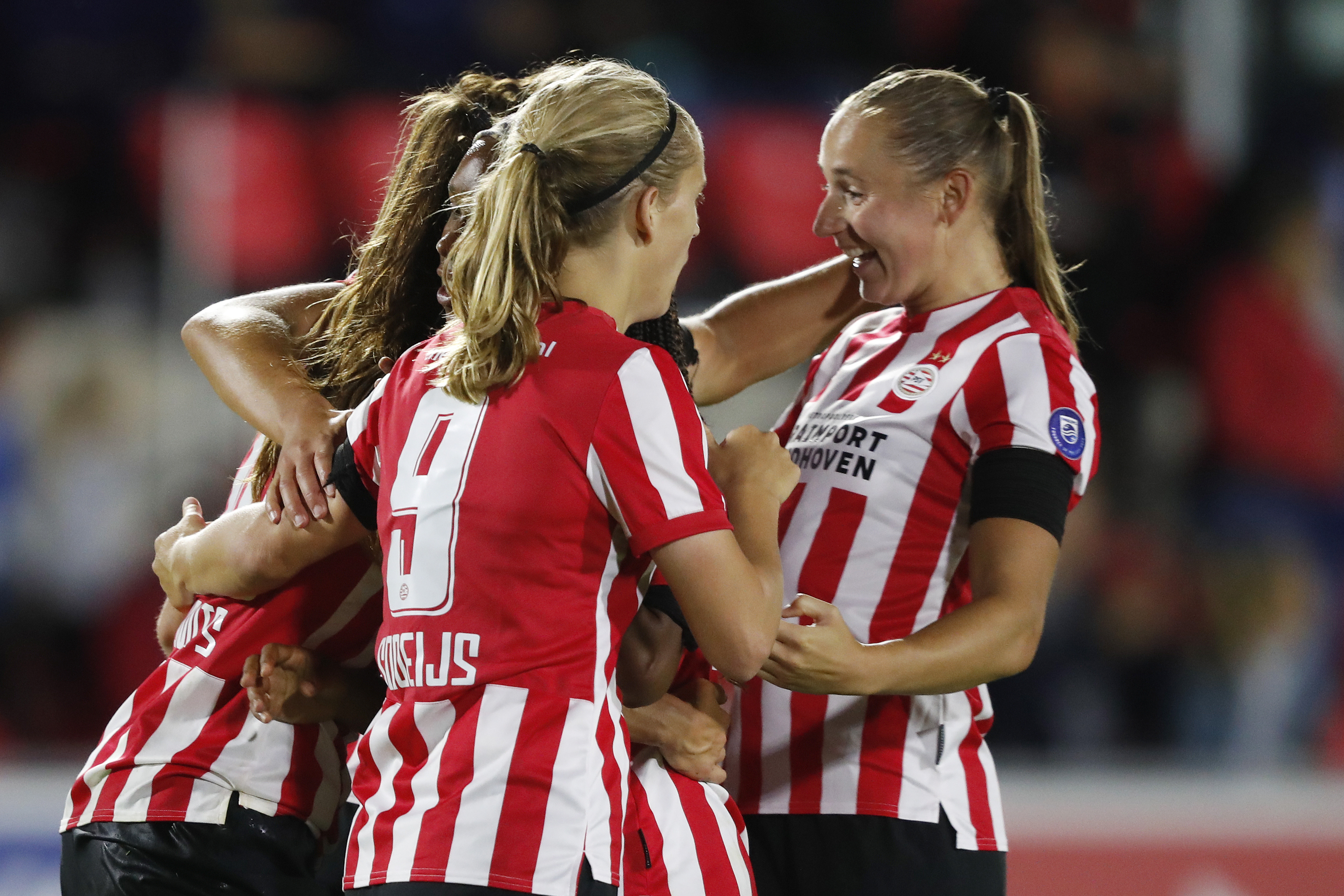 De mooiste beelden van de eerste thuiswedstrijd in de competitie van PSV Vrouwen. De ploeg won ruim van PEC Zwolle (4-0).