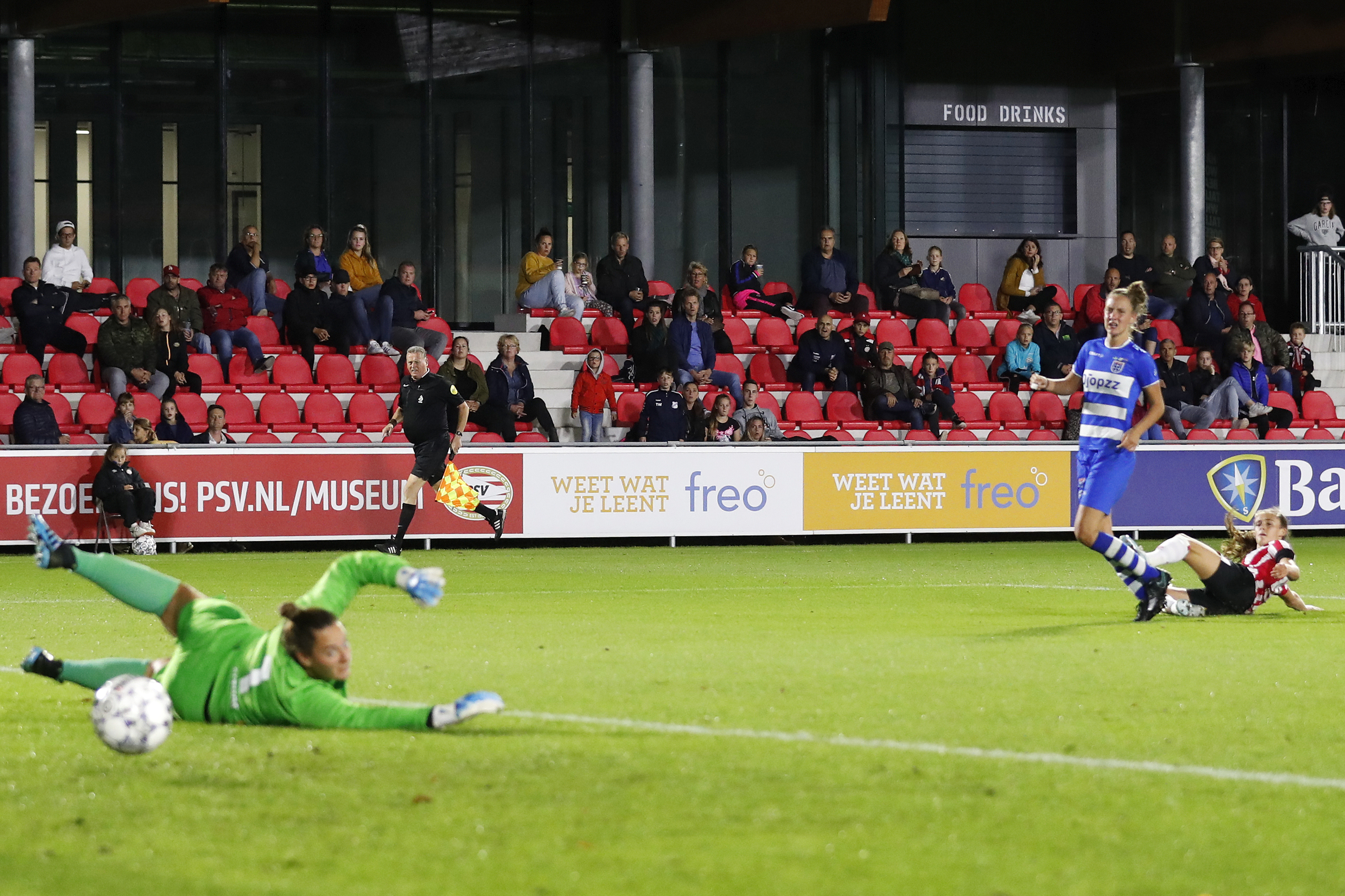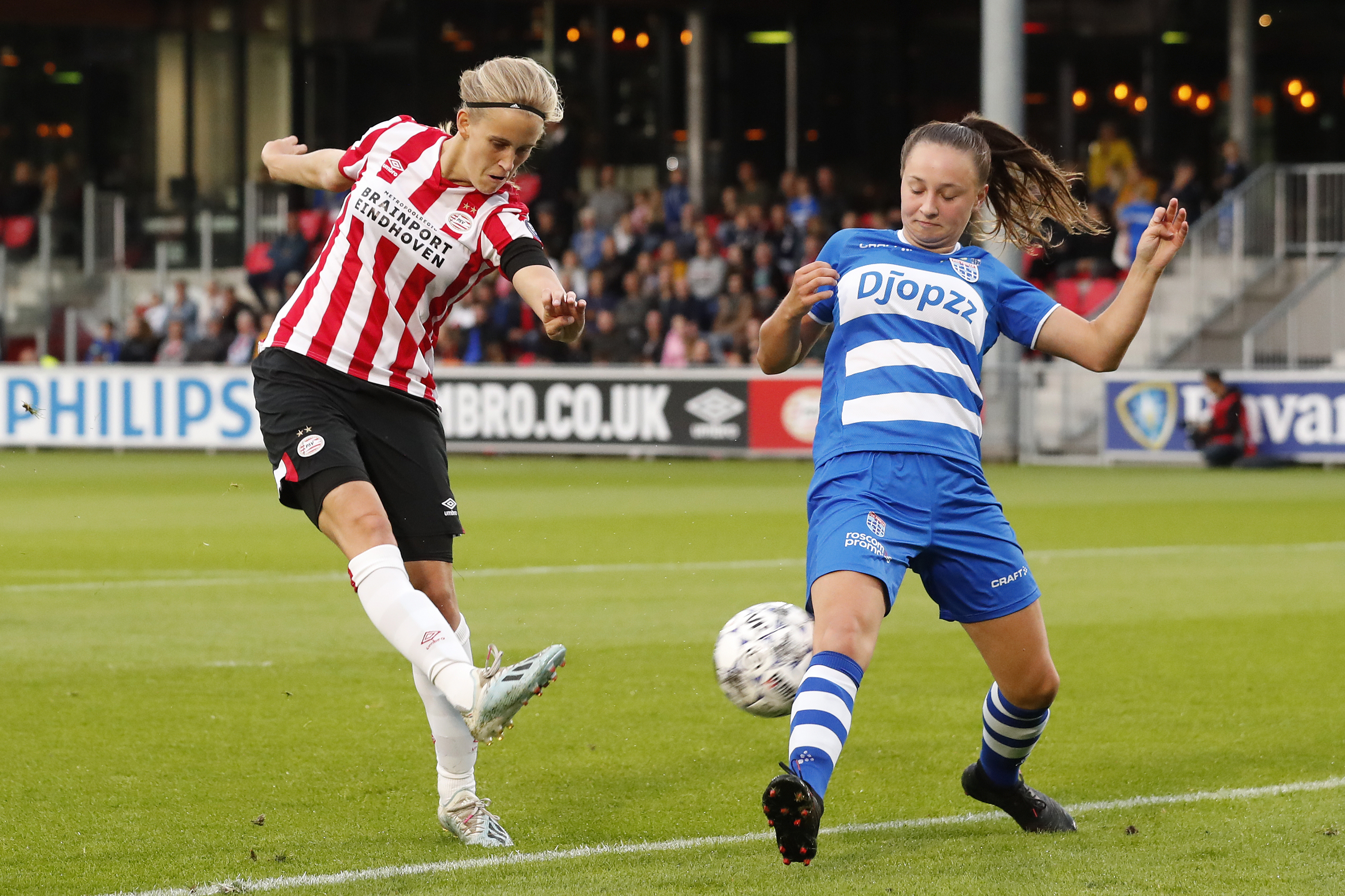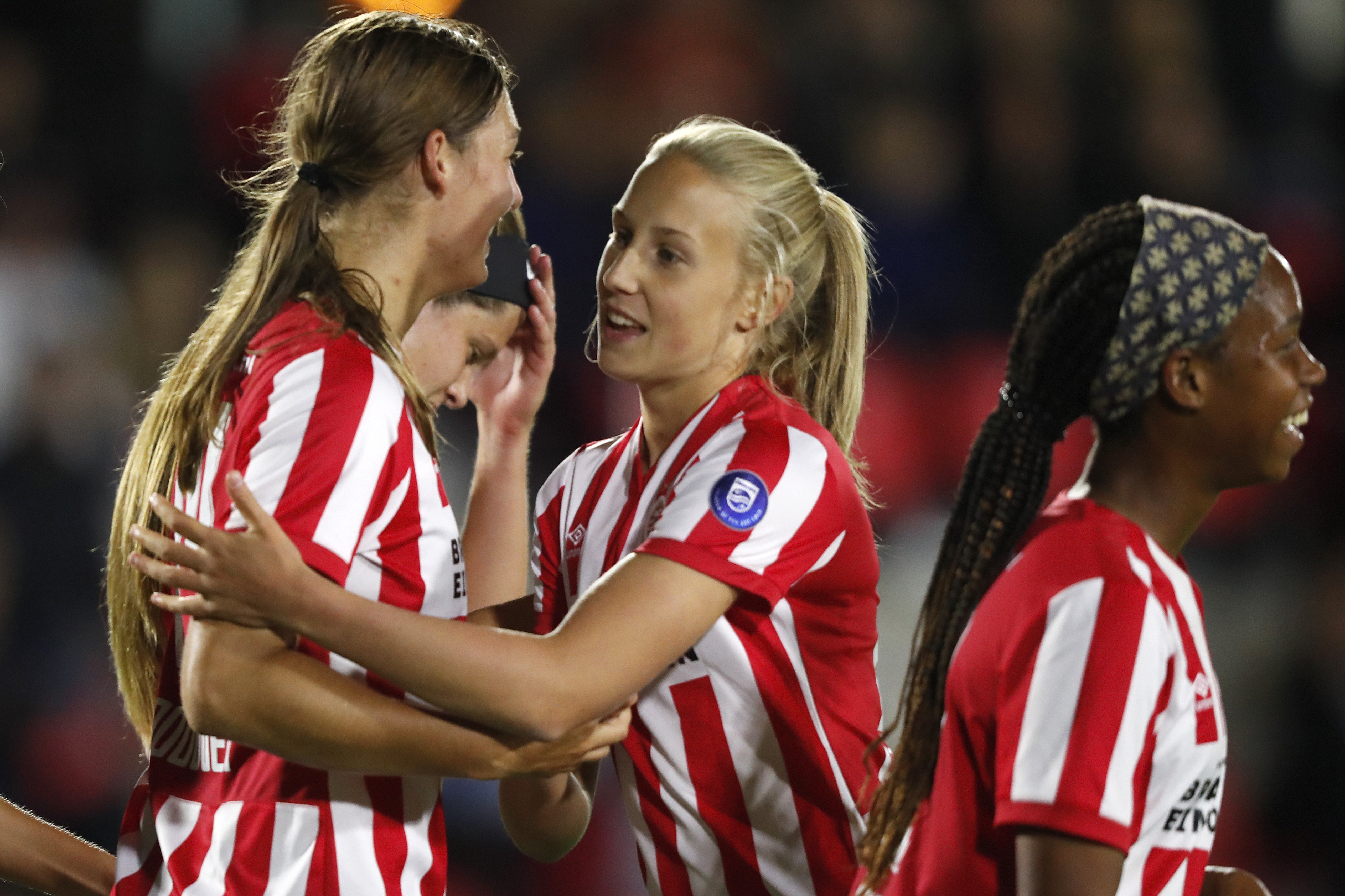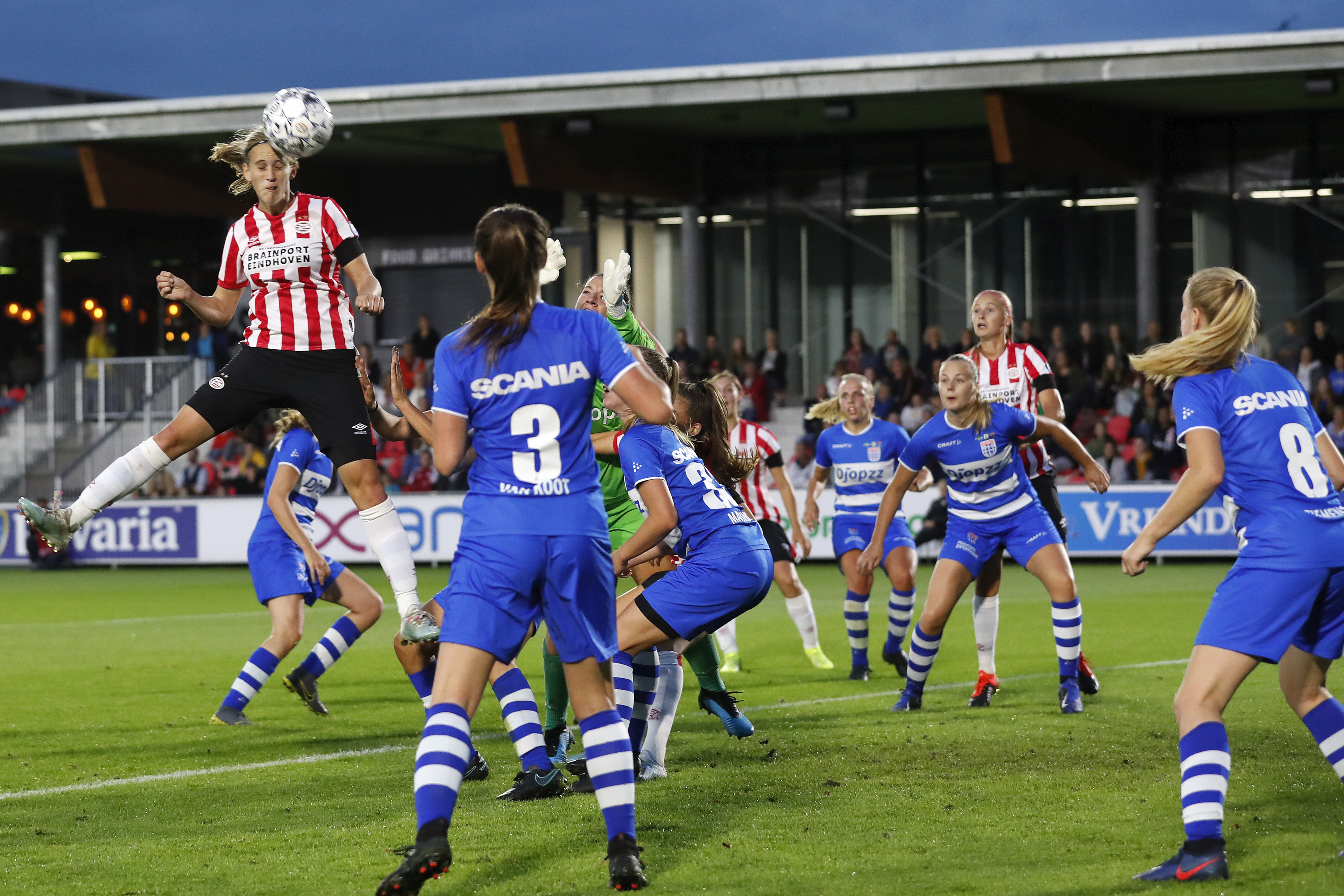 De mooiste beelden van de eerste thuiswedstrijd in de competitie van PSV Vrouwen. De ploeg won ruim van PEC Zwolle (4-0).